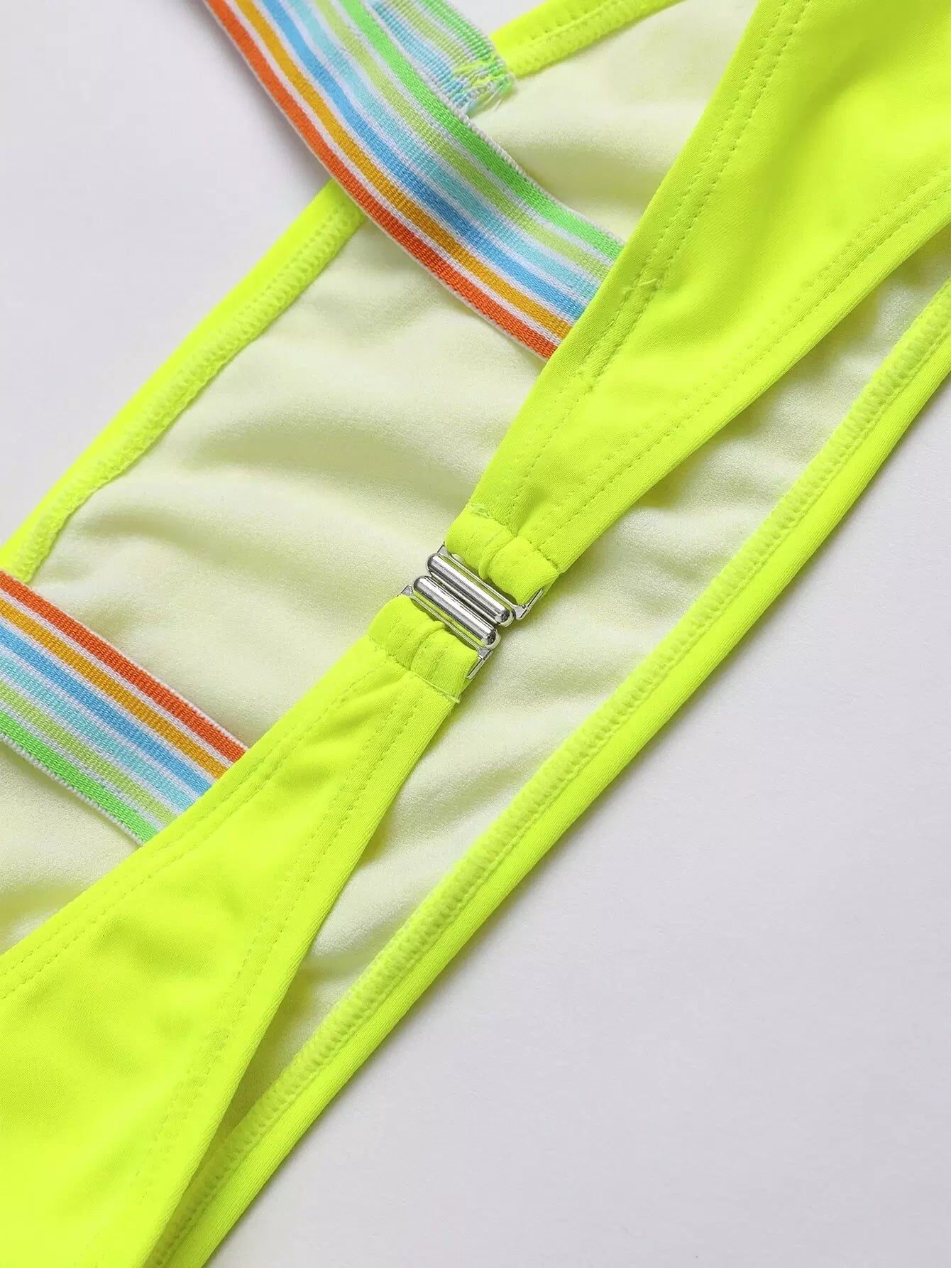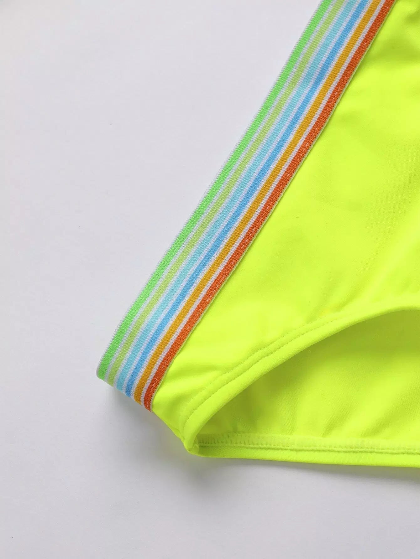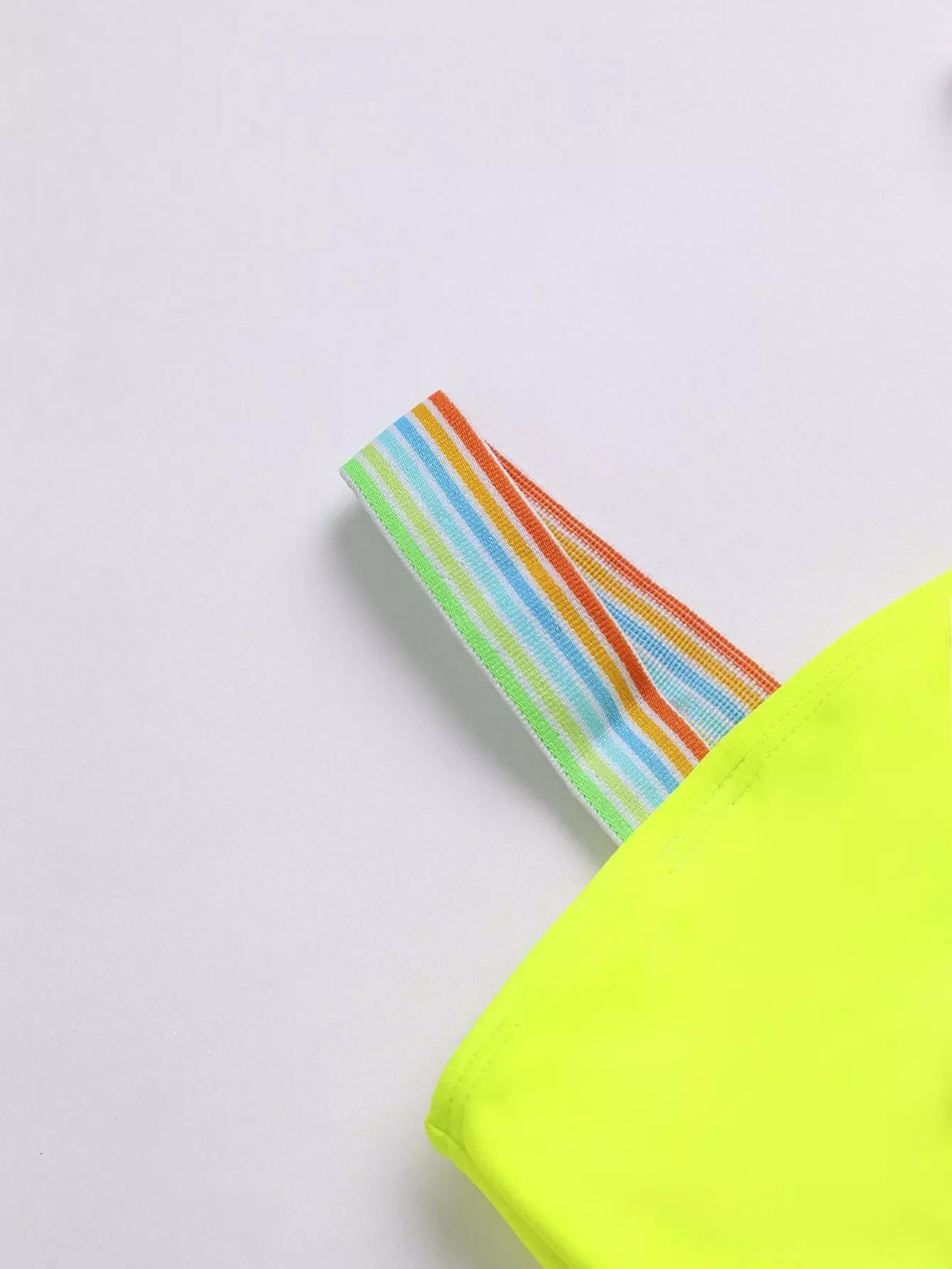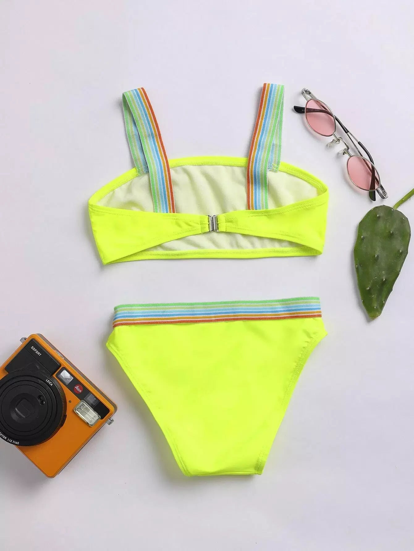 ملابس سباحة بيكيني مخططة بألوان قوس قزح للبنات الصغار
