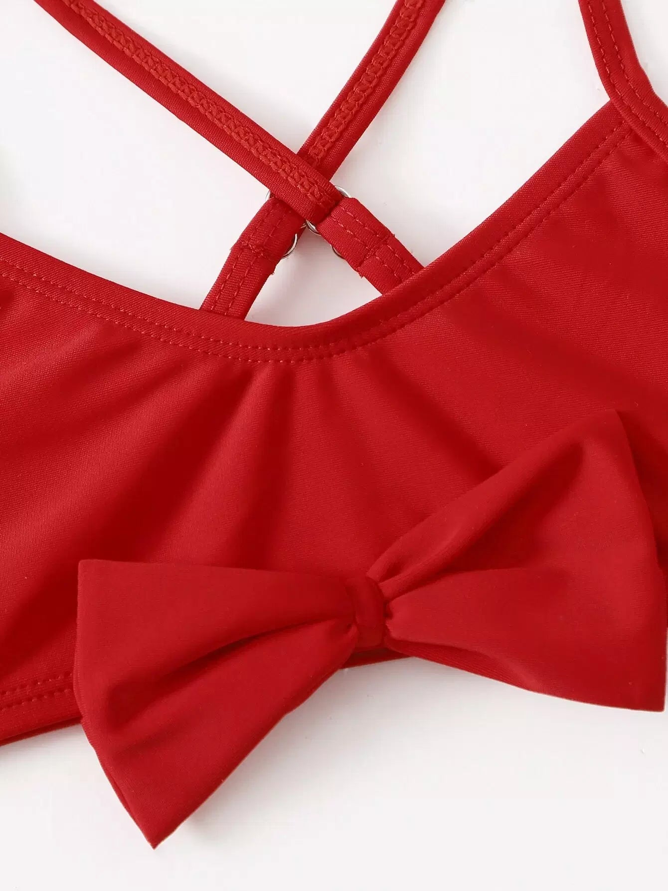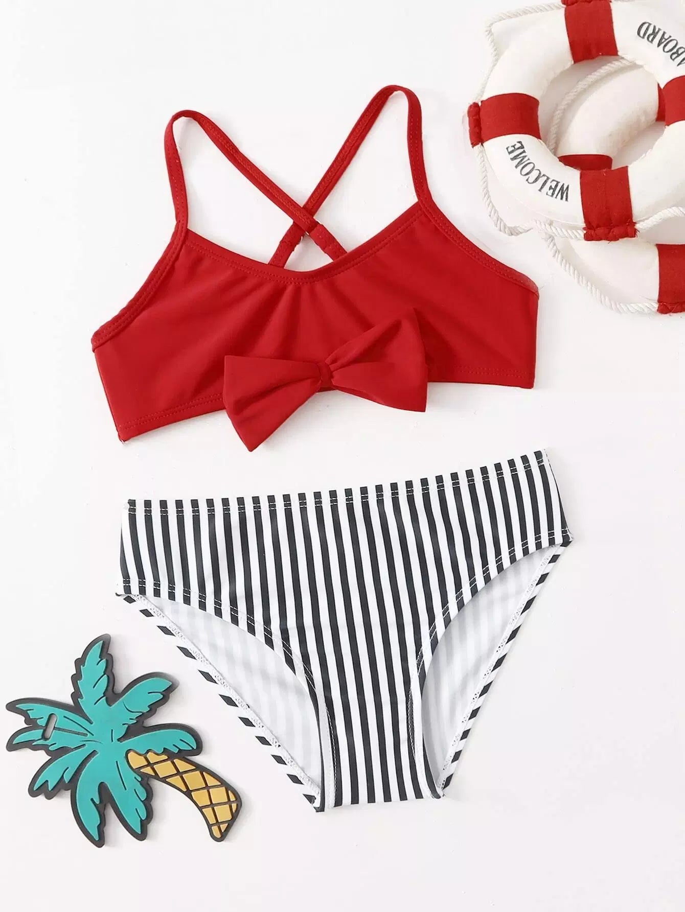 ملابس سباحة بيكيني مخطط بعقدة أمامية للبنات الصغار
