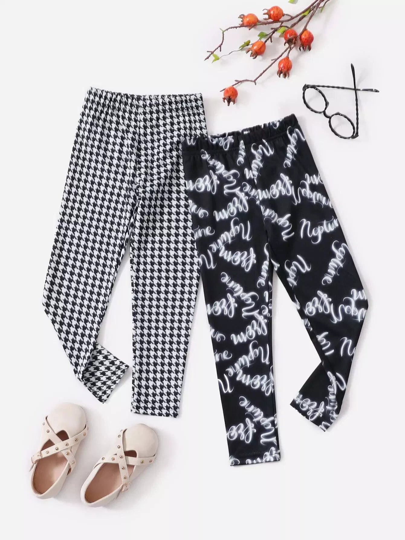 بنطلون ضيق بطبعة حروف وبنطلون بطبعة كلب الصيد للبنات الصغيرات