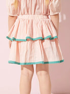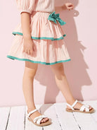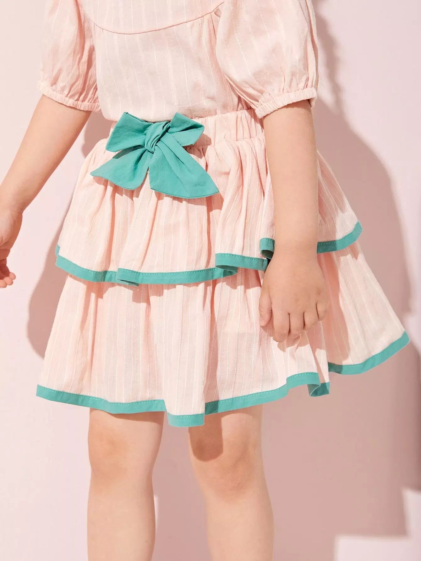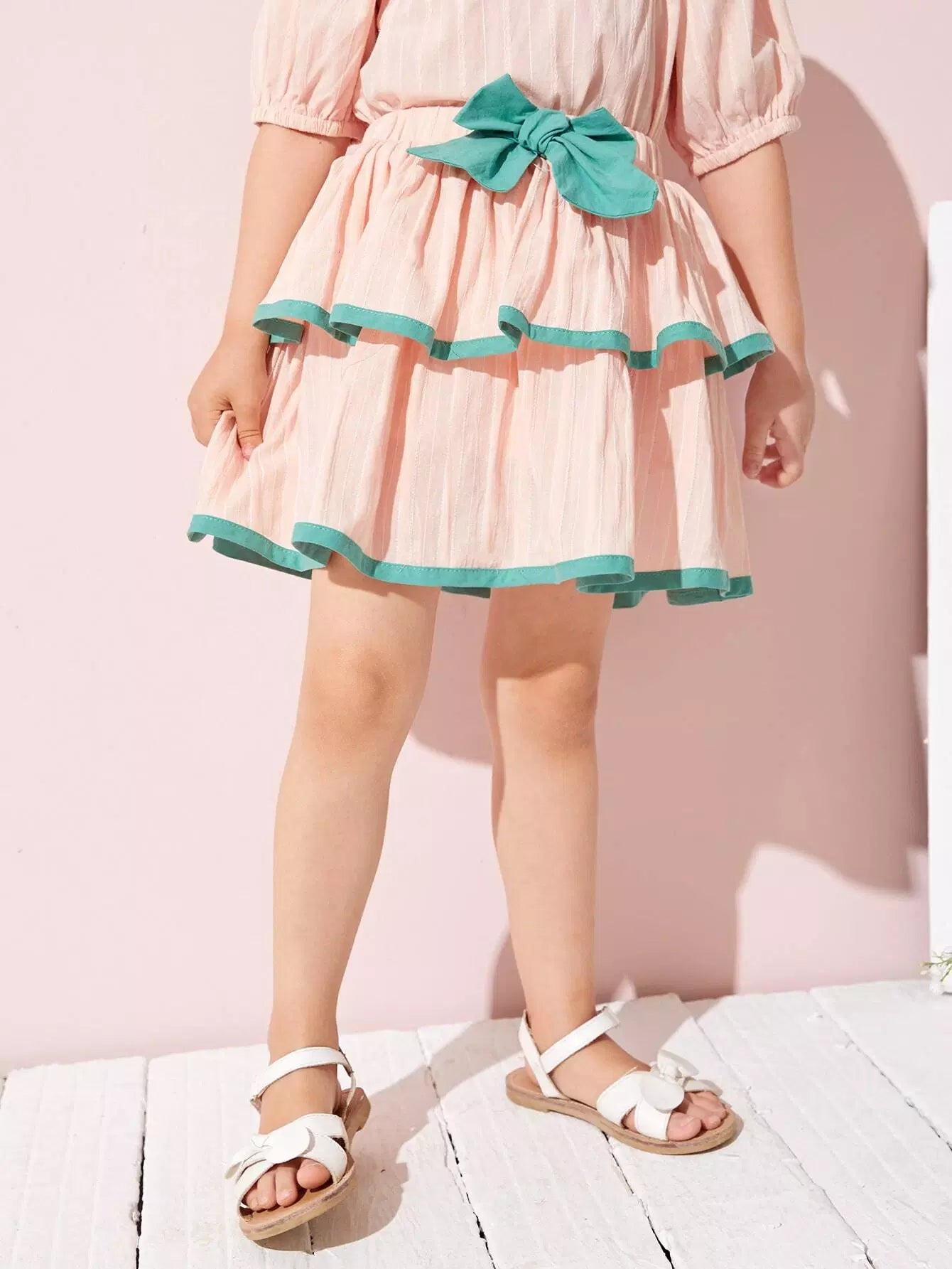 تنورة متعددة الطبقات بحواف متباينة وتفاصيل فيونكة للبنات الصغار