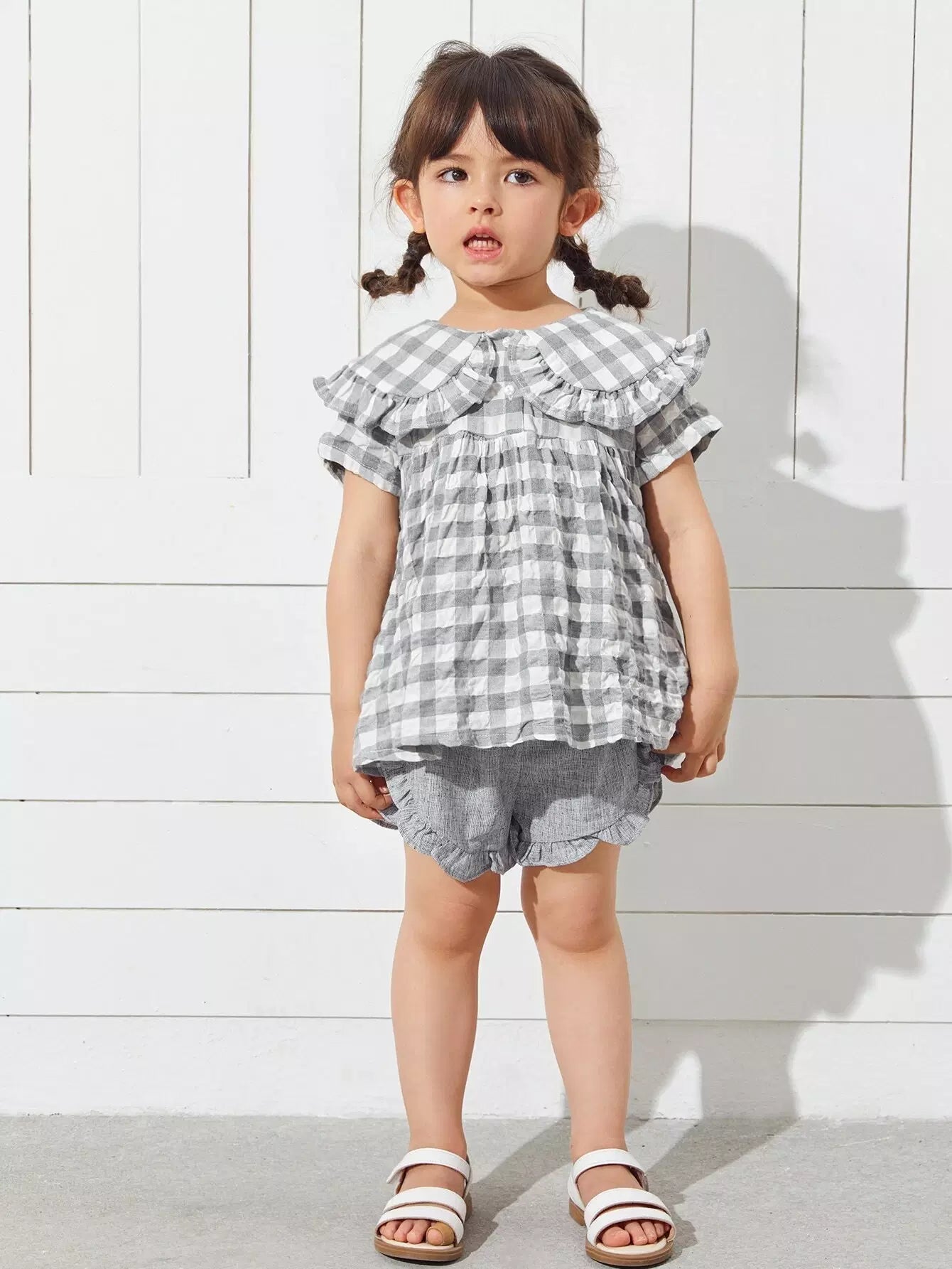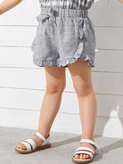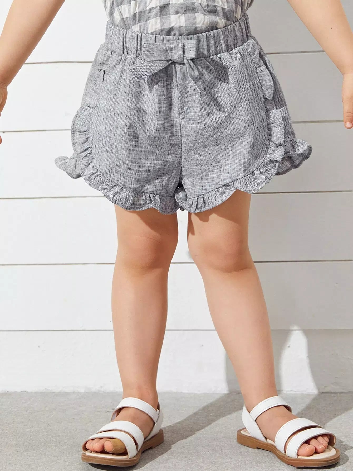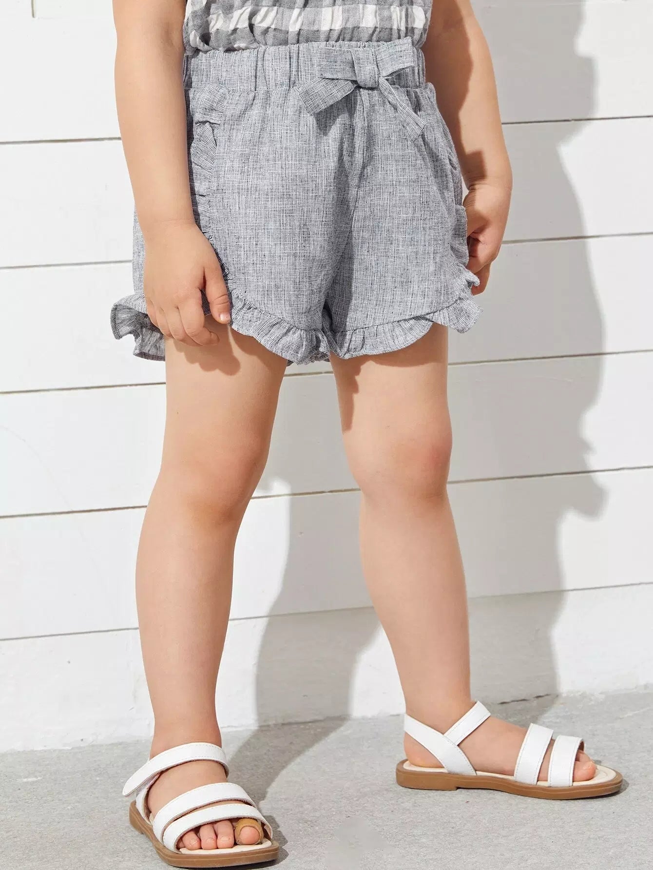 شورت قصير مزين بكشكشة من الأمام مع فيونكة للبنات الصغار