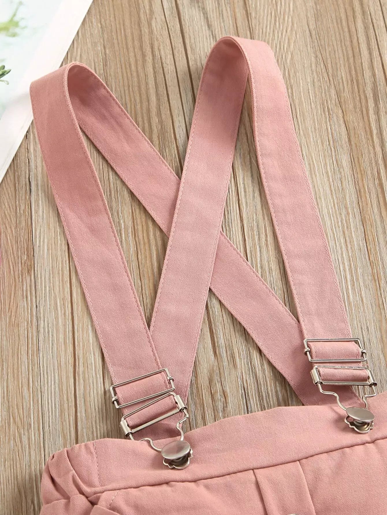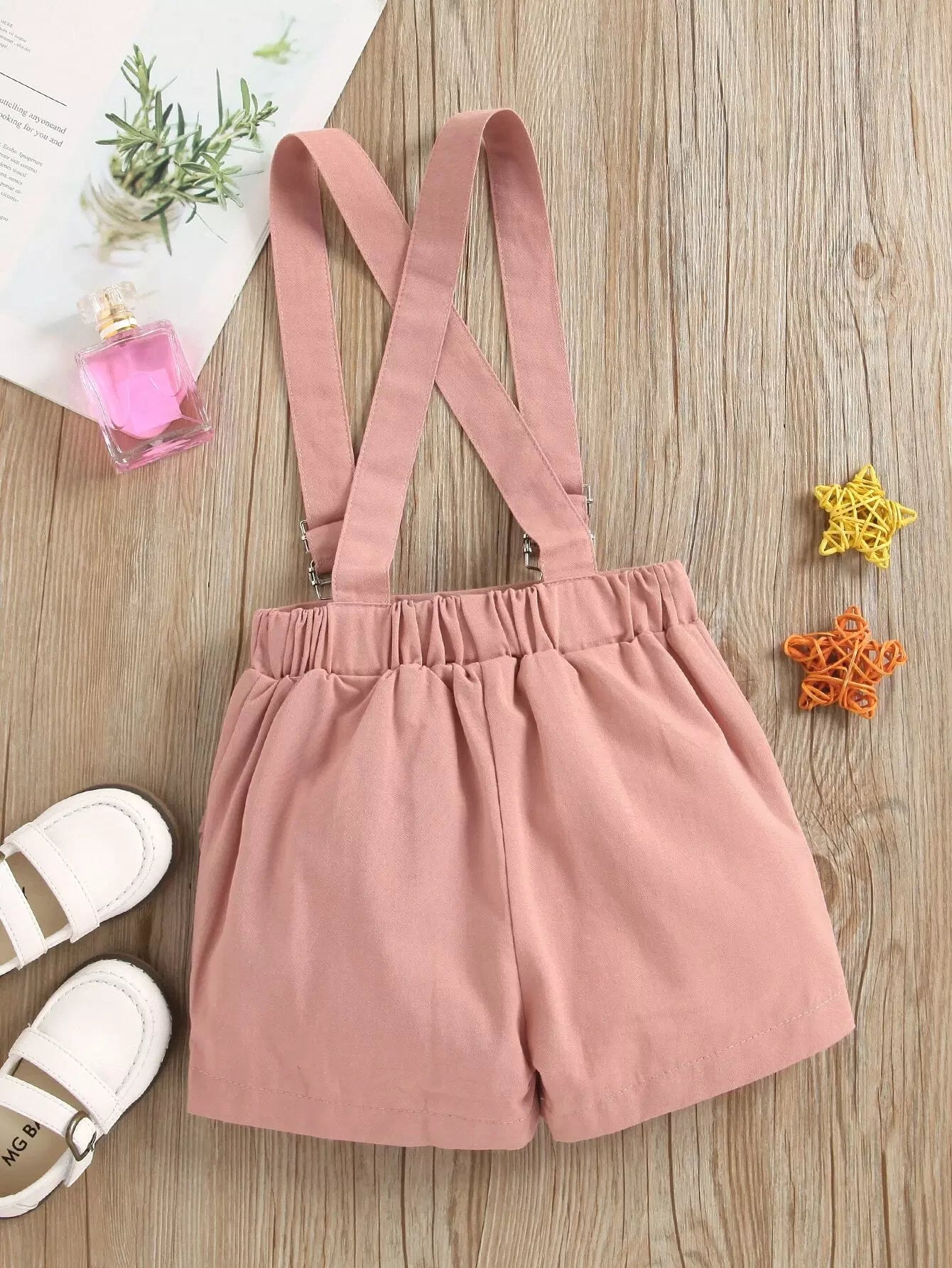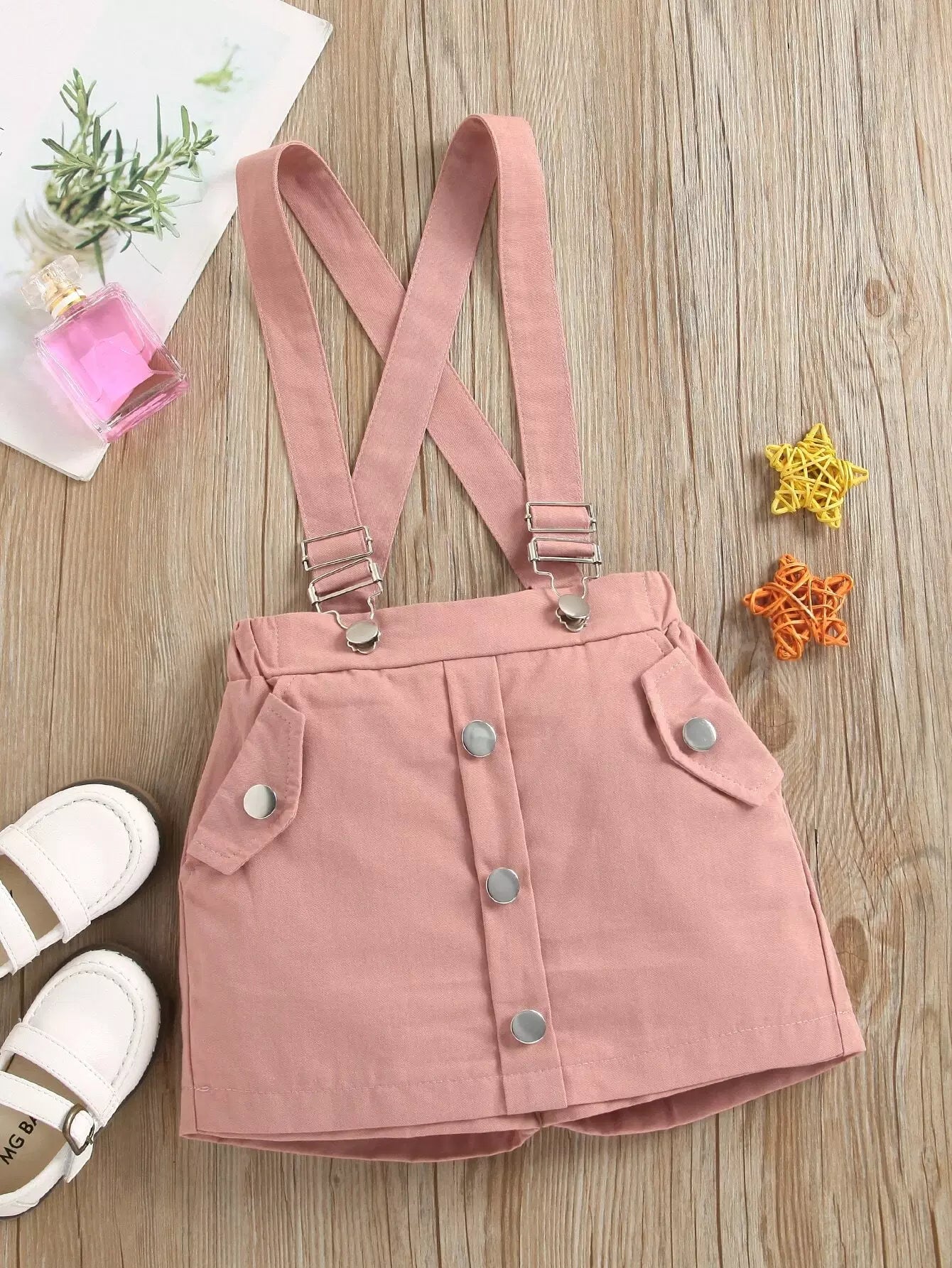 شورت بحمالات بأزرار أمامية بأزرار للبنات الصغار
