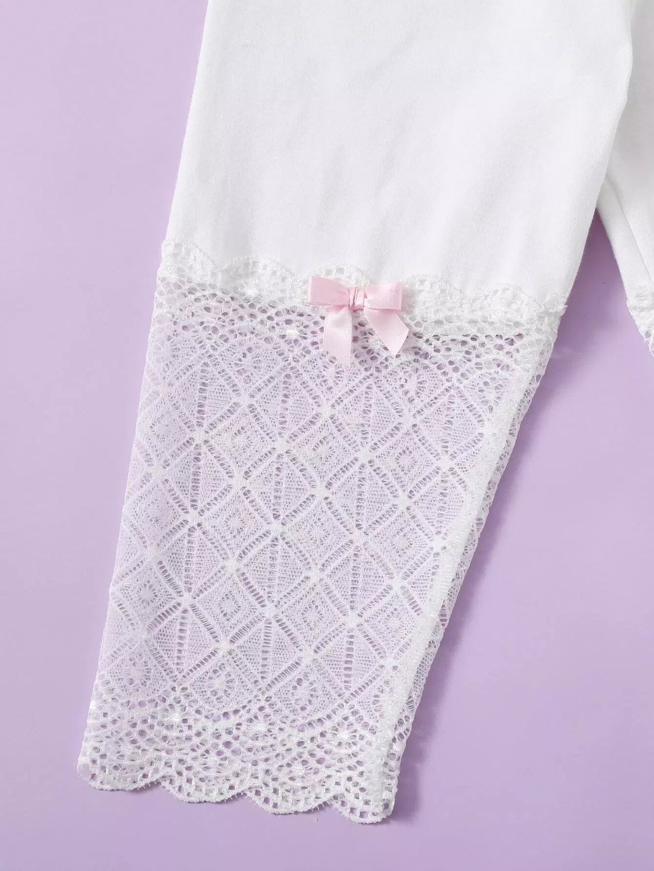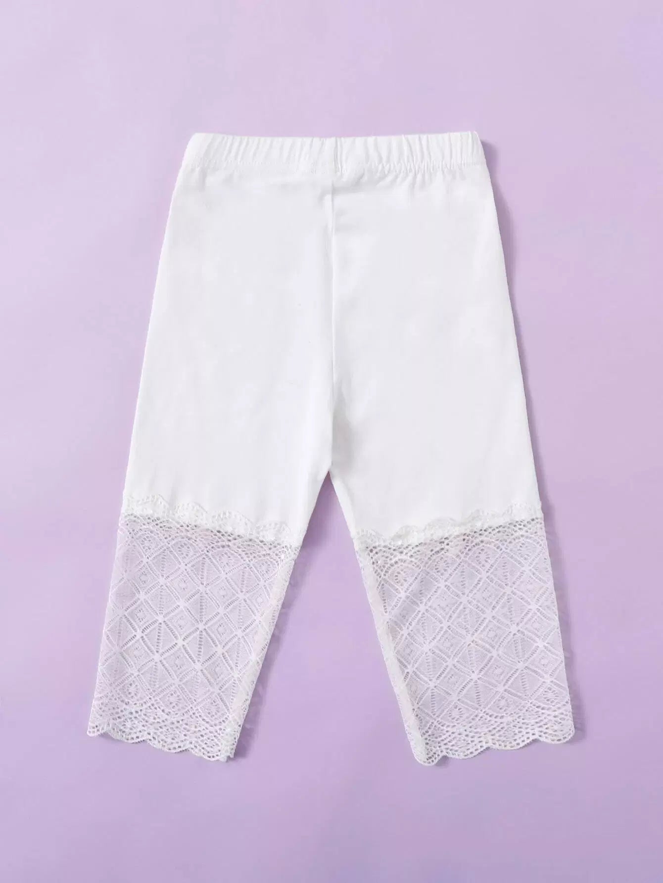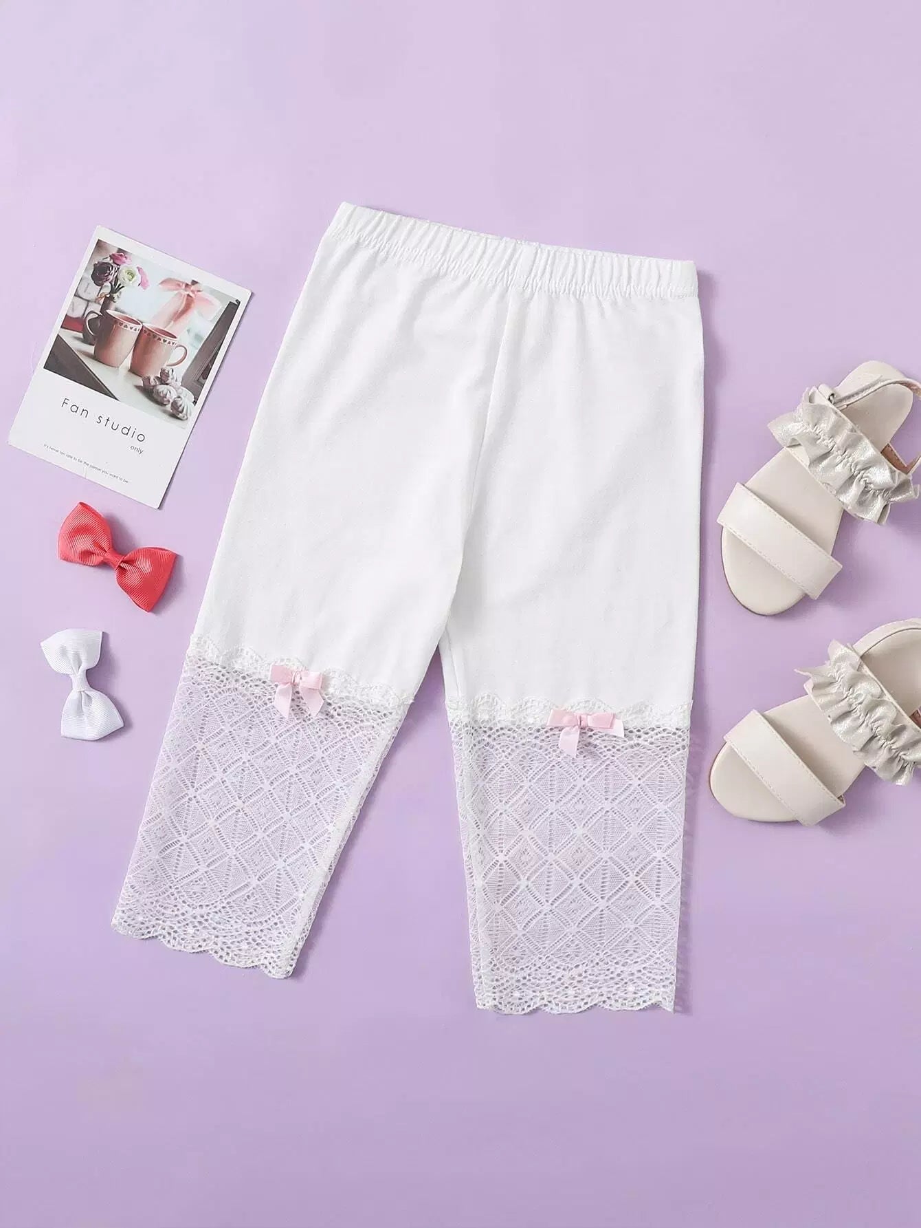 بنطلون ضيق للبنات الصغار مزين بعقدة على شكل دانتيل بلون مغاير