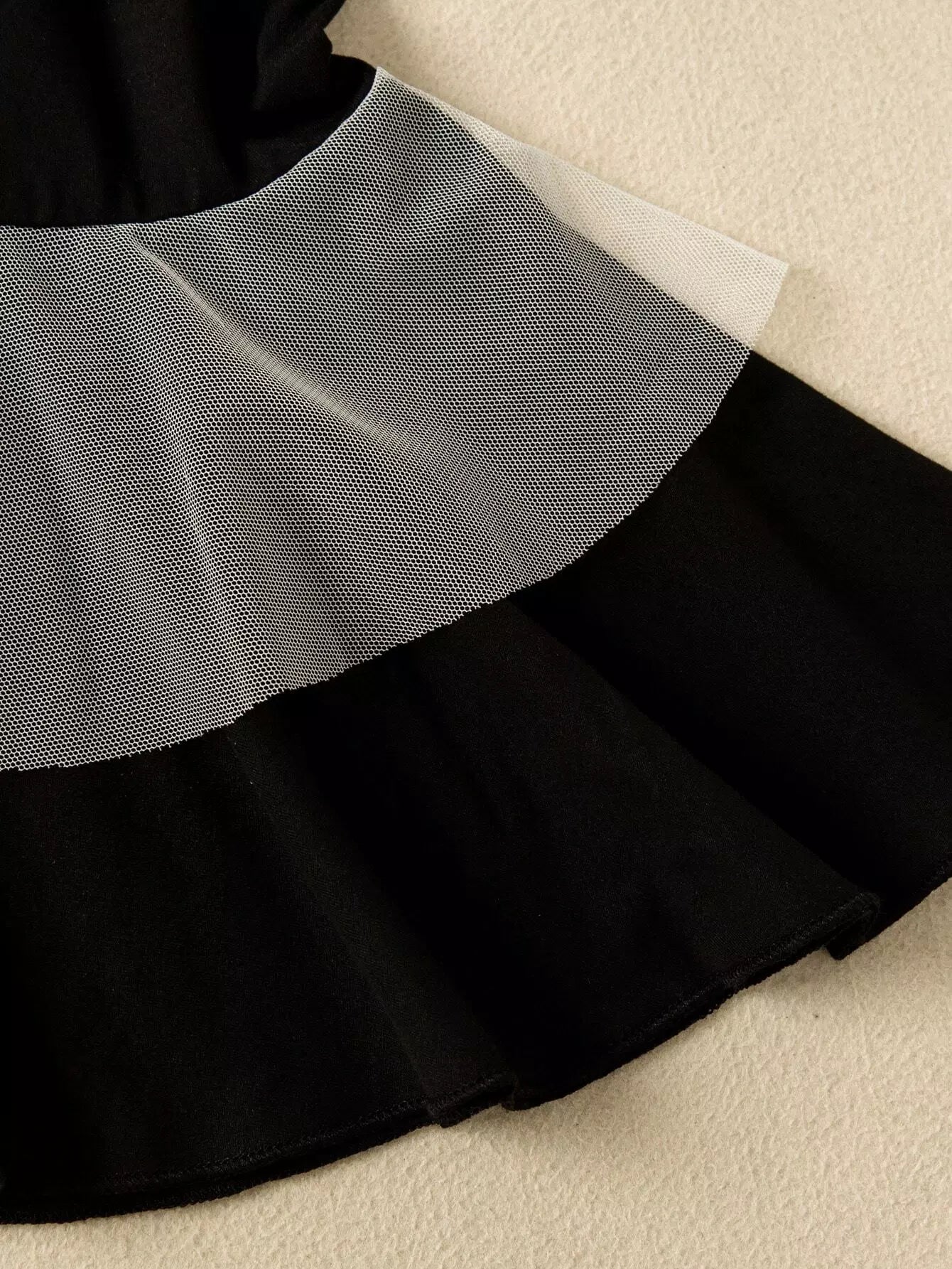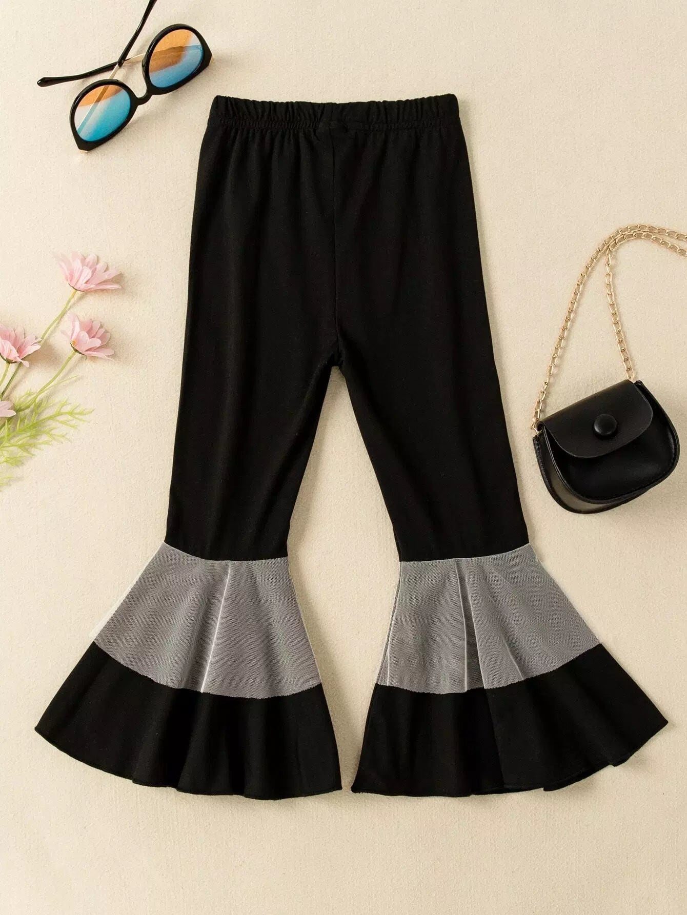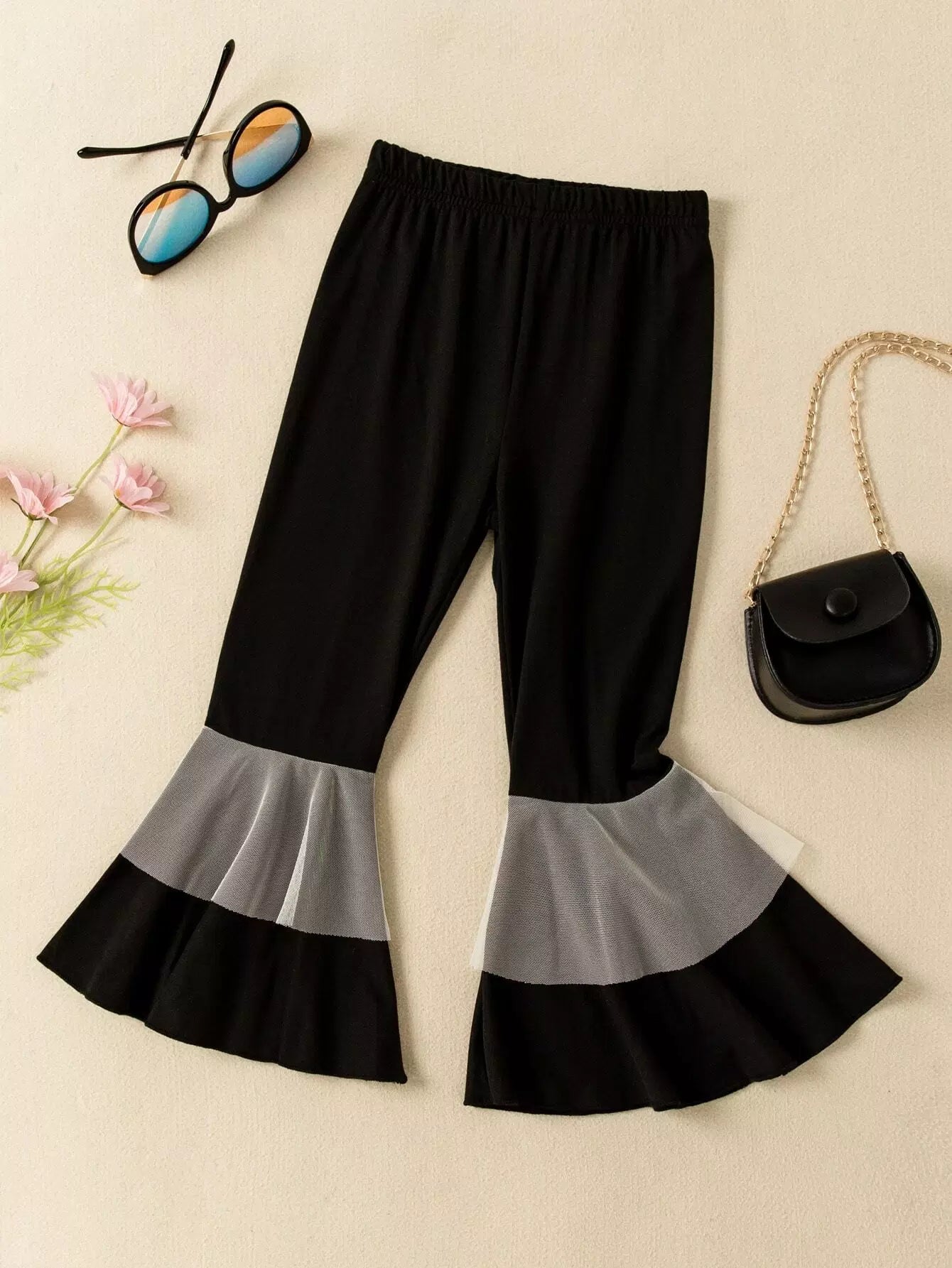 بنطلون فتيات صغيرات بساق شبكية واسعة بلون مغاير