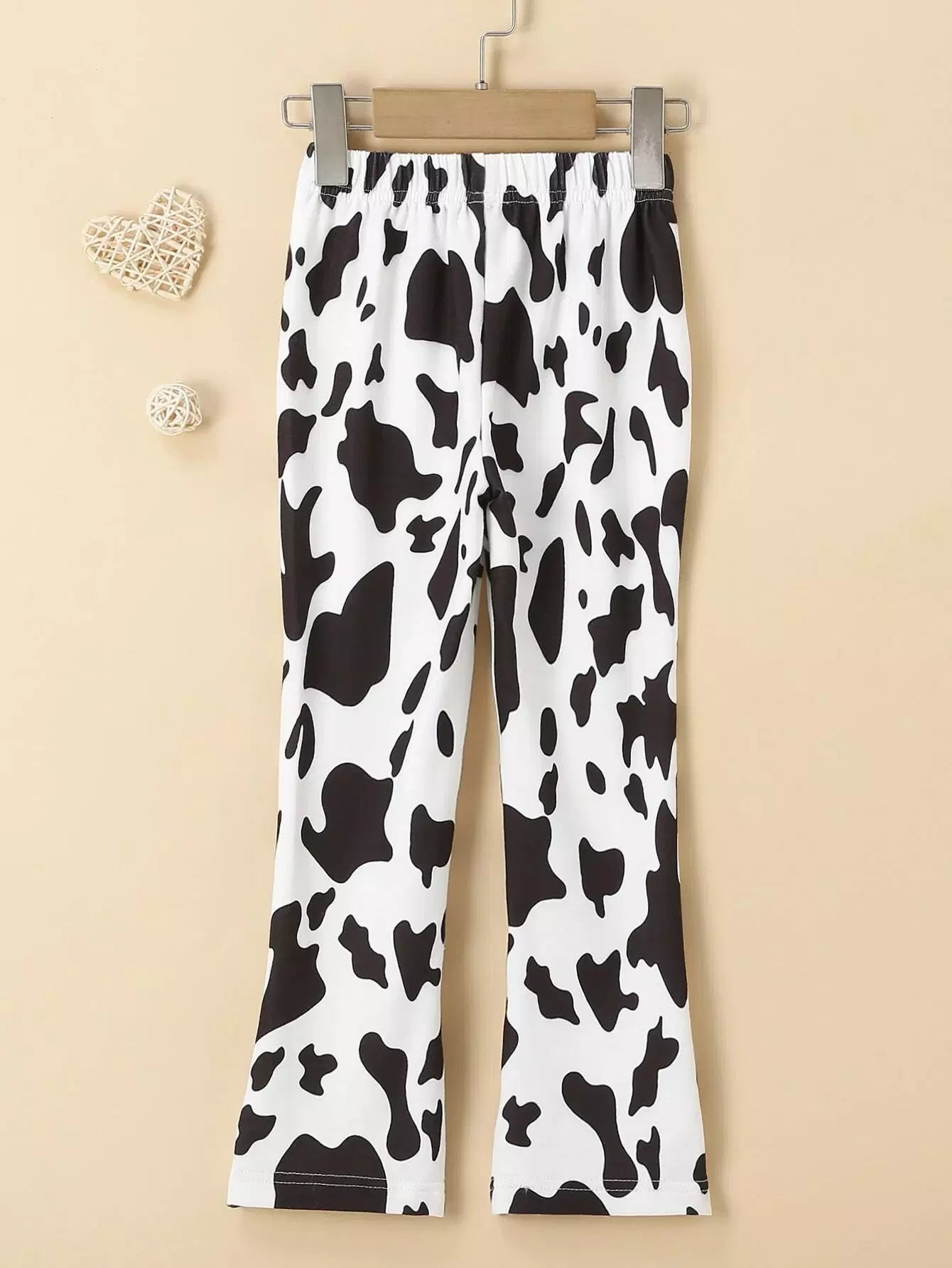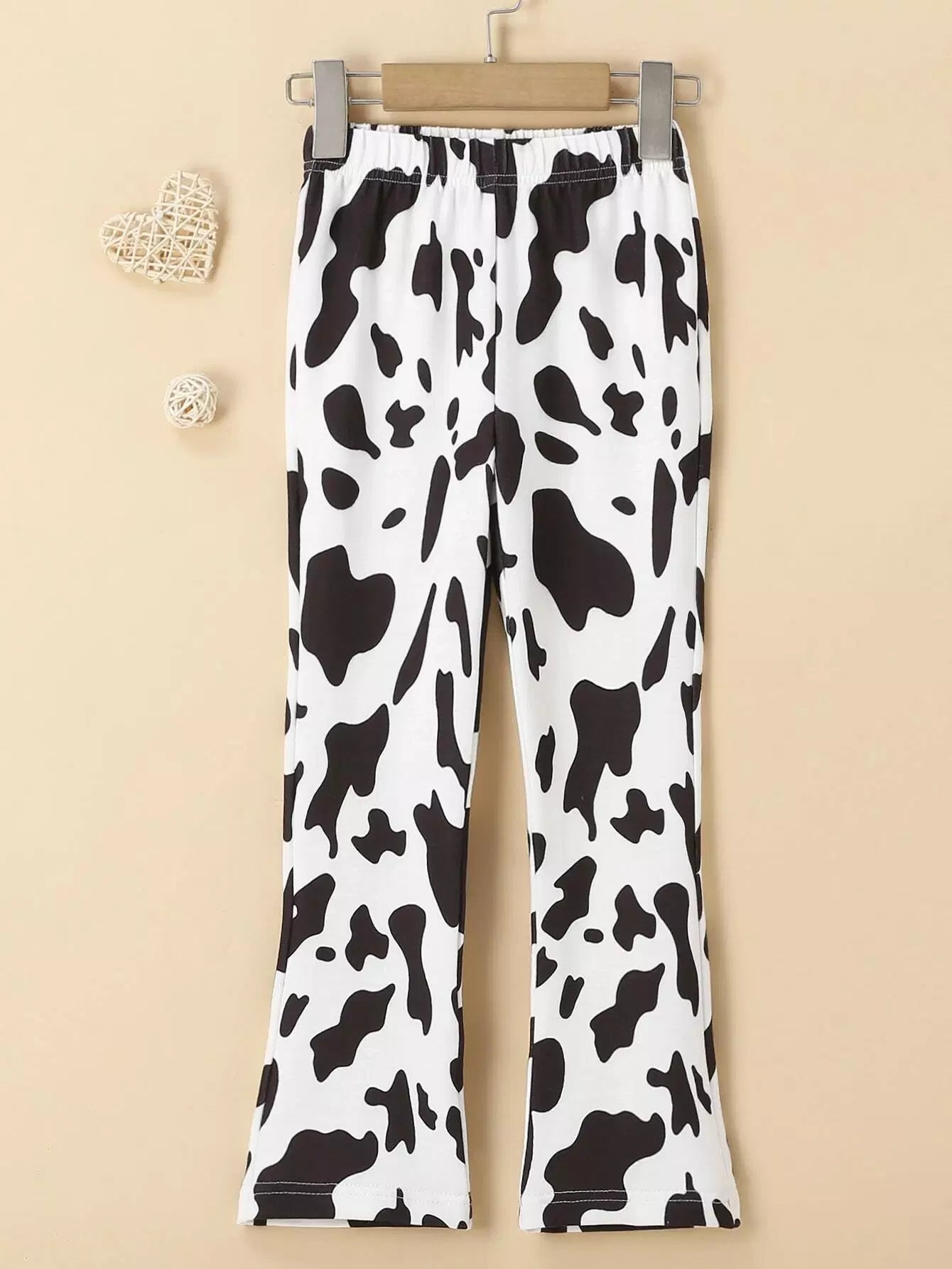 بنطلون فتيات صغيرات بطبعة بقرة واسعة الساقين