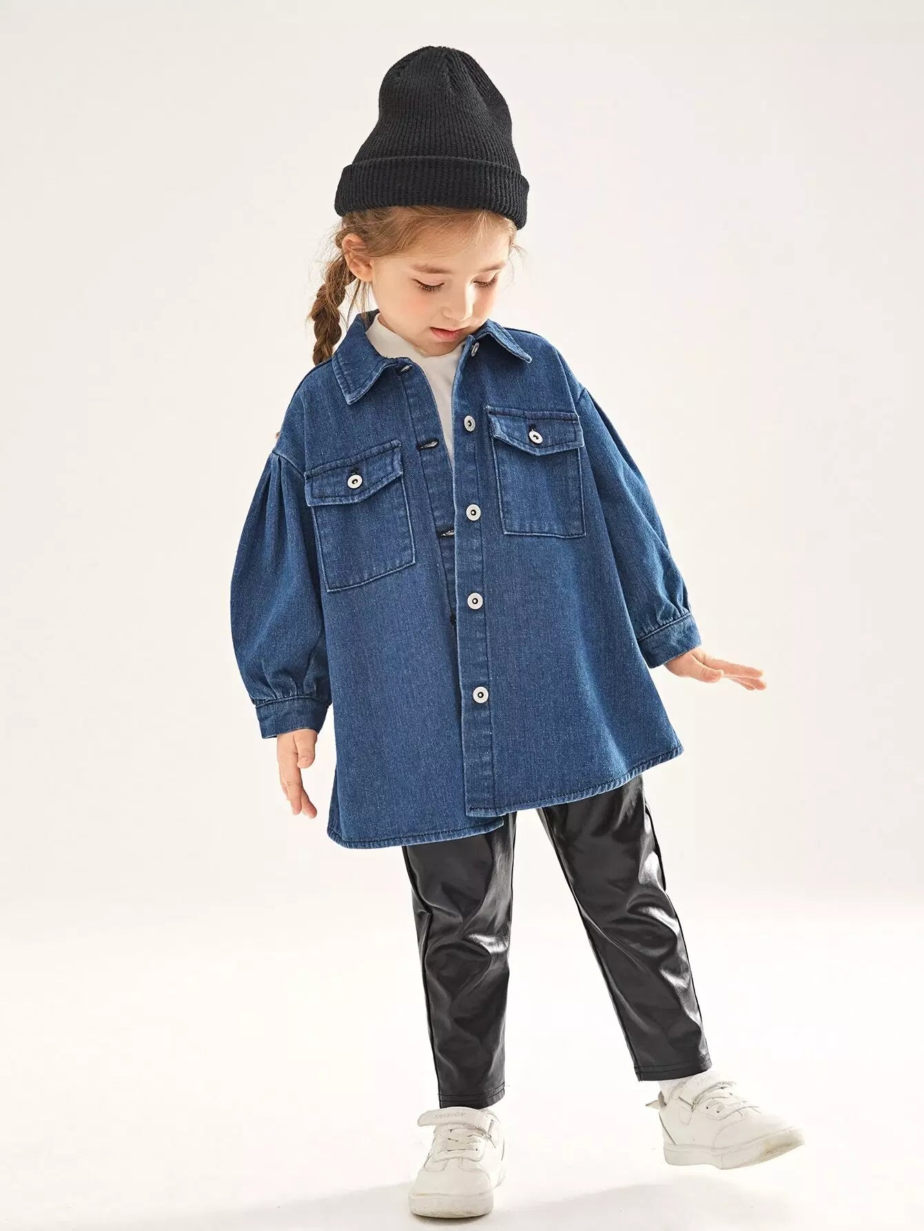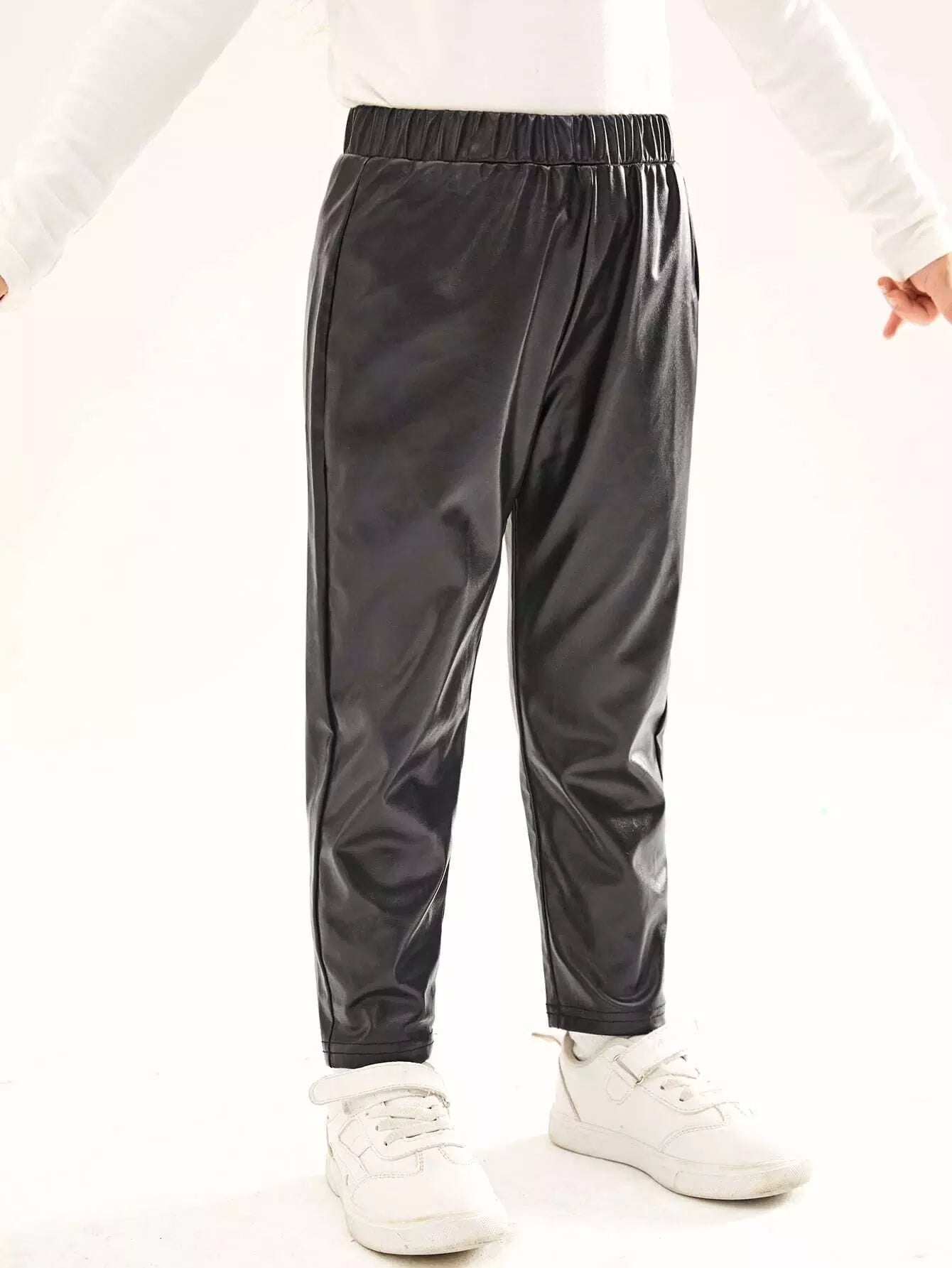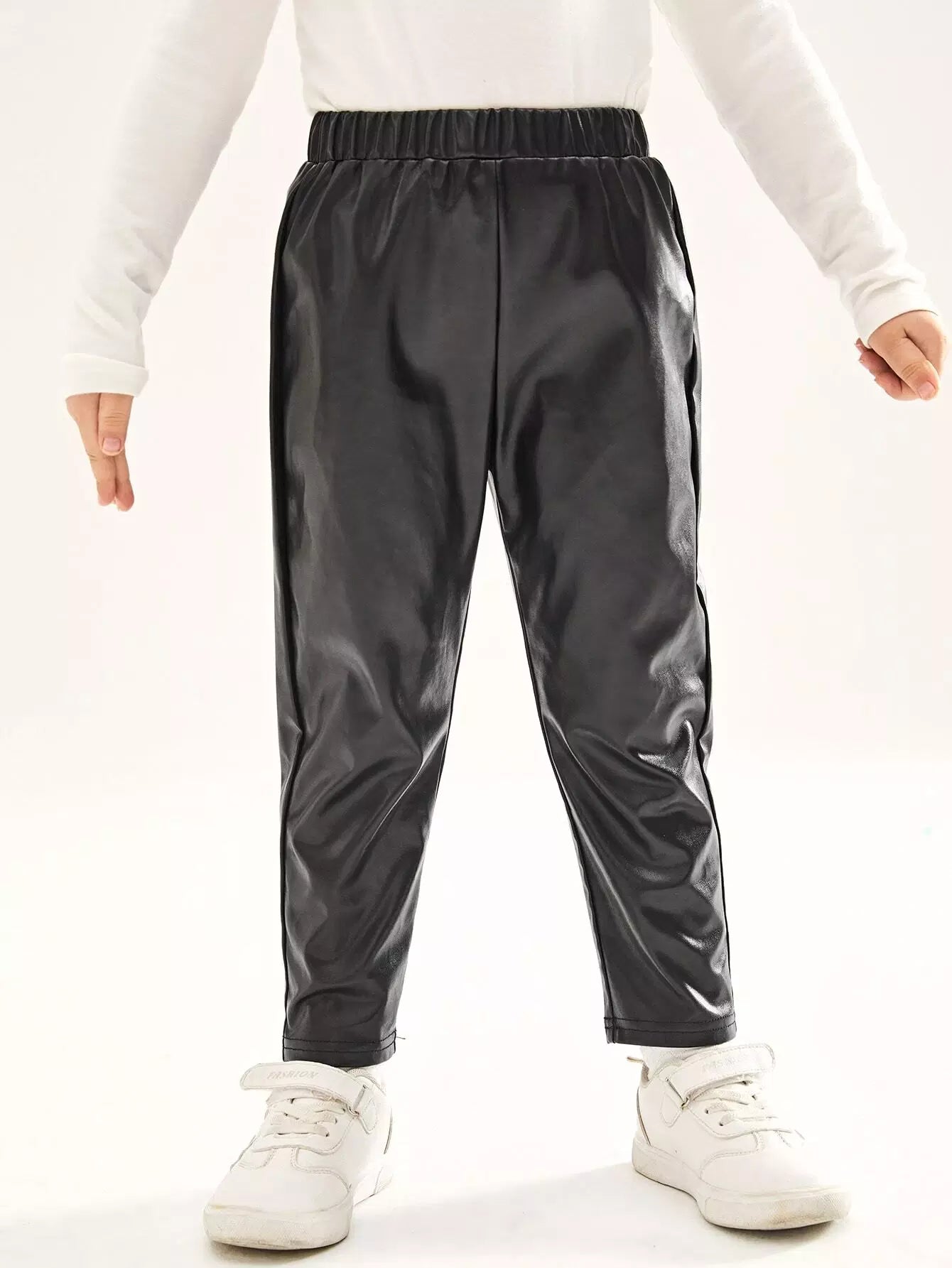 بنطال ضيق من الجلد الصناعي بخصر مطاطي للفتيات الصغيرات
