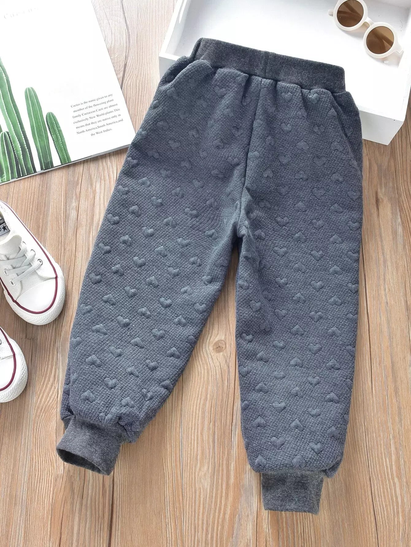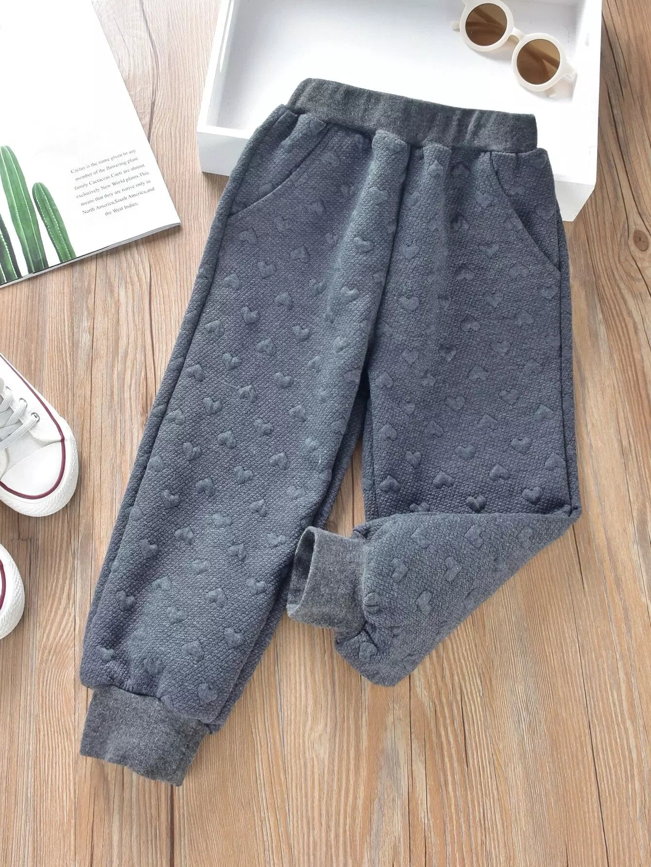 بنطلون رياضي بجيوب مائلة منقوشة على شكل قلب للبنات الصغار