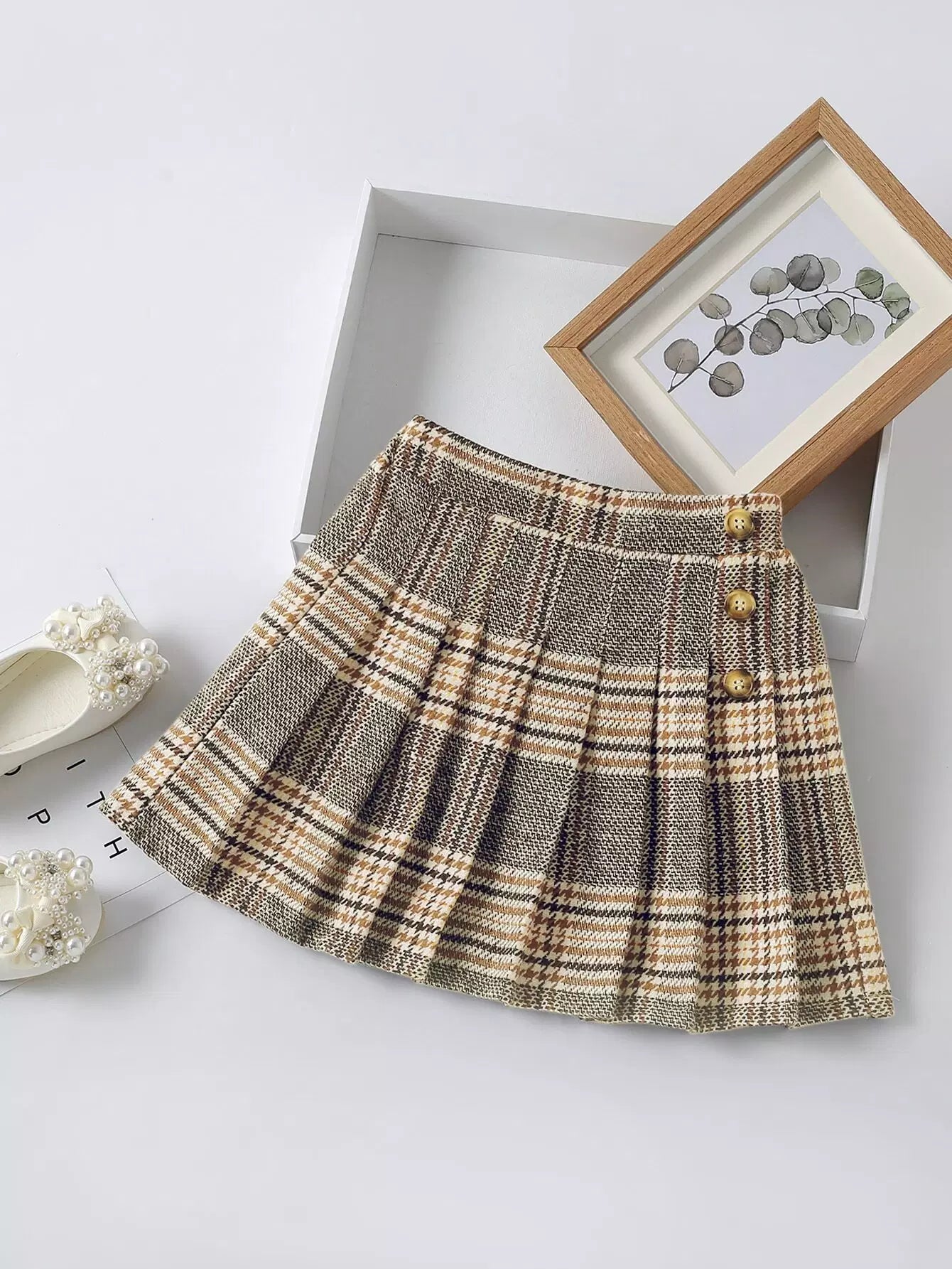 تنورة بطية ذات ثنية واحدة ذات صدر واحد للبنات الصغار