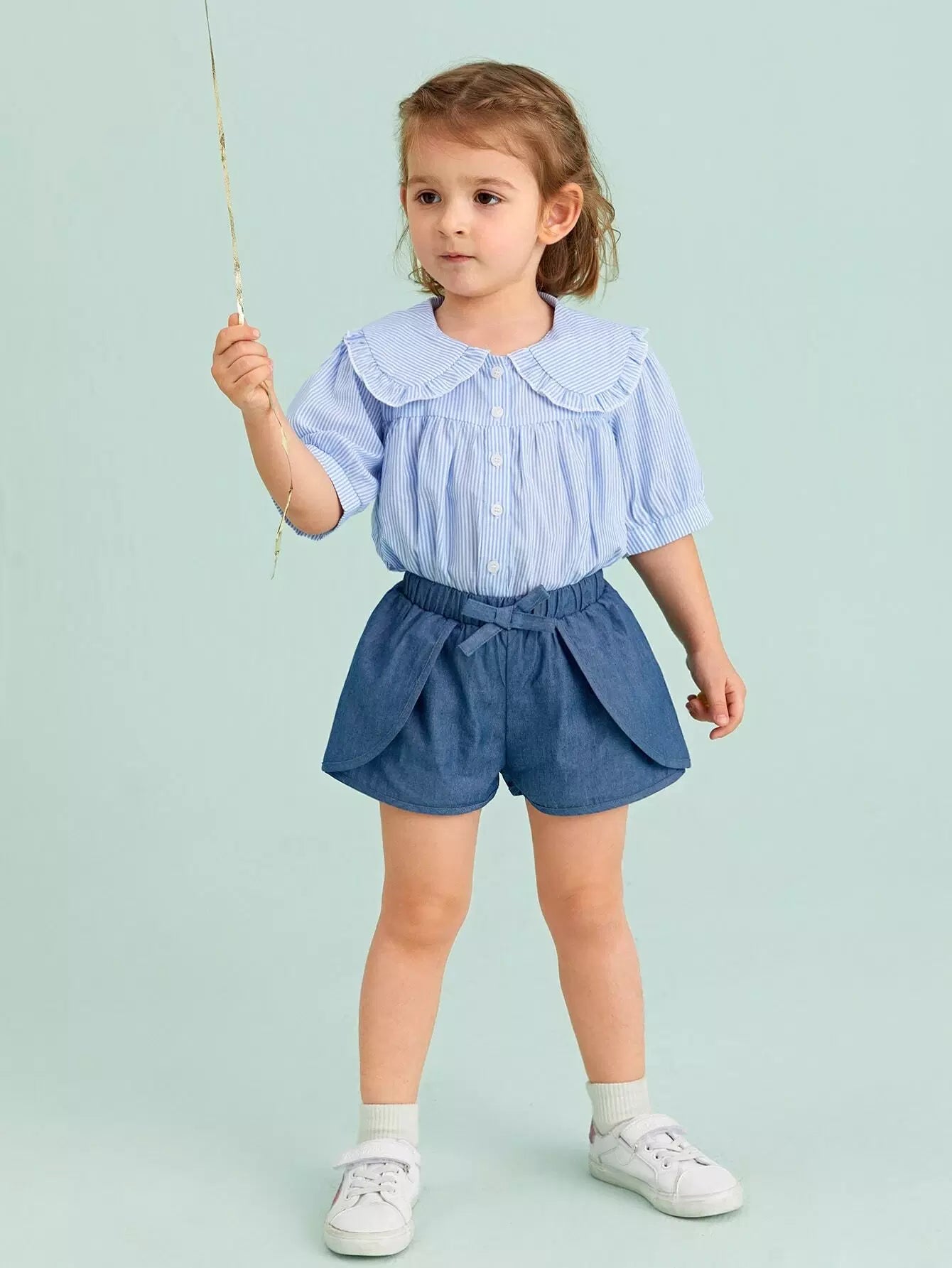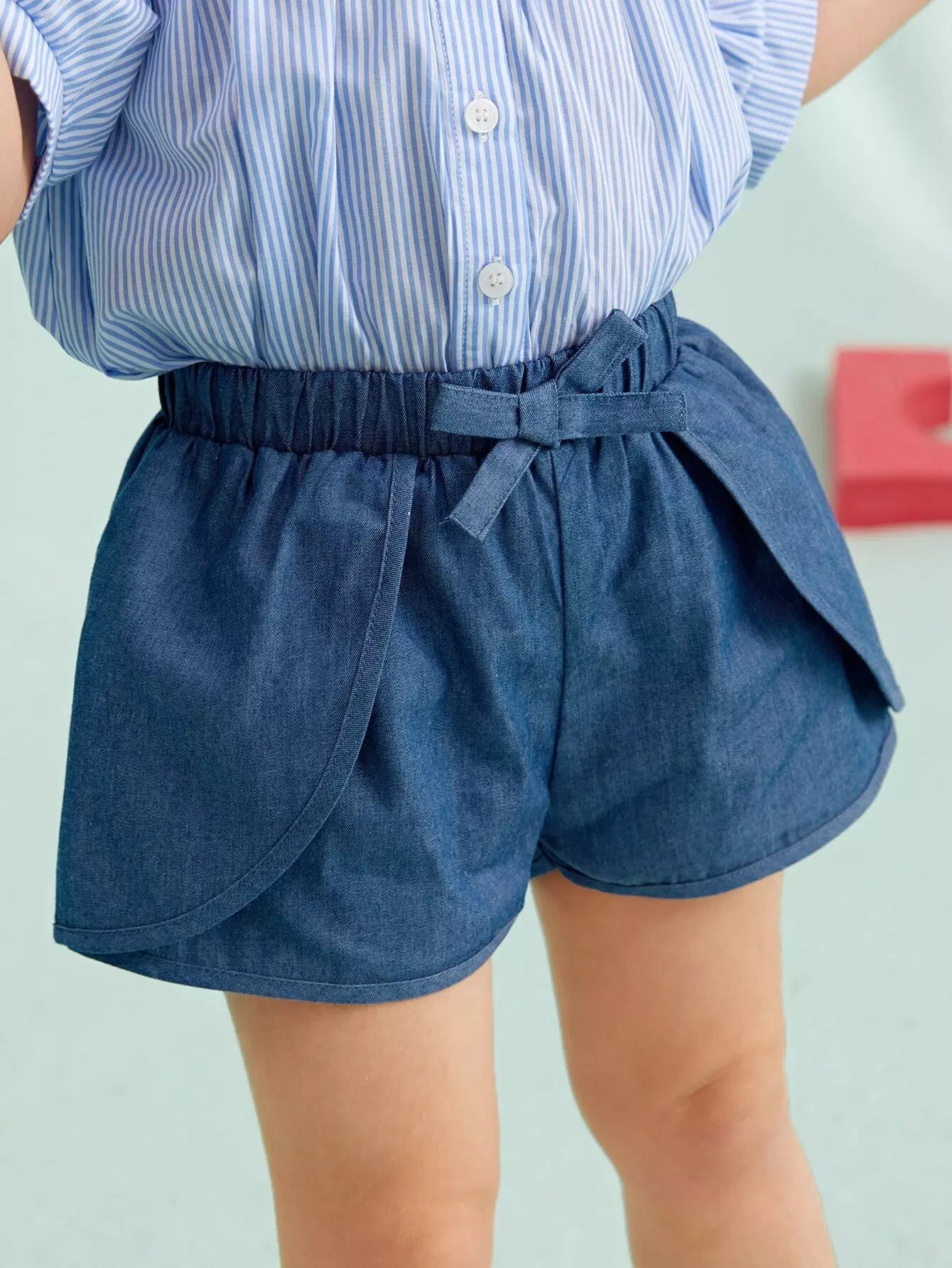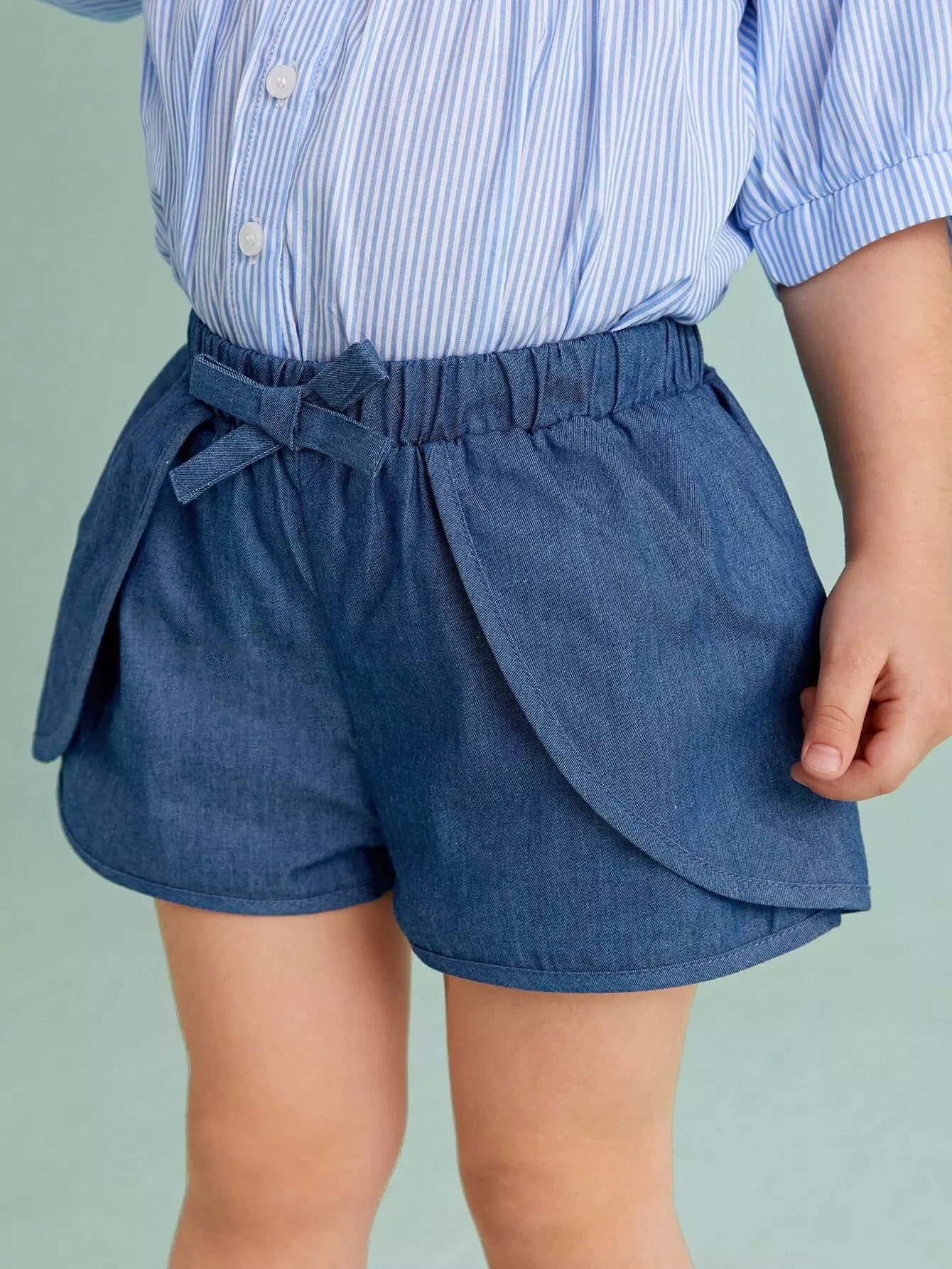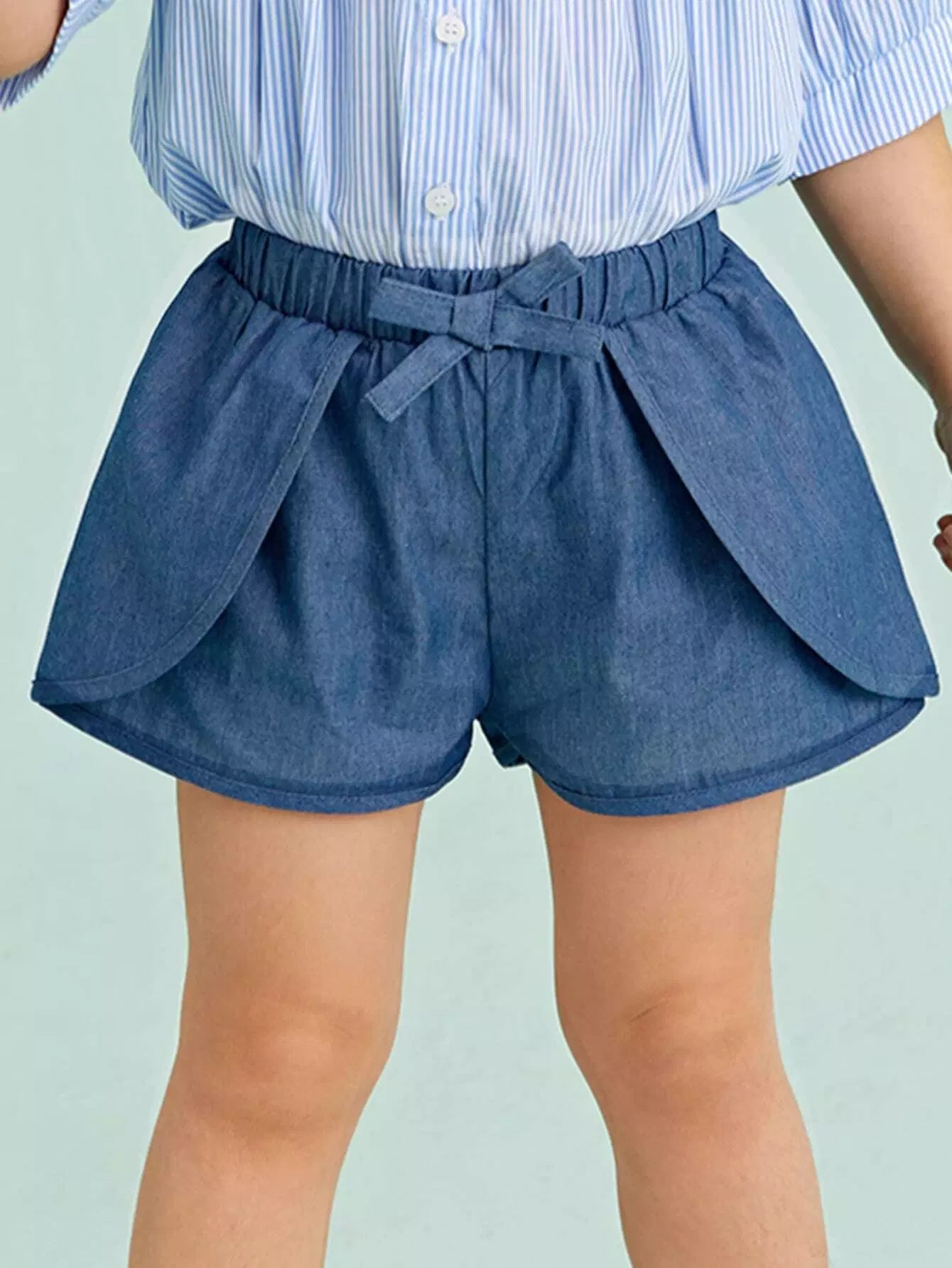 شورت بخصر مطاطي وعقدة أمامية للفتيات الصغيرات