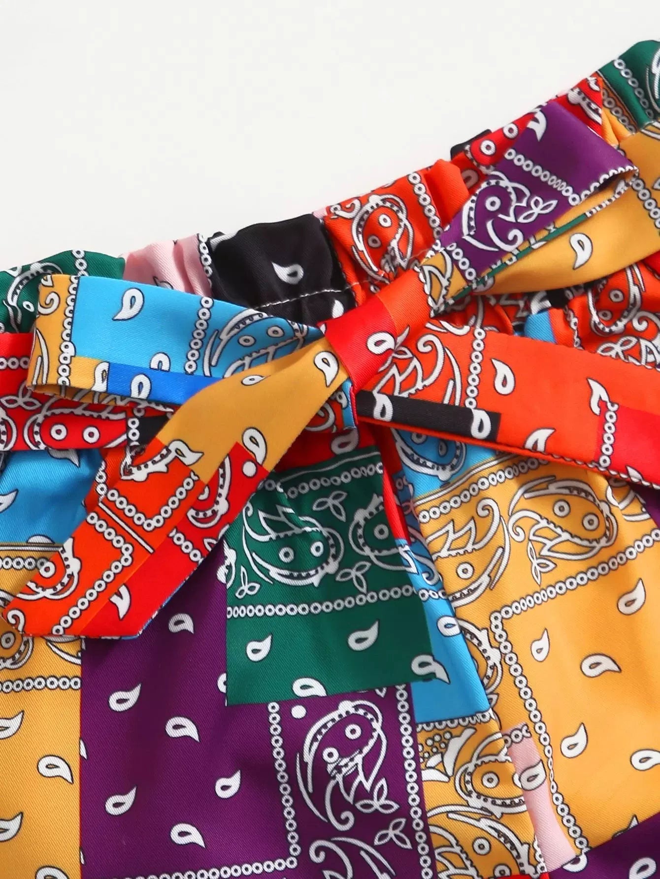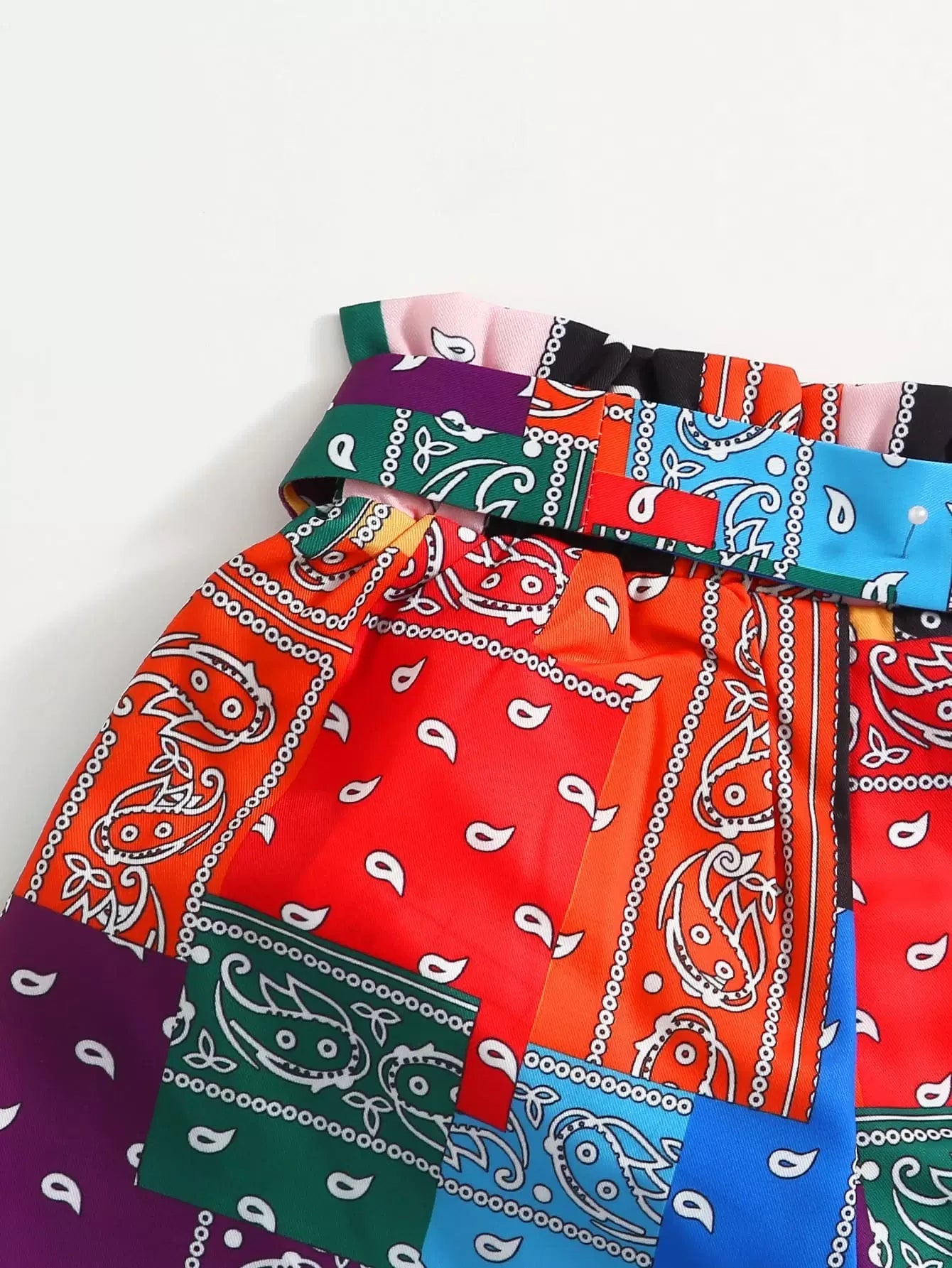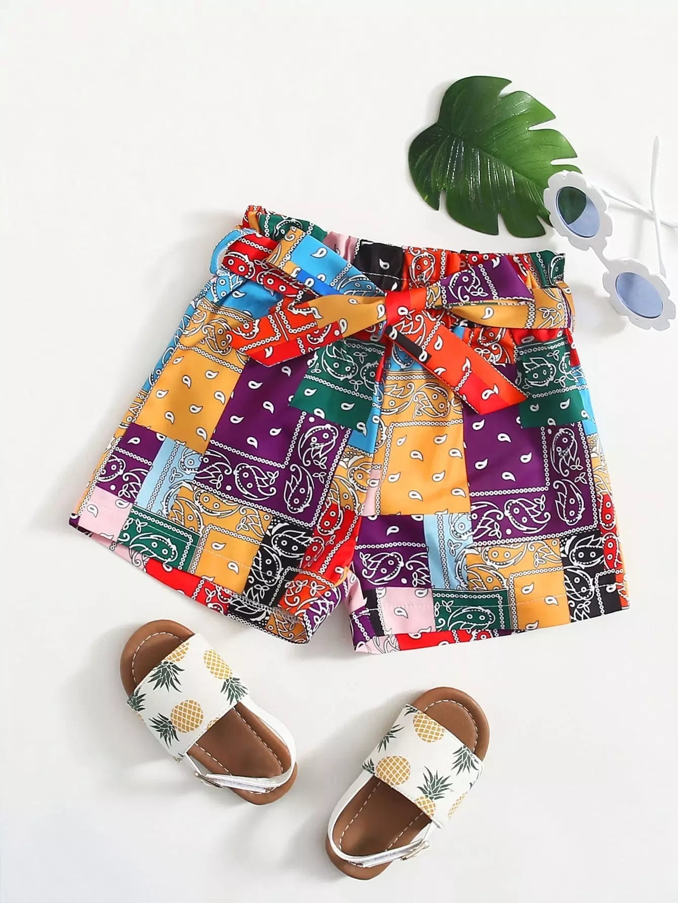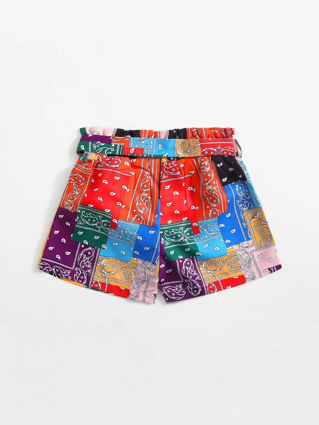 شورت بناتي صغير بطبعة بيزلي بدون حزام