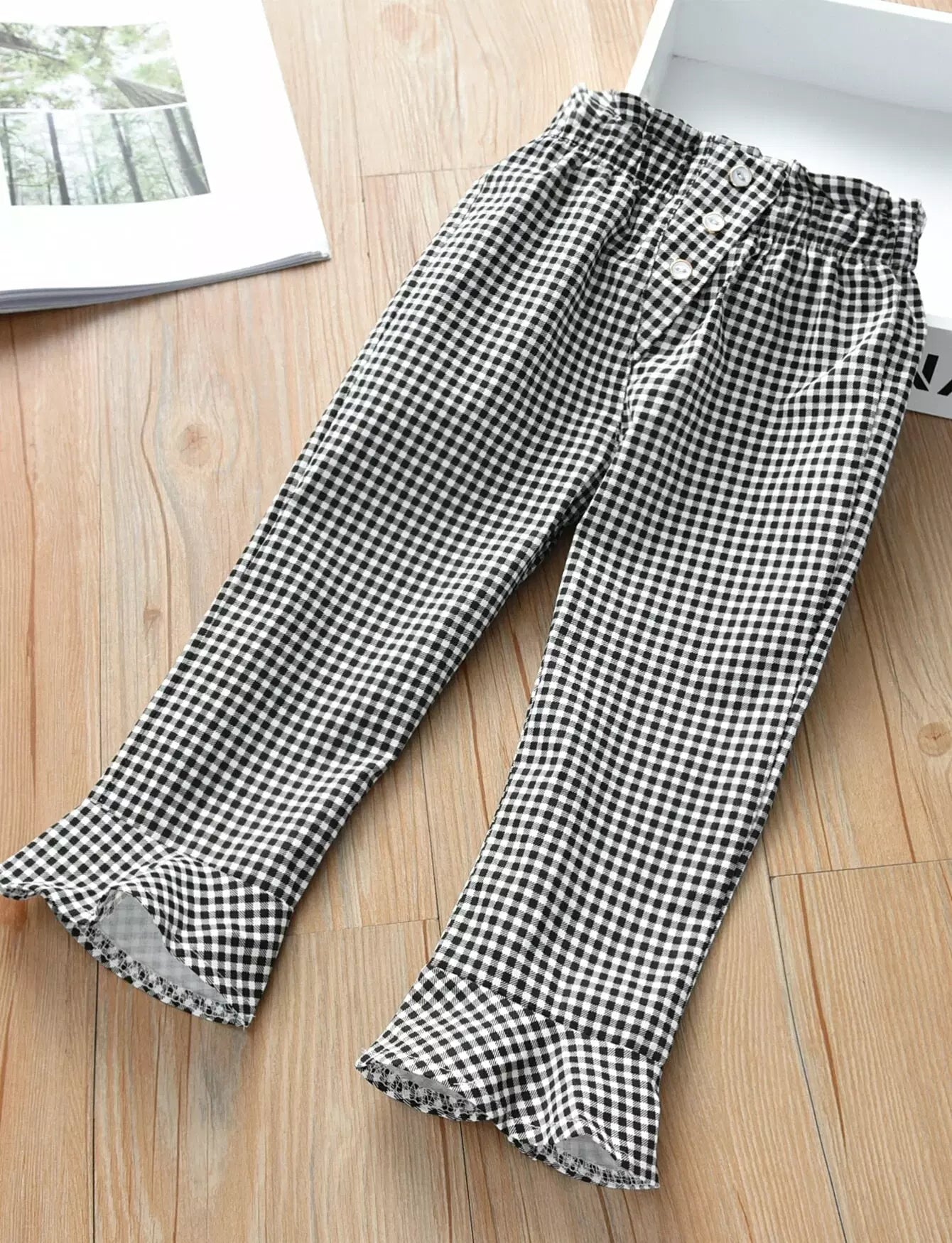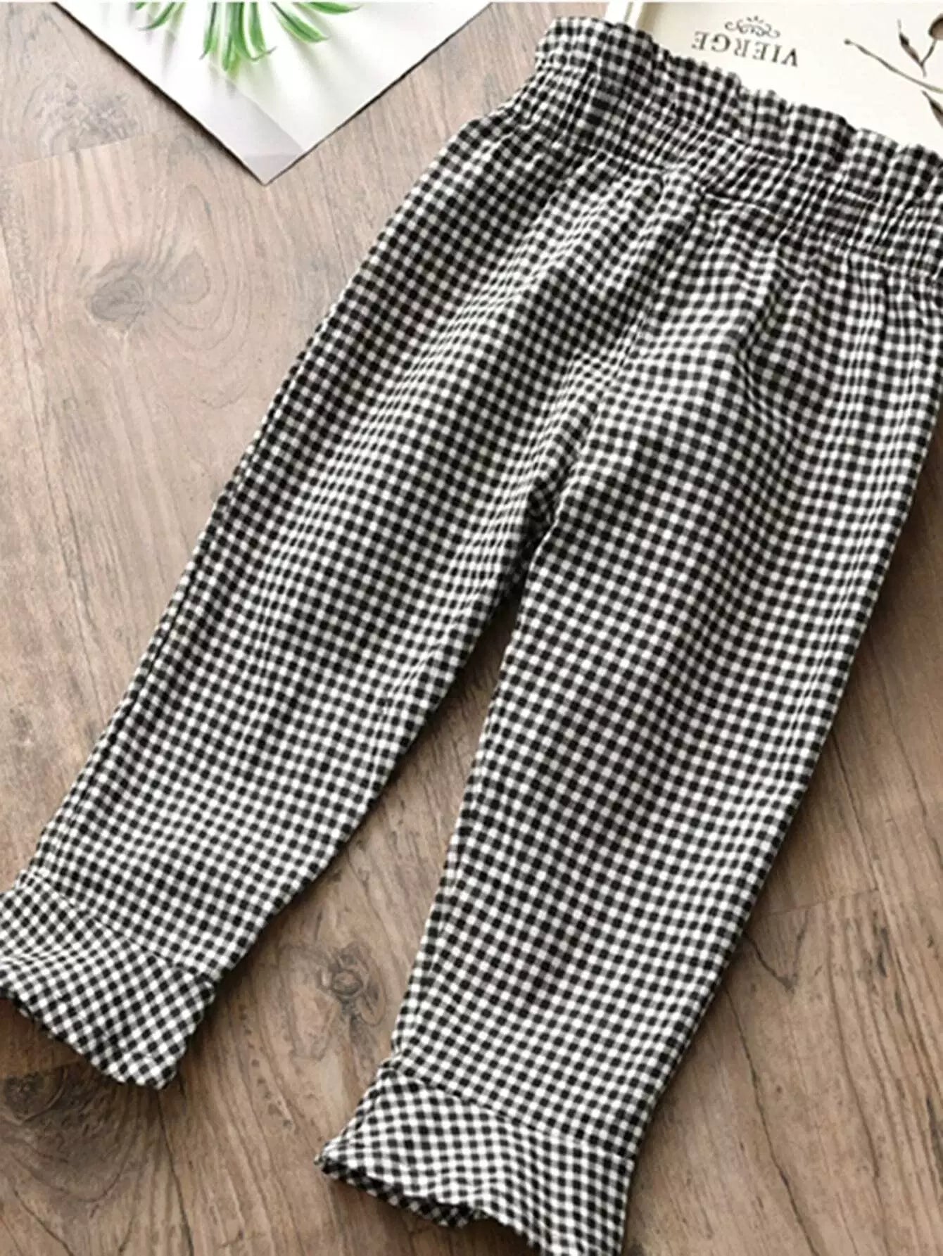 الأطفال - سراويل واسعة من القماش القطني ذات الخصر الورقي للفتيات الصغيرات
