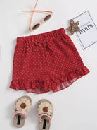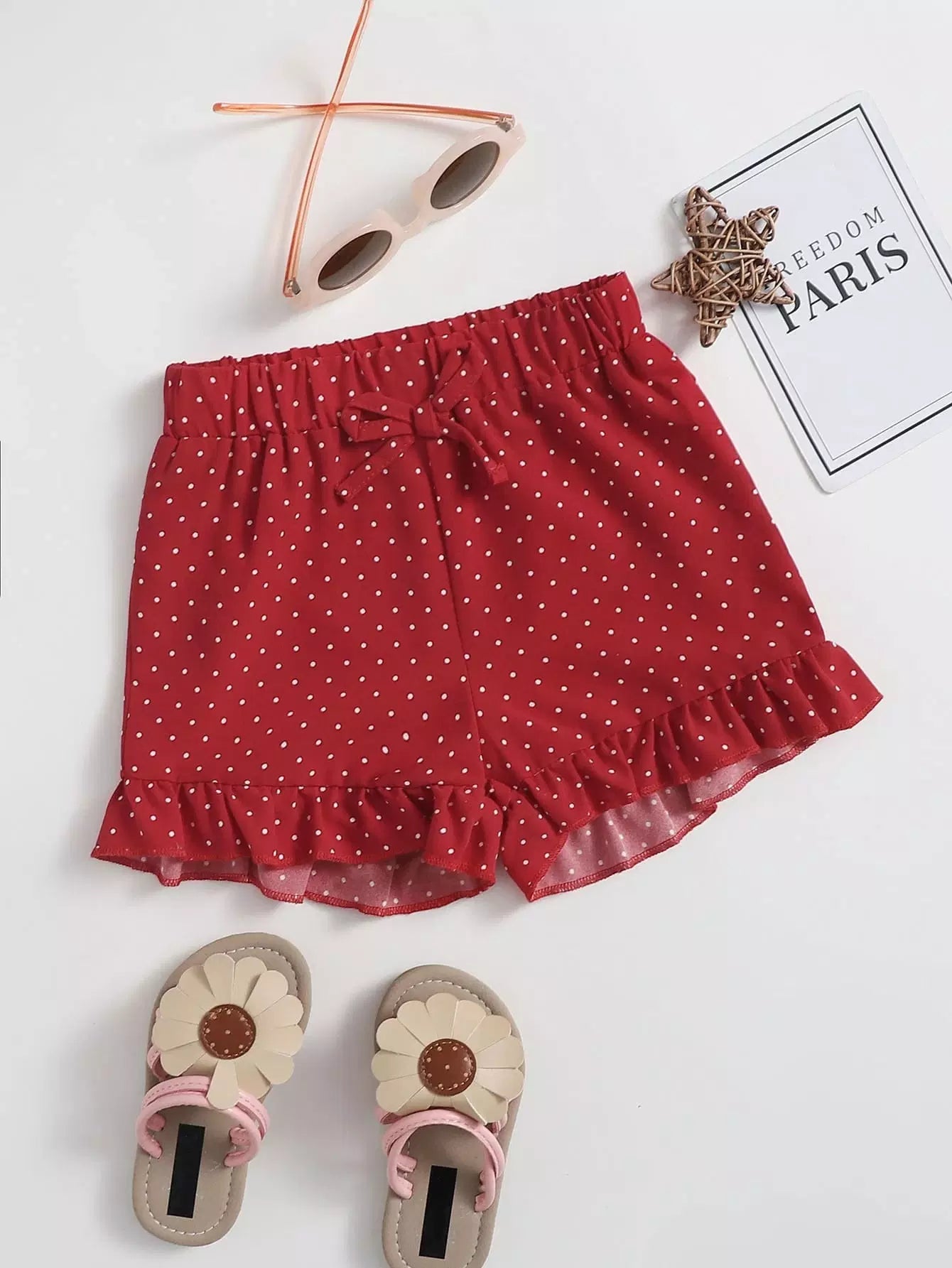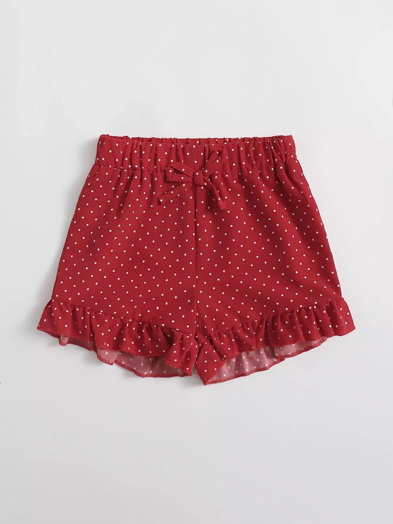شورت بحافة مكشكشة منقوشة منقطة للبنات الصغار