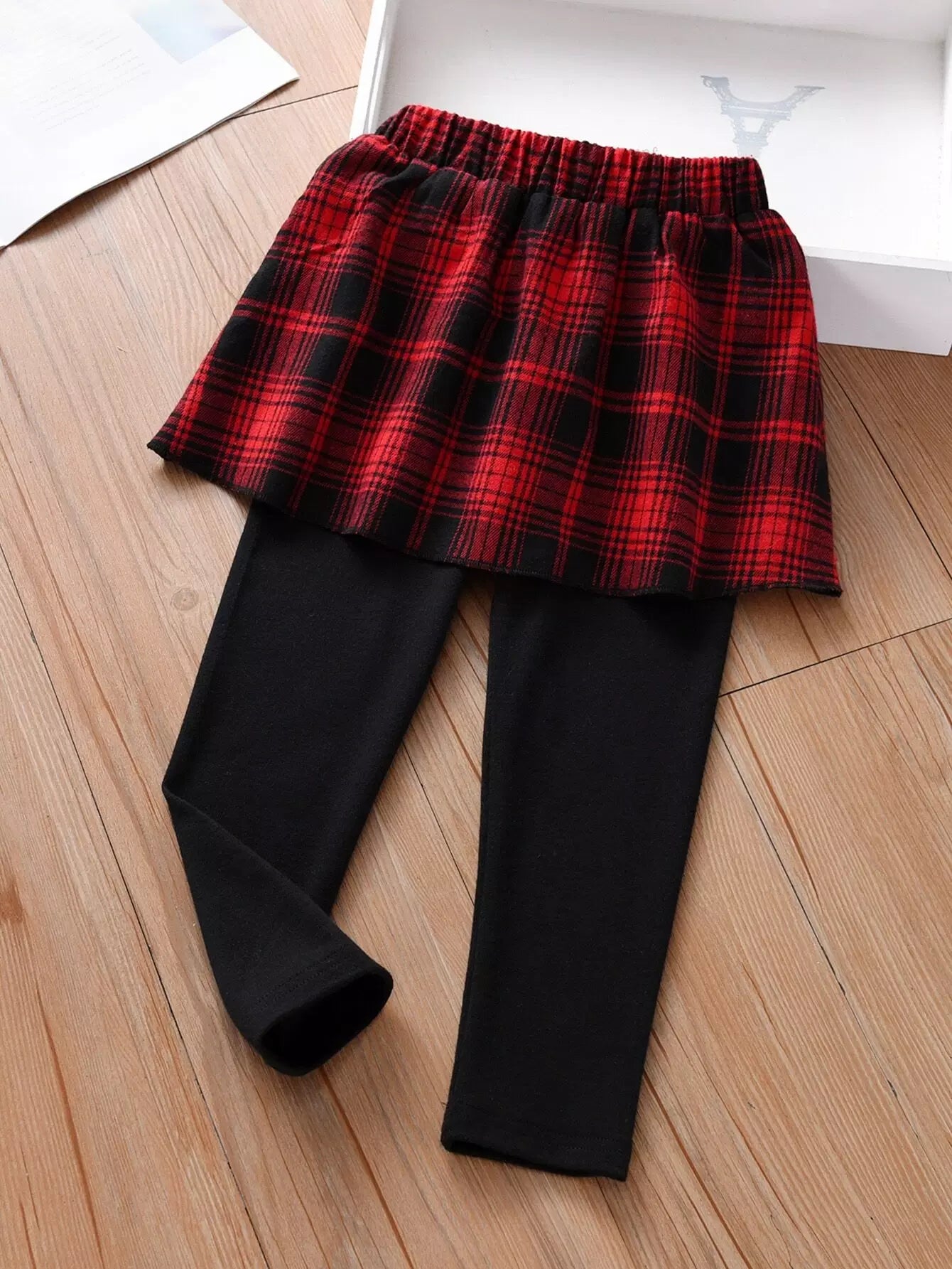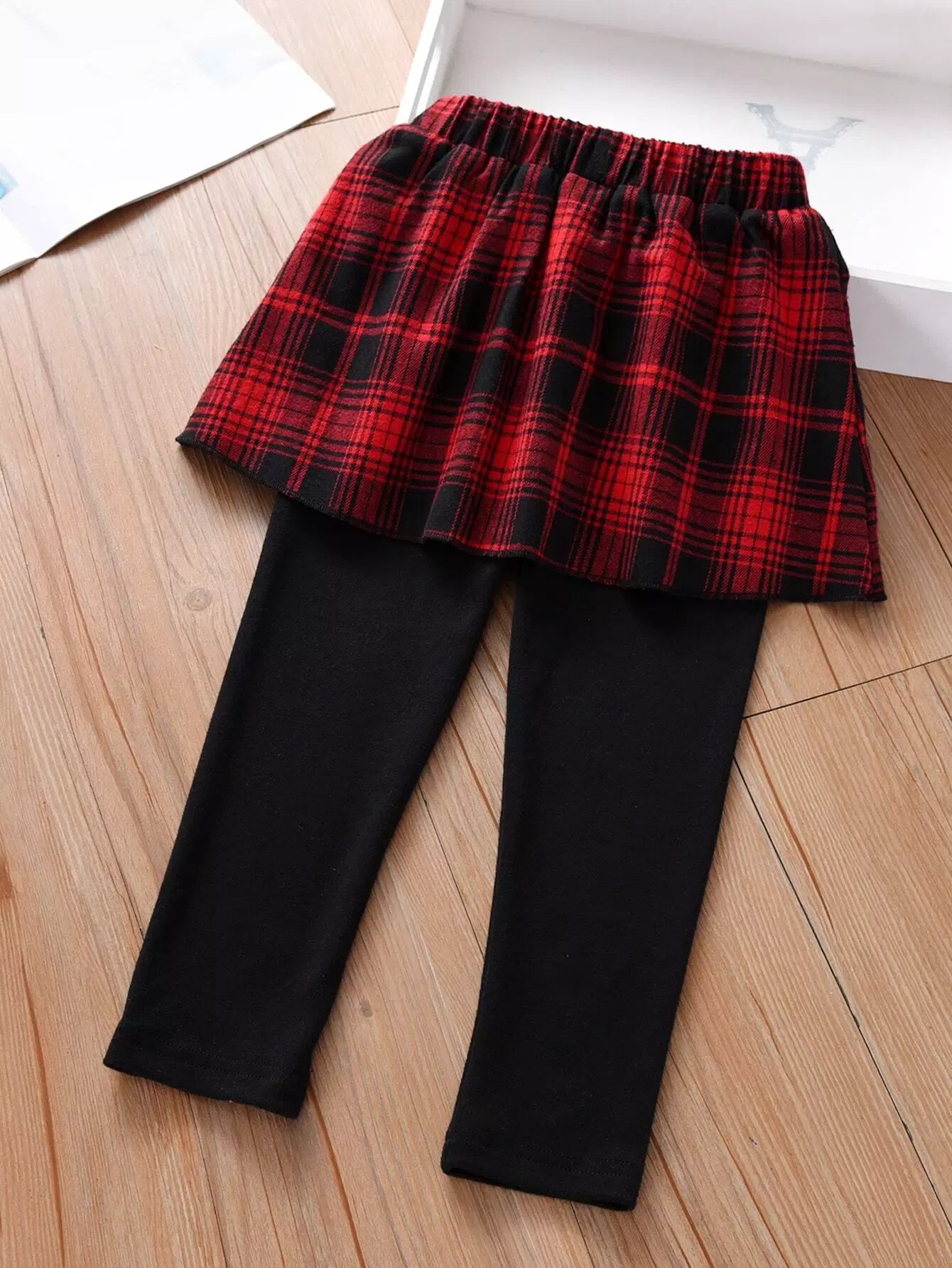 بنطلون بنات صغيرات منقوش بلون مغاير 2 في 1