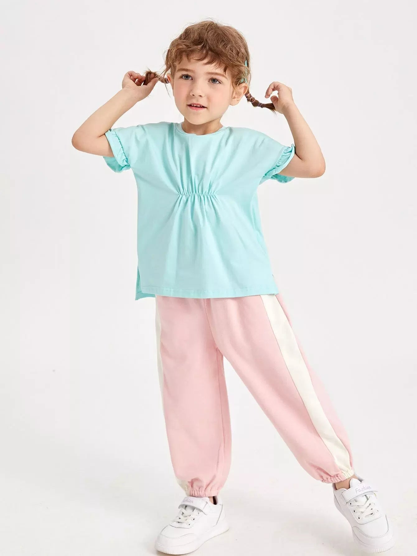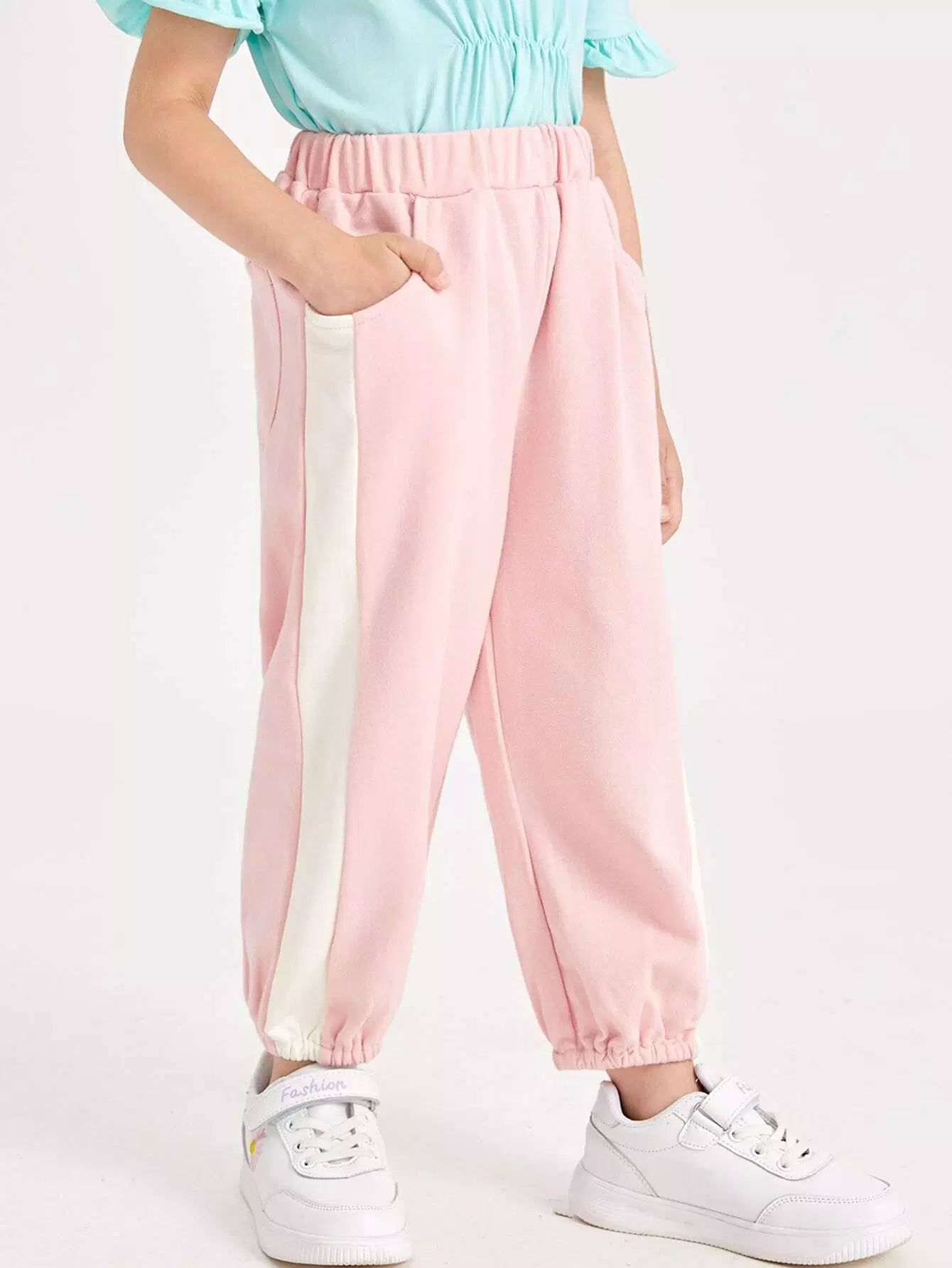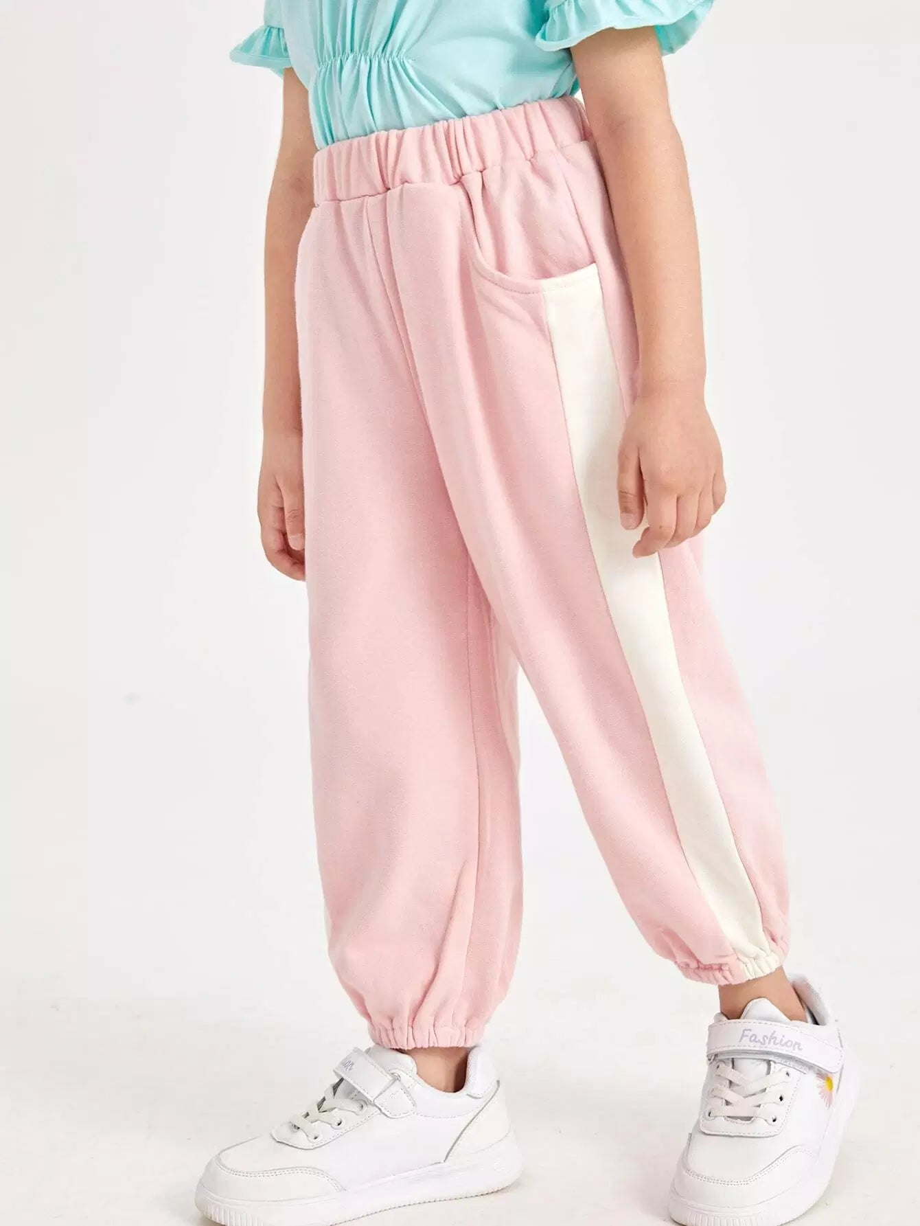 بنطلون مخطط جانبي بخصر مطاطي للبنات الصغار
