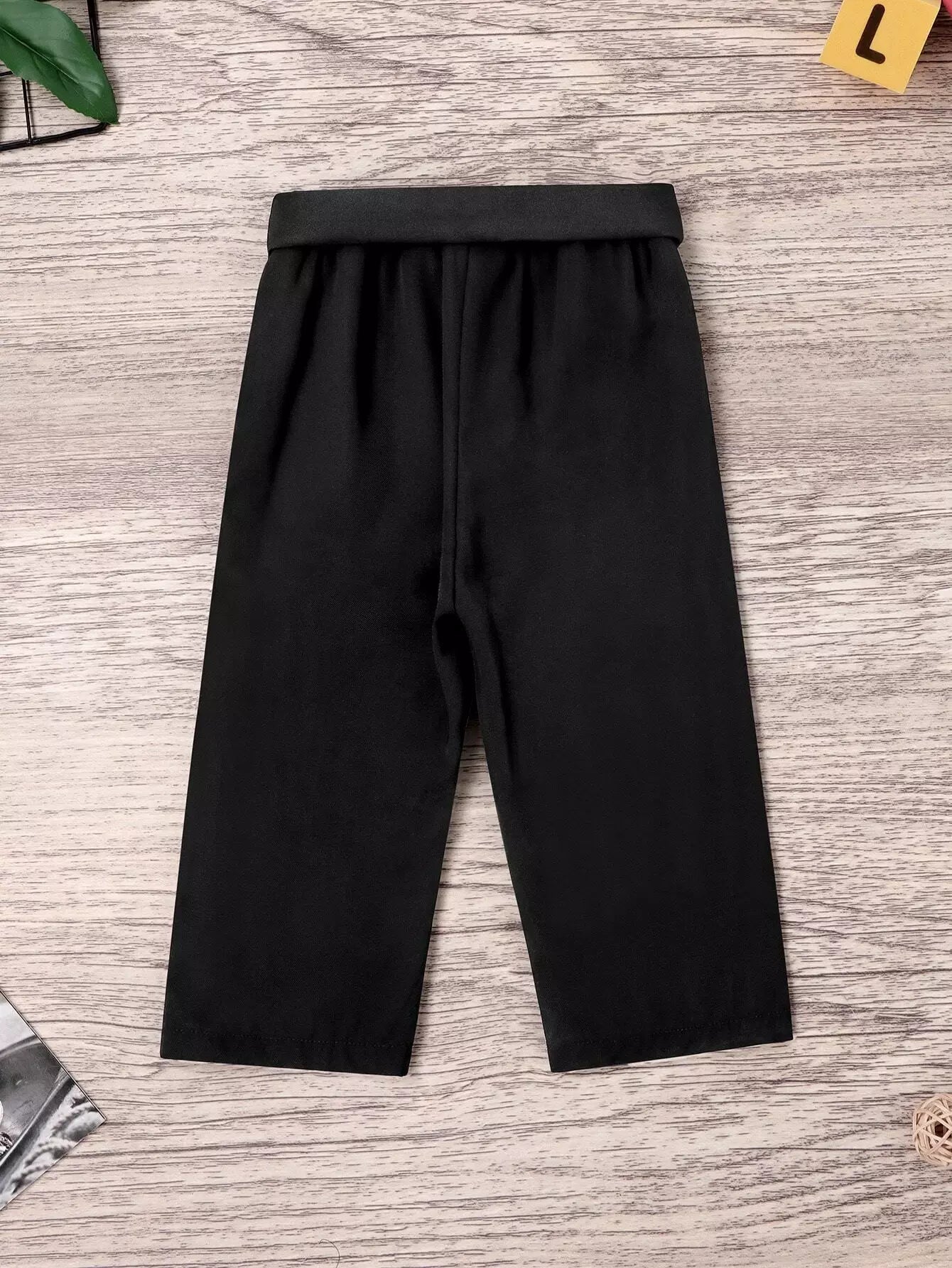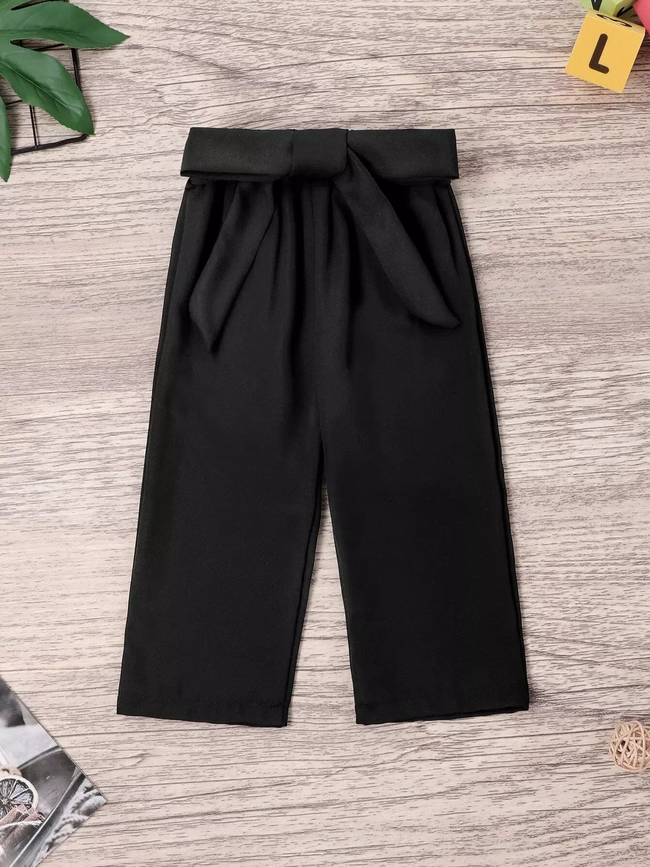 بنطلون بساق عريضة أمامية بربطة عنق للبنات الصغار