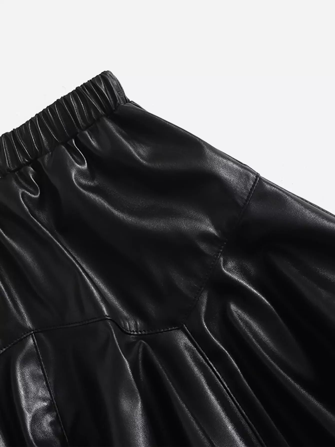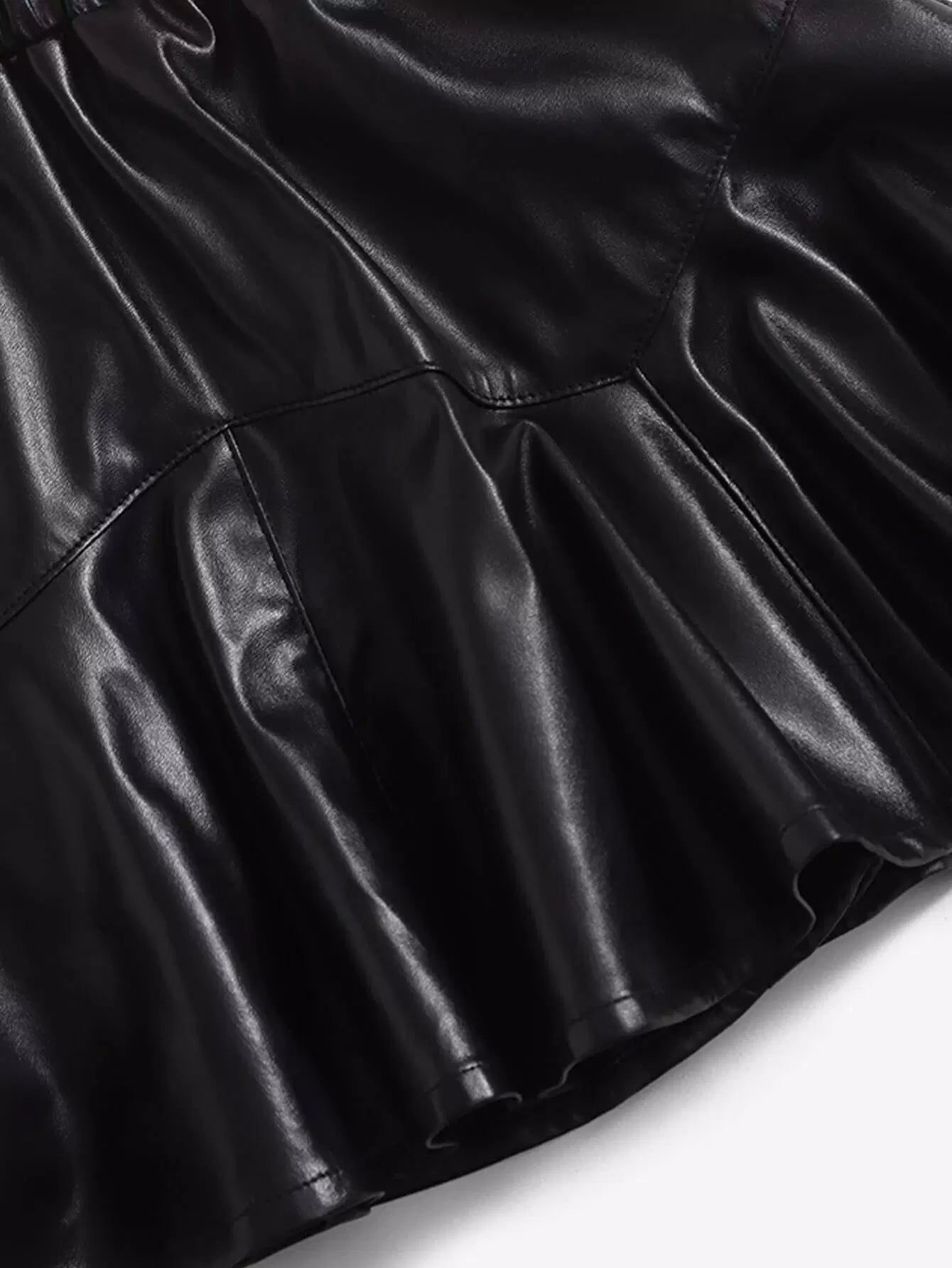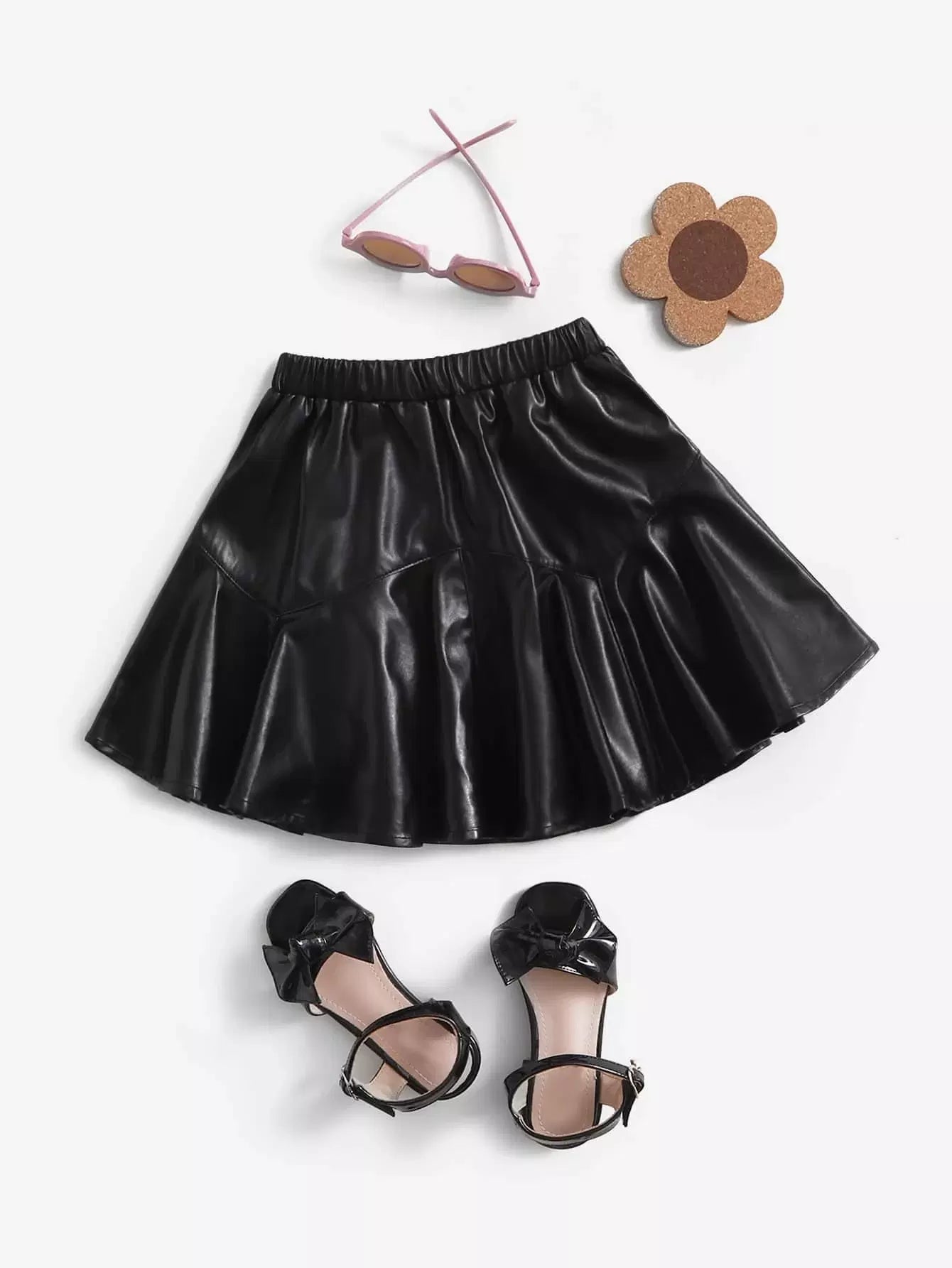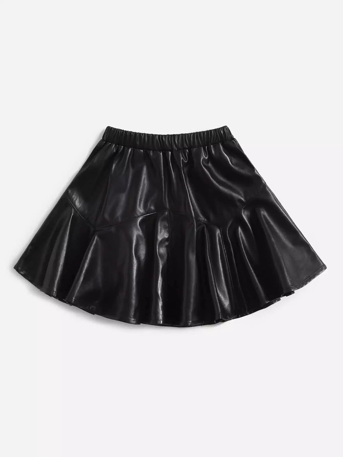 تنورة واسعة من الجلد الصناعي بخصر مطاطي للفتيات الصغيرات