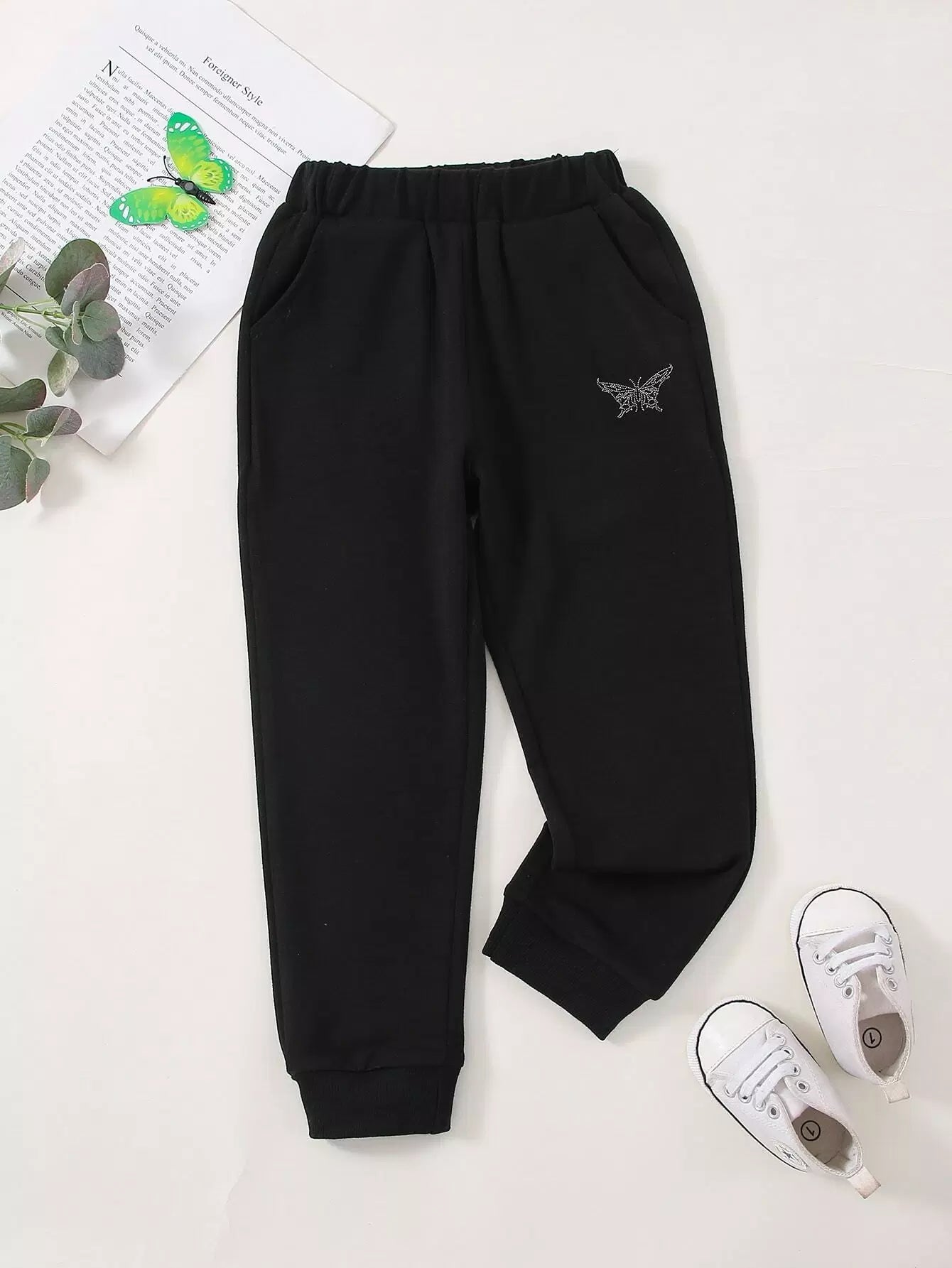 بنطال رياضي بنقشة فراشة للبنات الصغار