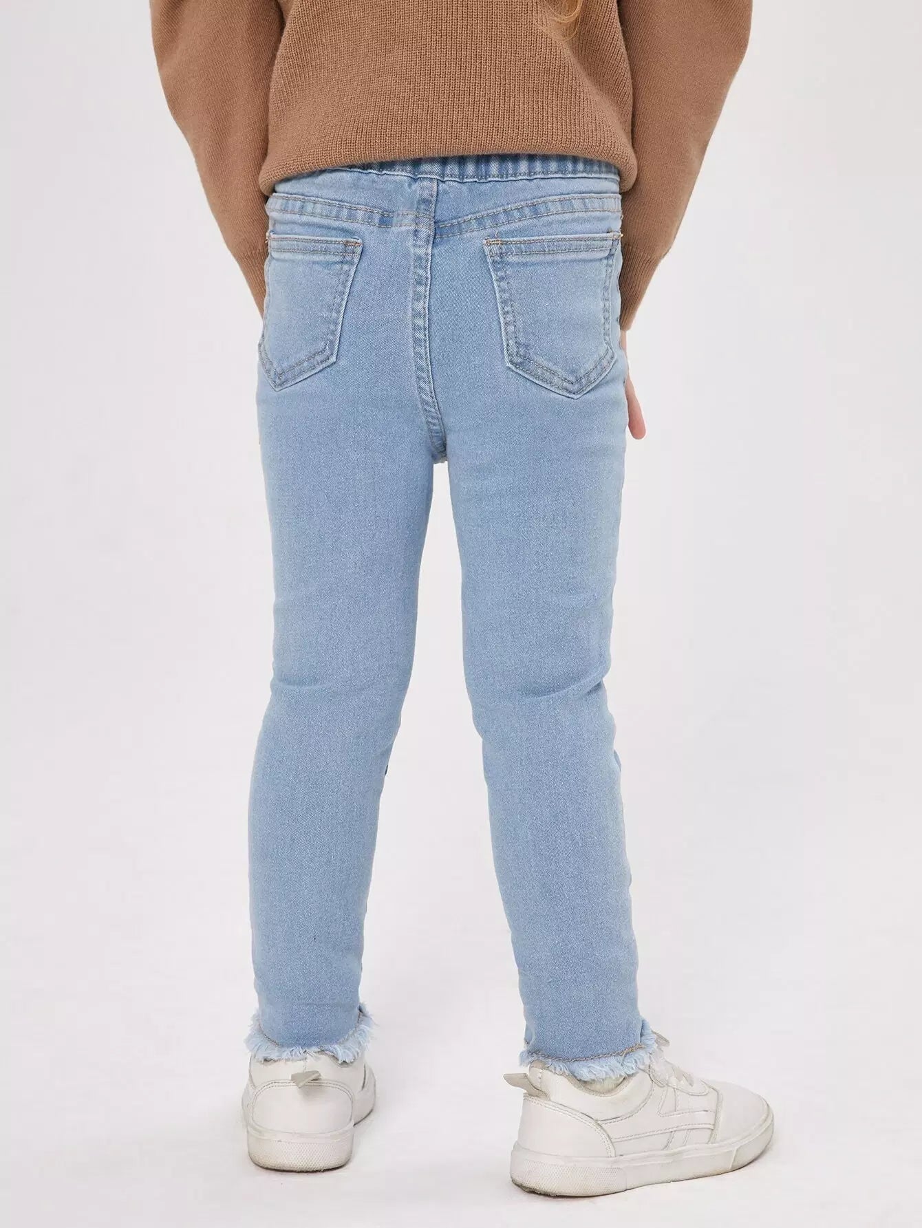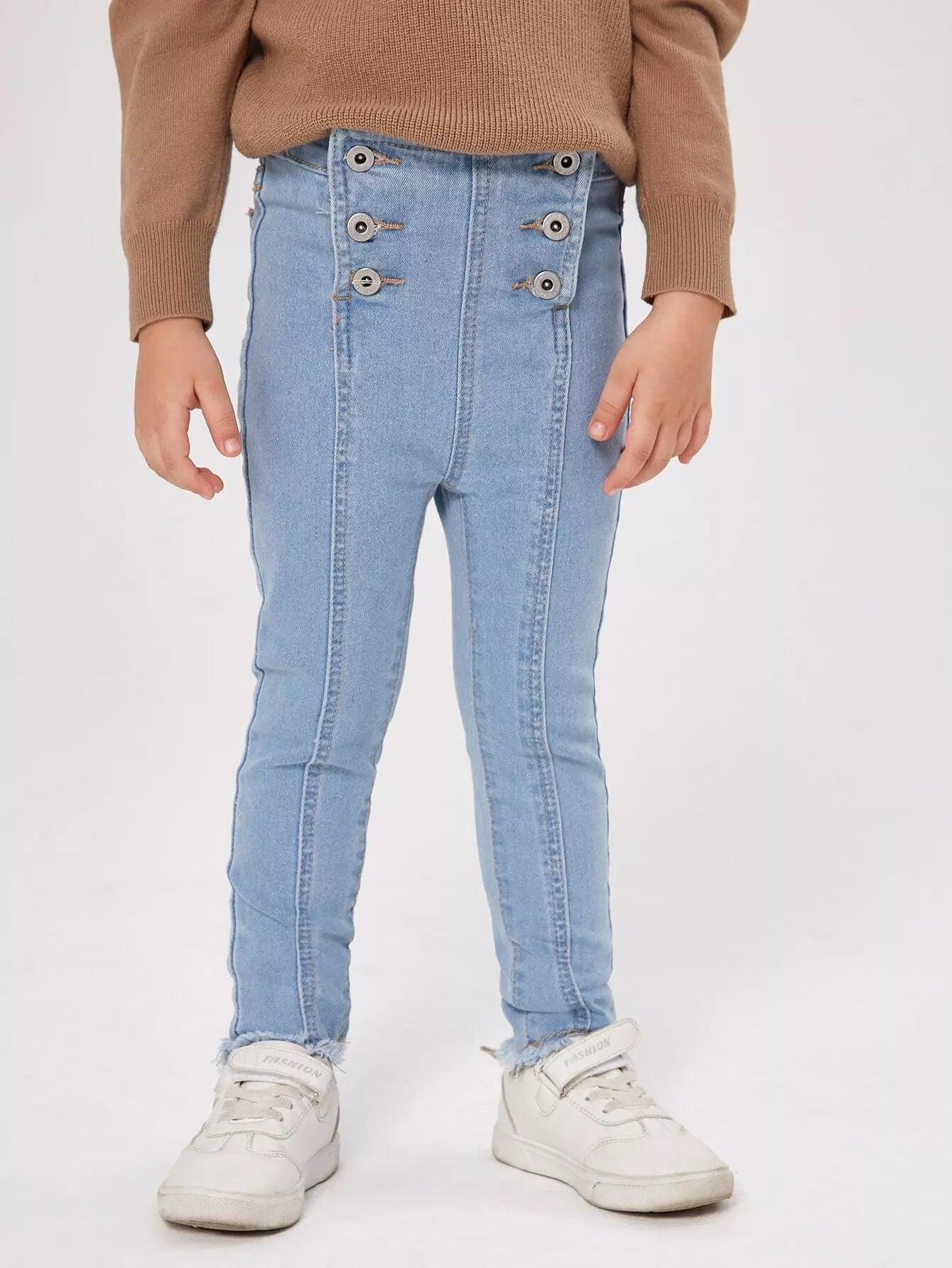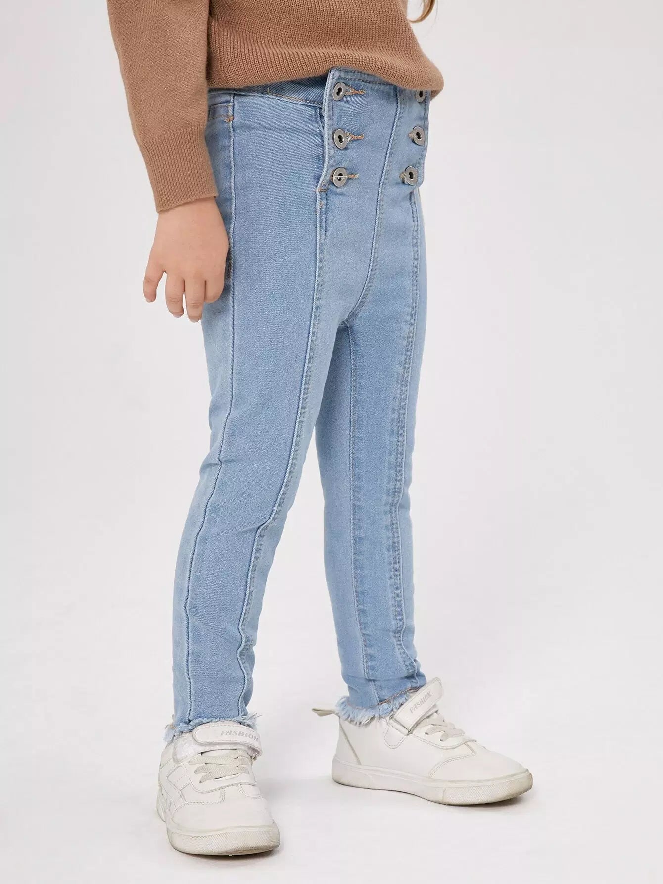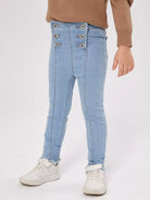 بنطلون جينز ضيق بقصّة غير مكتملة وأزرار للفتيات الصغيرات