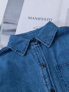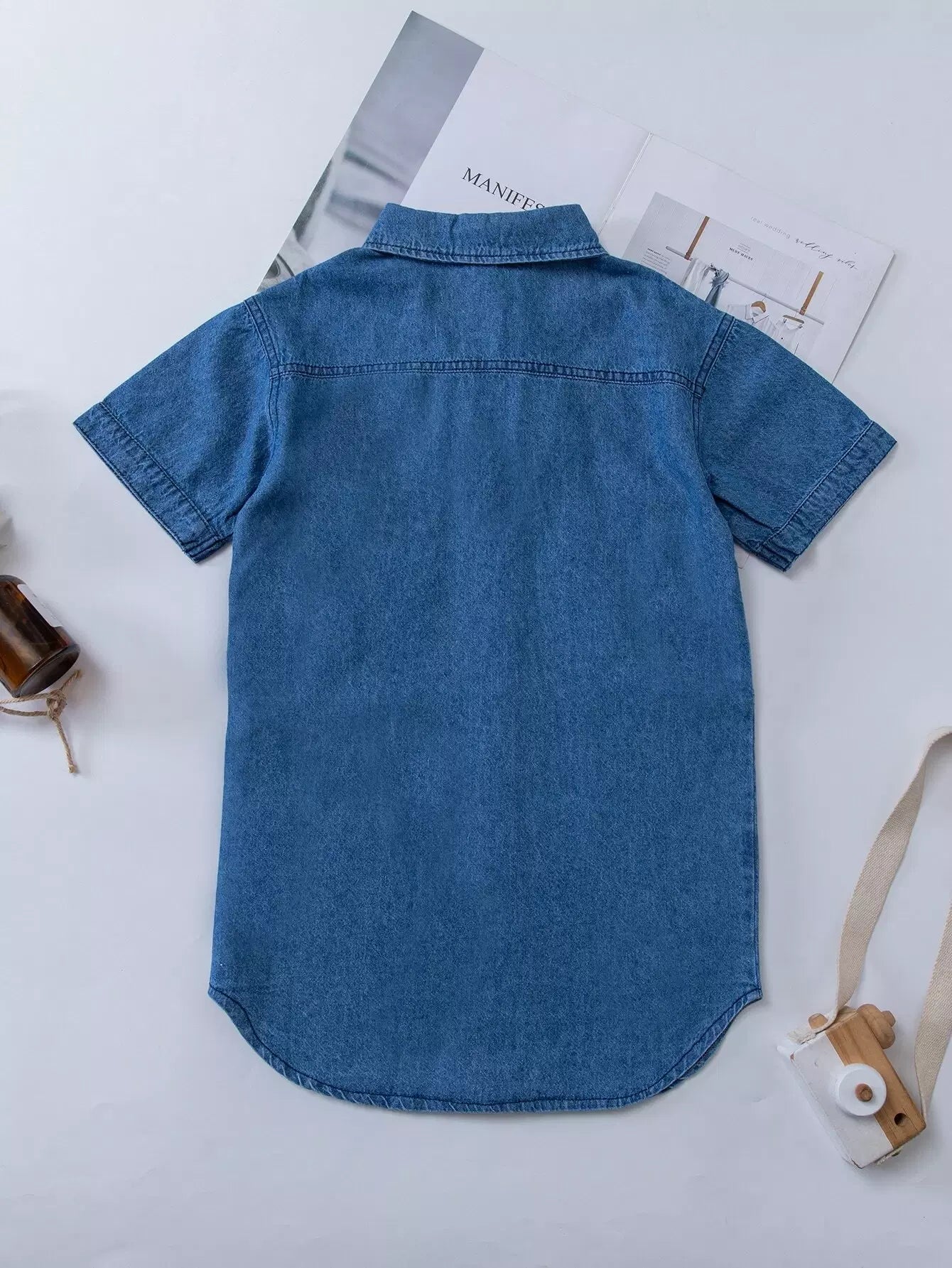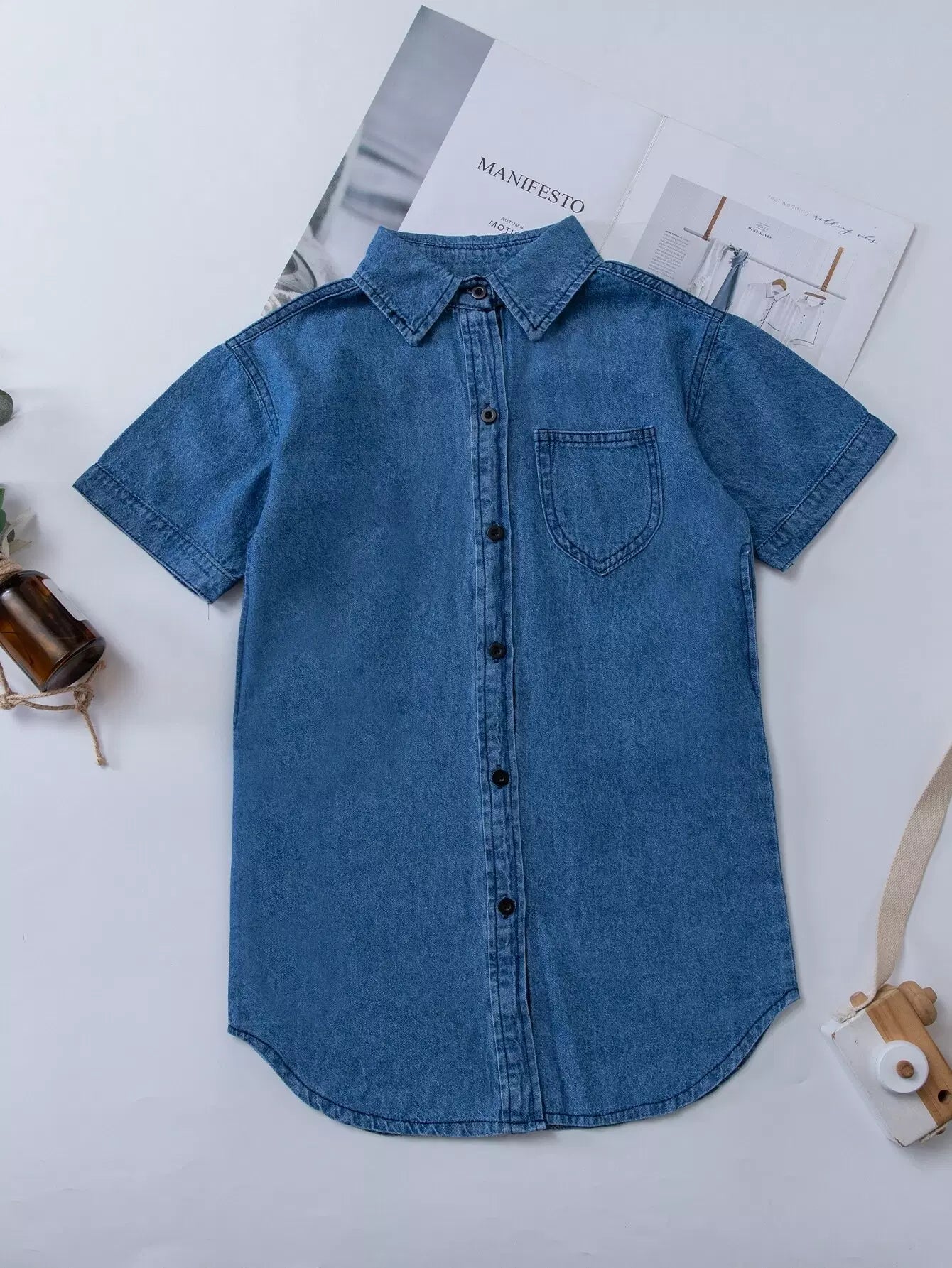 فستان دنيم مرقع بجيب بأزرار للبنات الصغار