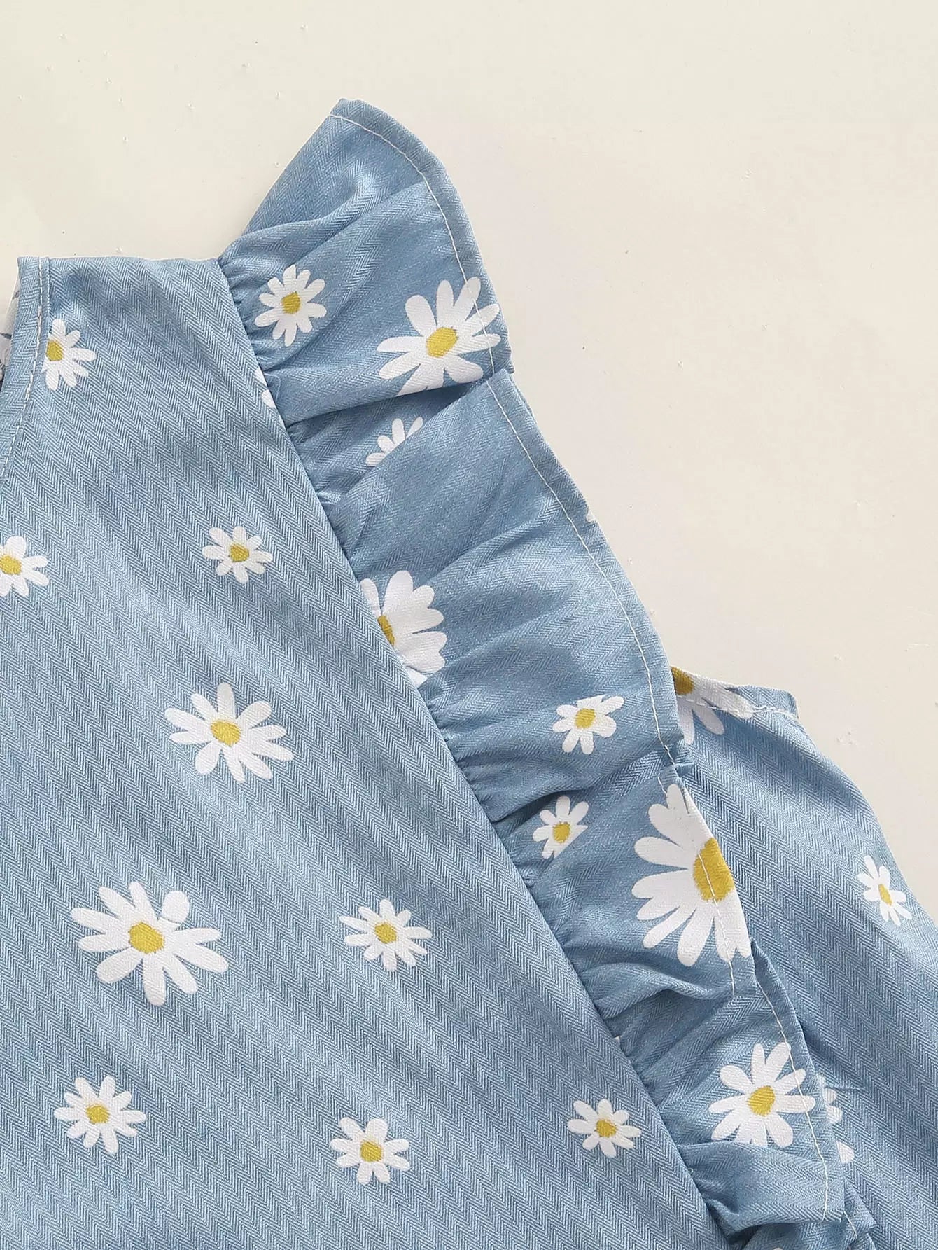 جينز علوي من قماش الدنيم المكشكش للفتيات الصغيرات بدون حزام