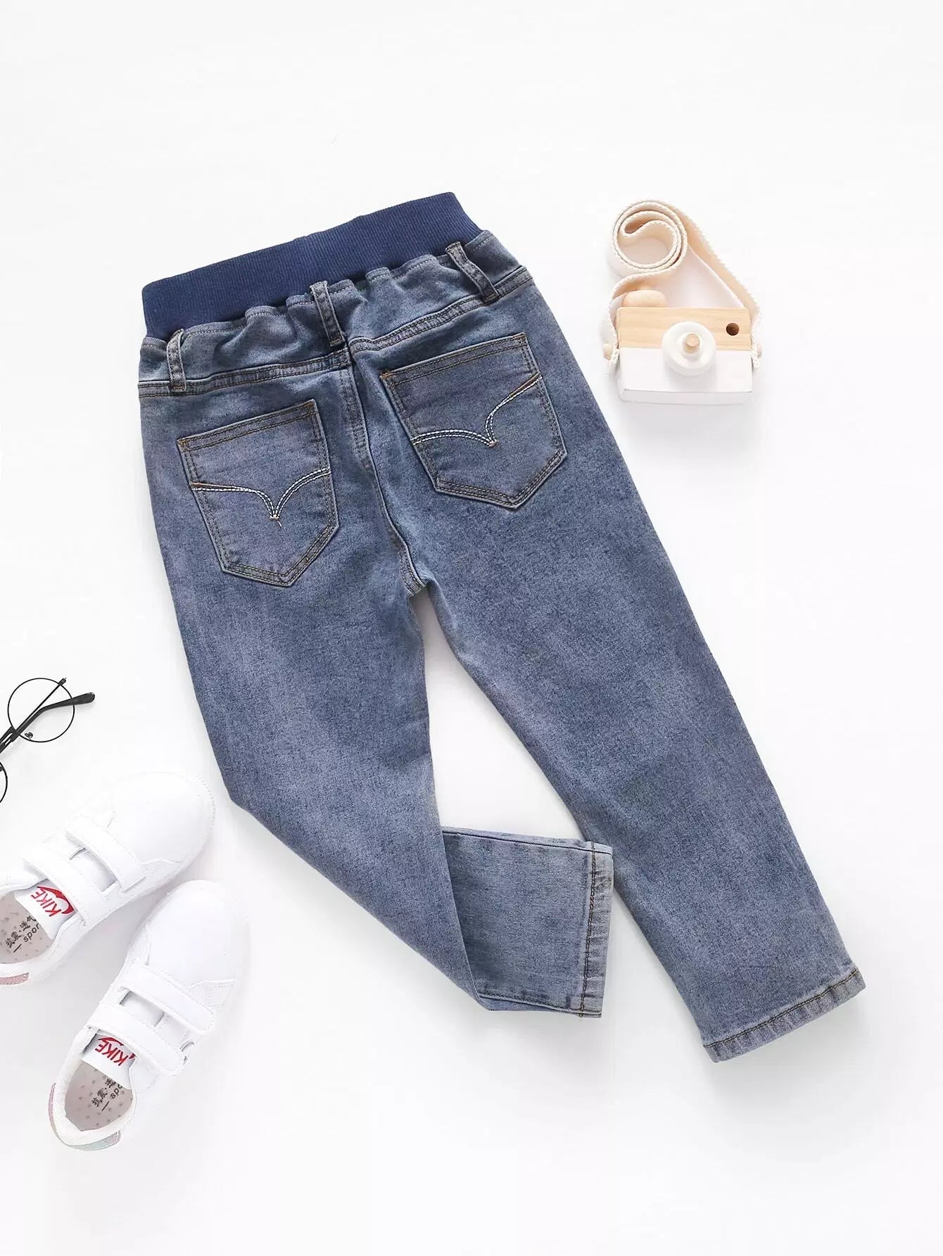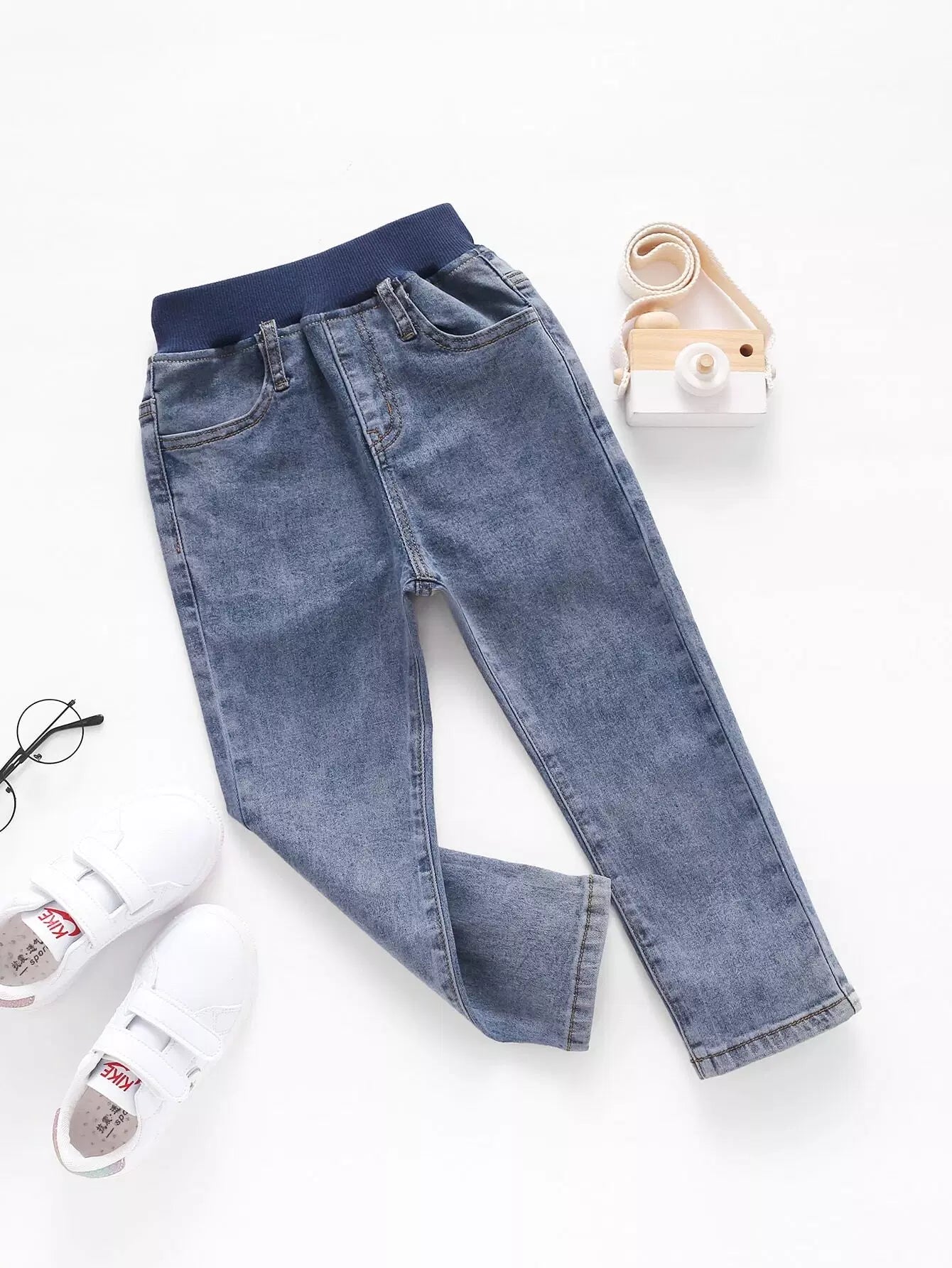 بنطلون جينز بخصر مرن مائل بخصر مائل للبنات الصغار