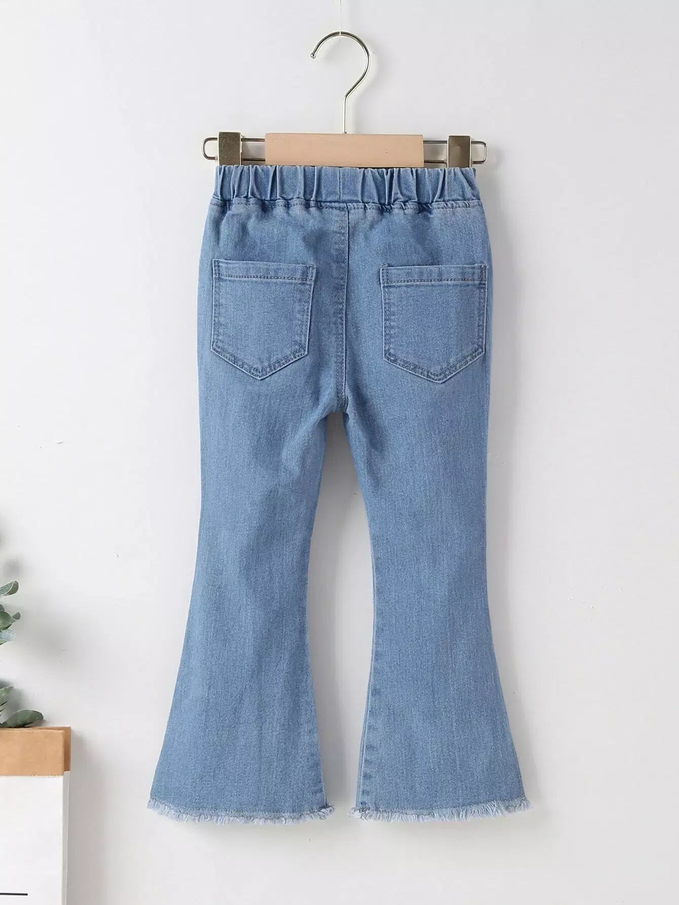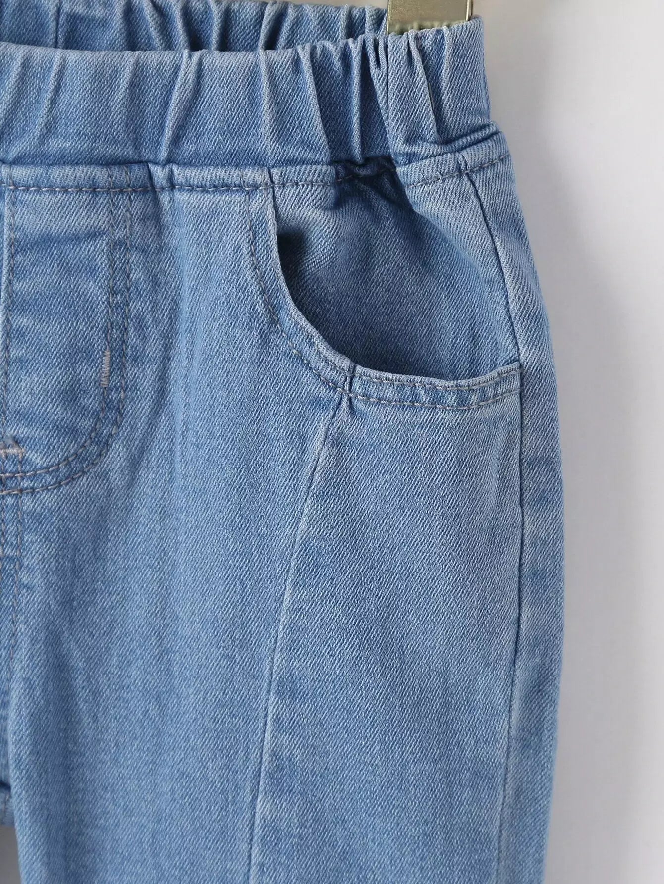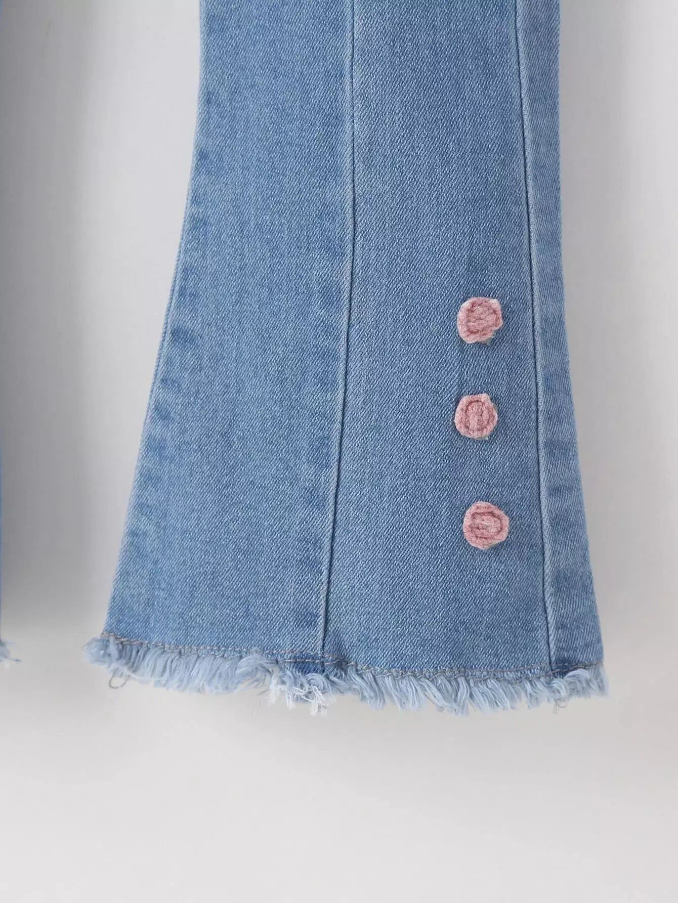 بنطلون جينز بأزرار مزخرفة بأزرار مزيفة للبنات