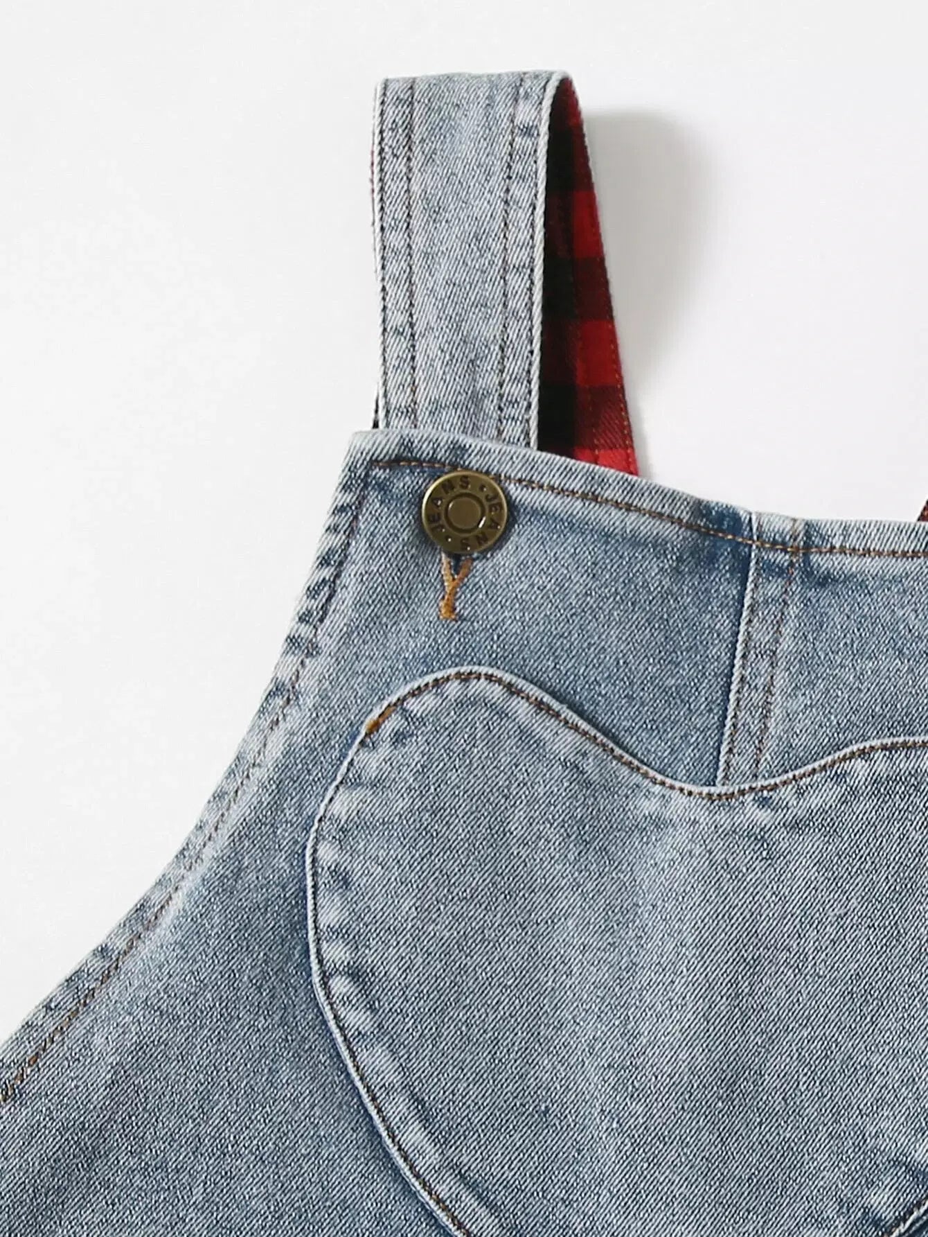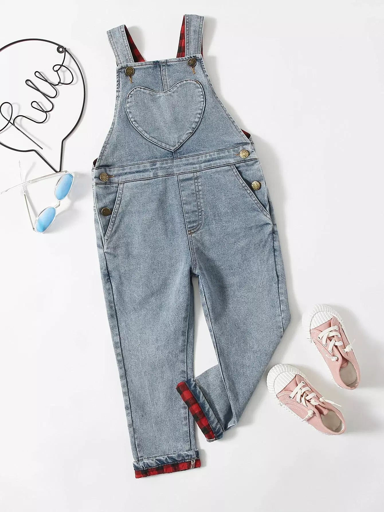 جامبسوت جينز كلي من الدنيم منقوش من الأمام على شكل قلب للبنات الصغار