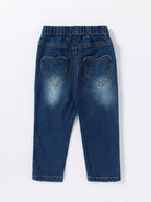 بنطلون جينز مرقع بالقلب للبنات الصغيرات