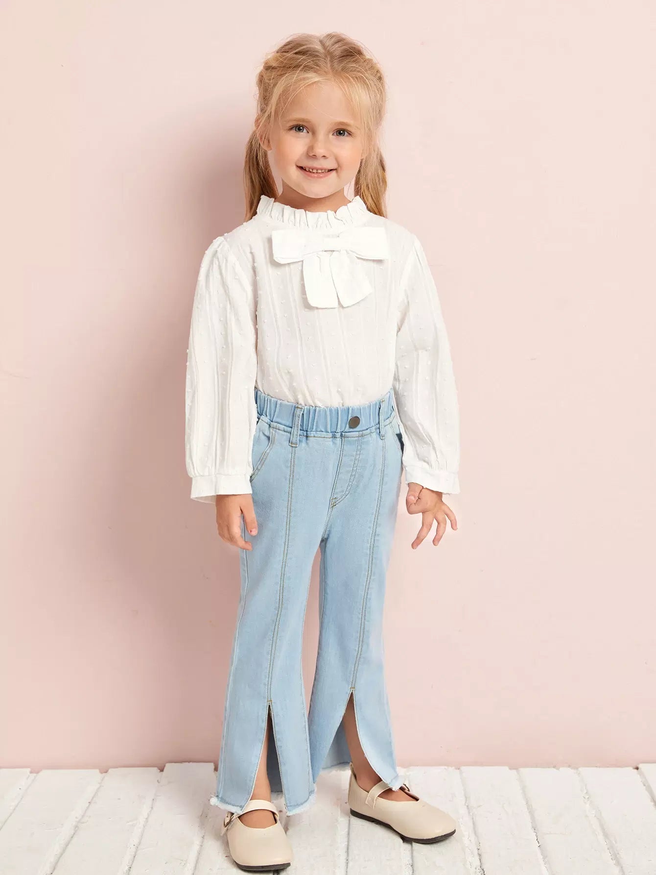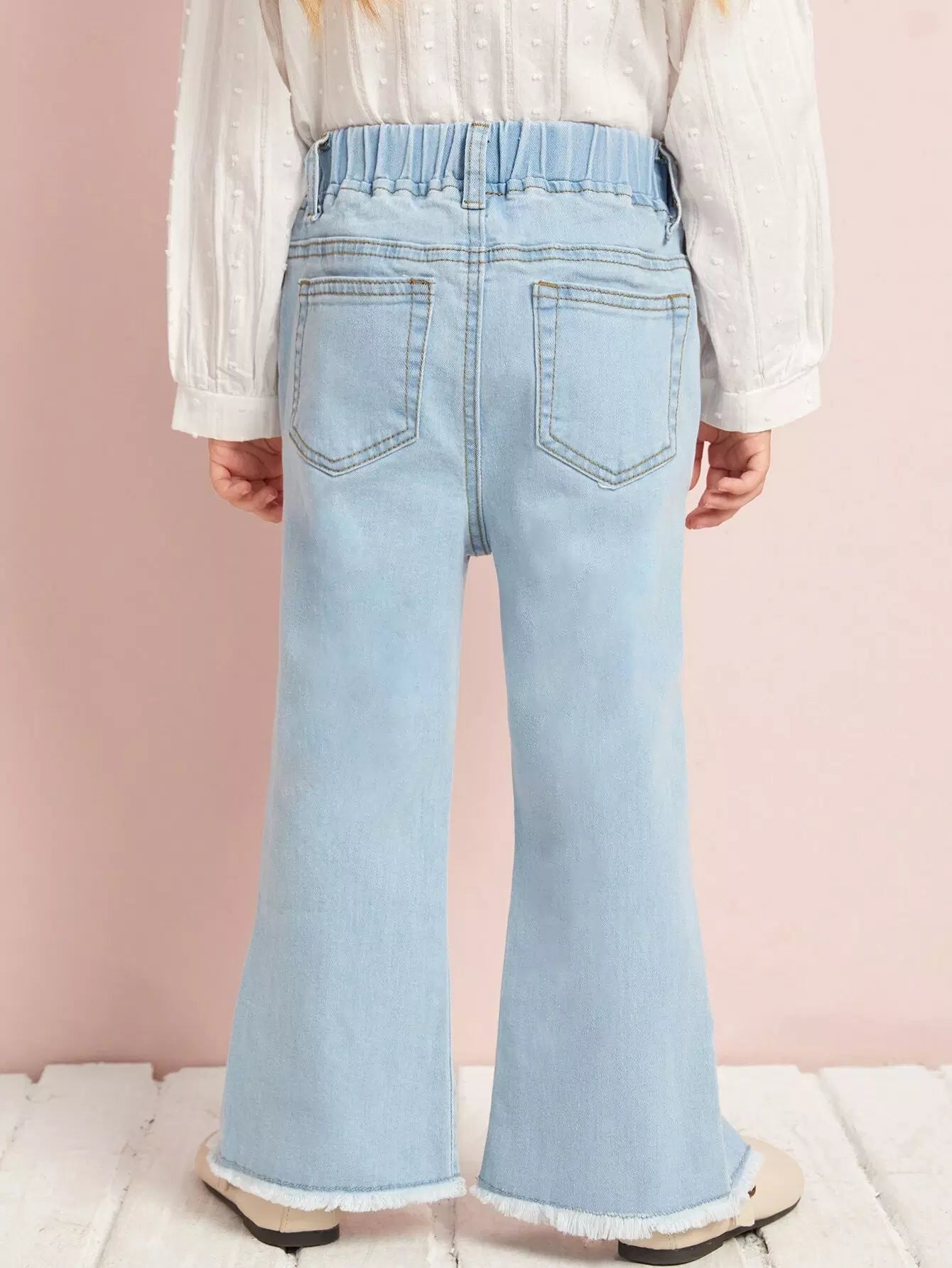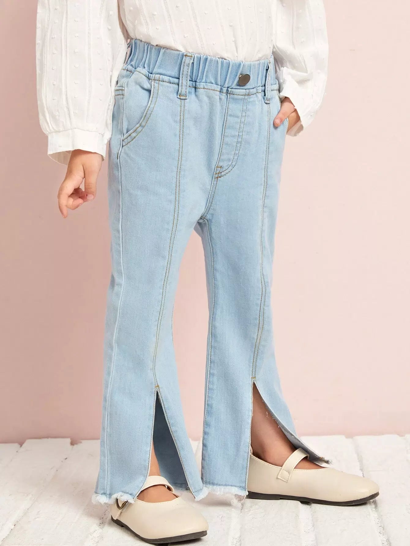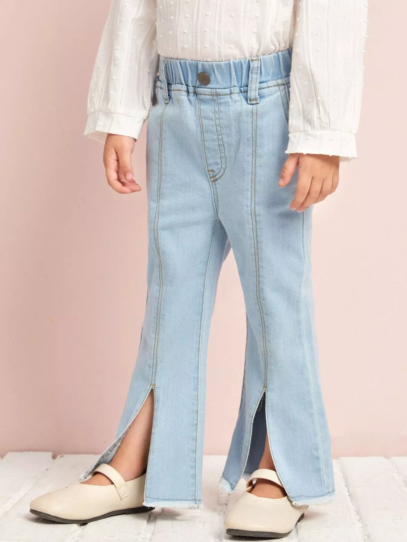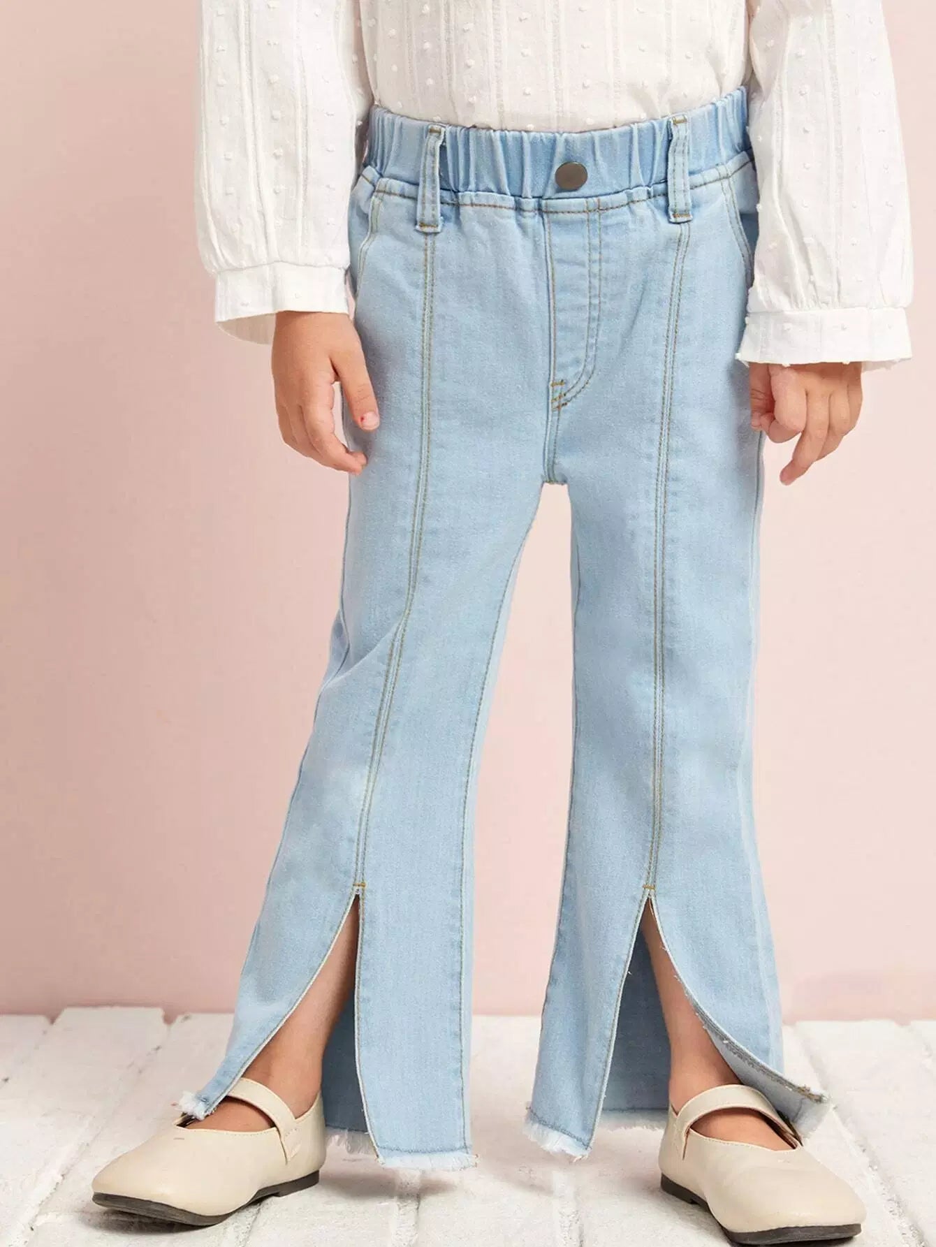 بنطلون جينز بحواف خفيف مقسم للبنات الصغار