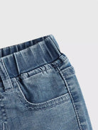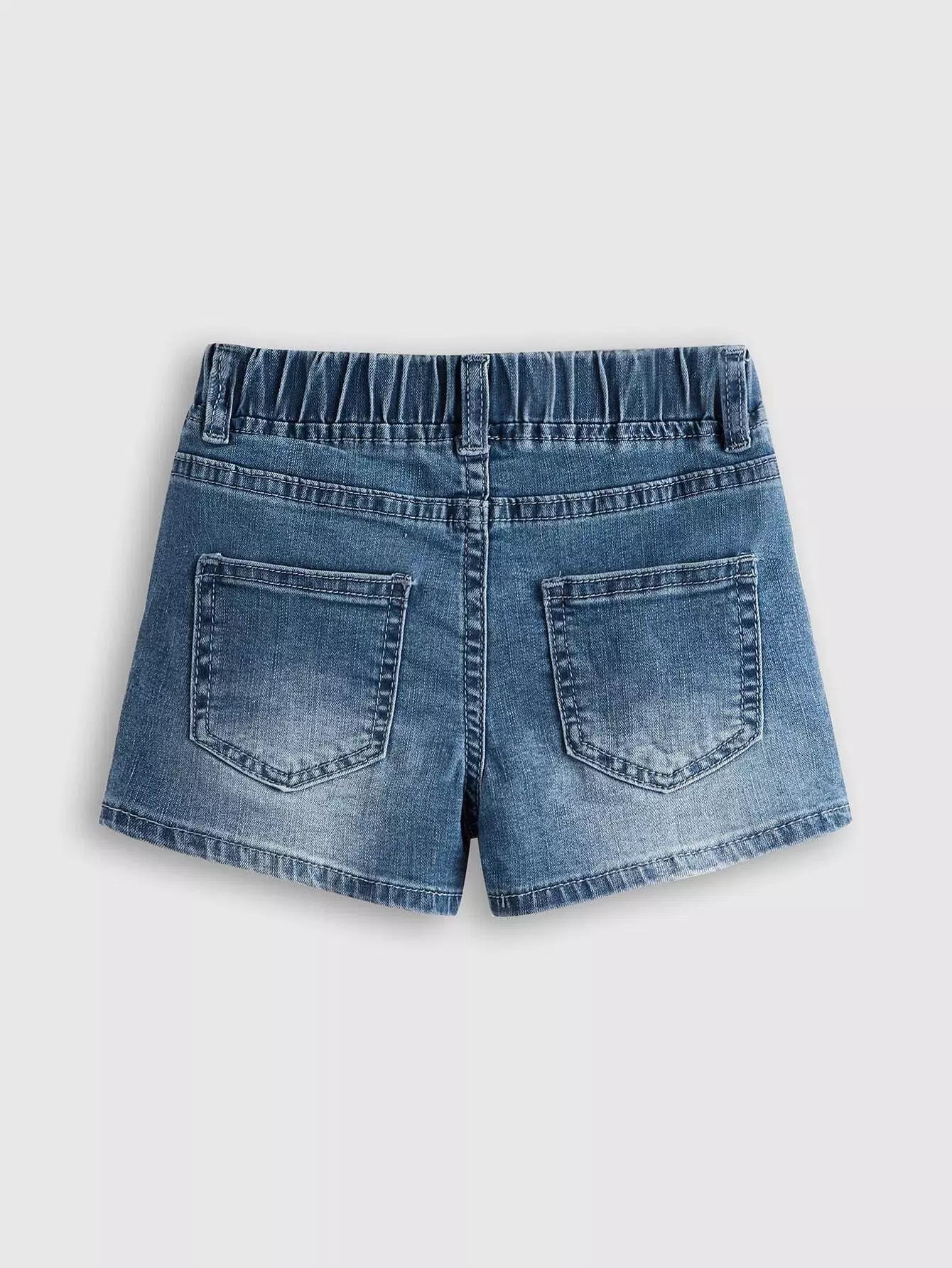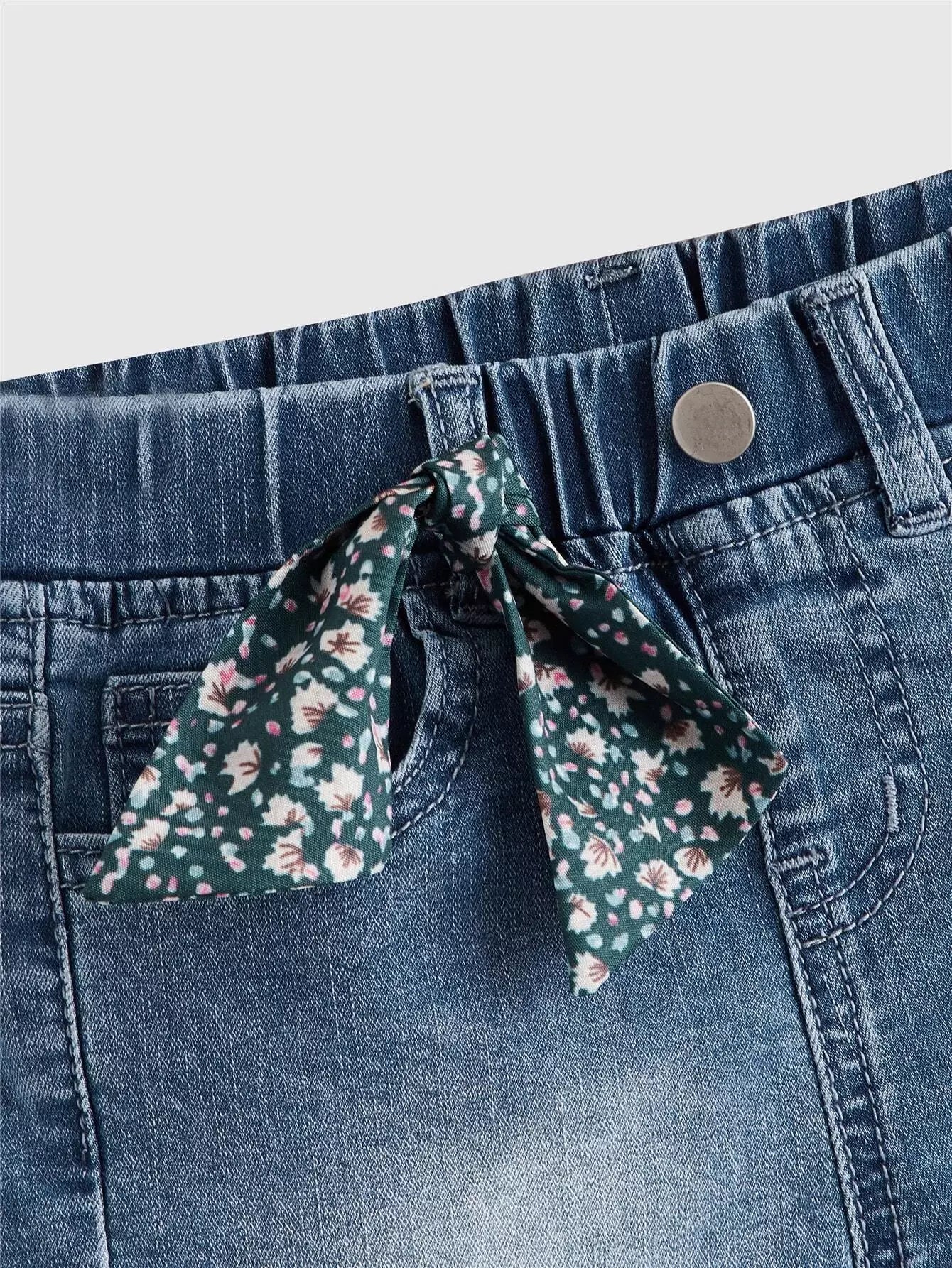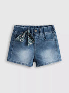 شورت جينز دنيم مفصل بعقدة مغسول للبنات الصغار