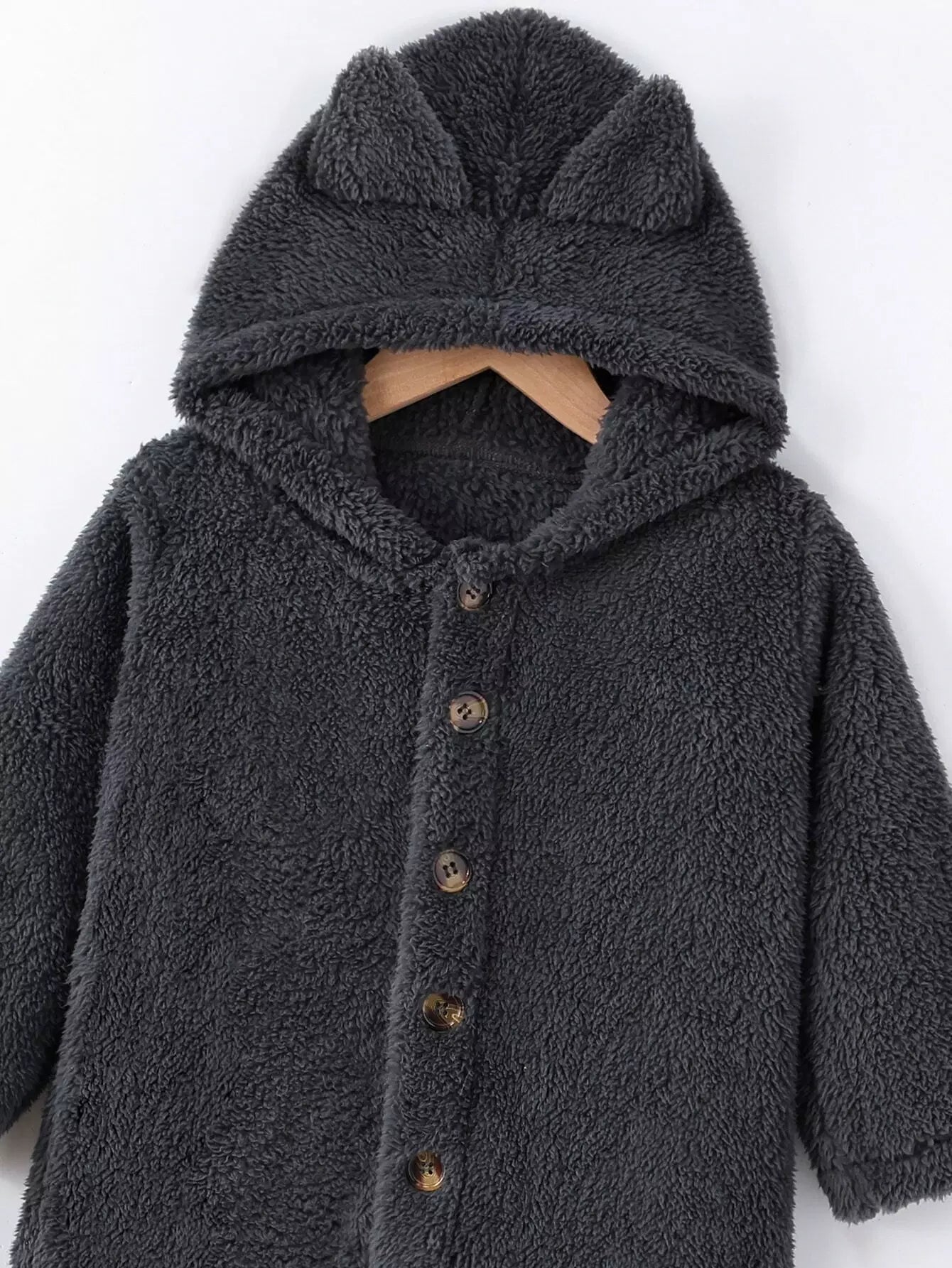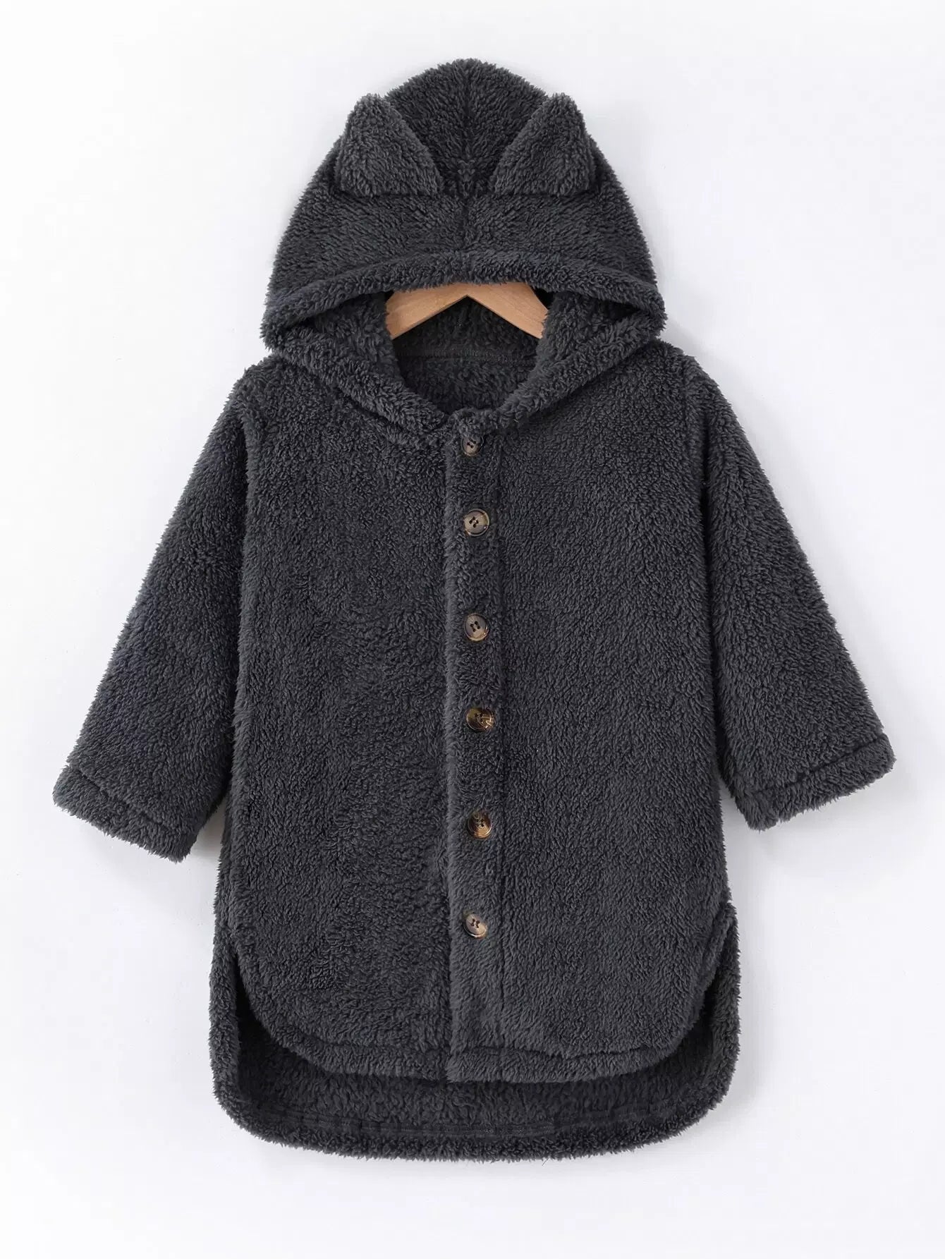 معطف تيدي بغطاء رأس مرقع ثلاثي الأبعاد للبنات الصغار
