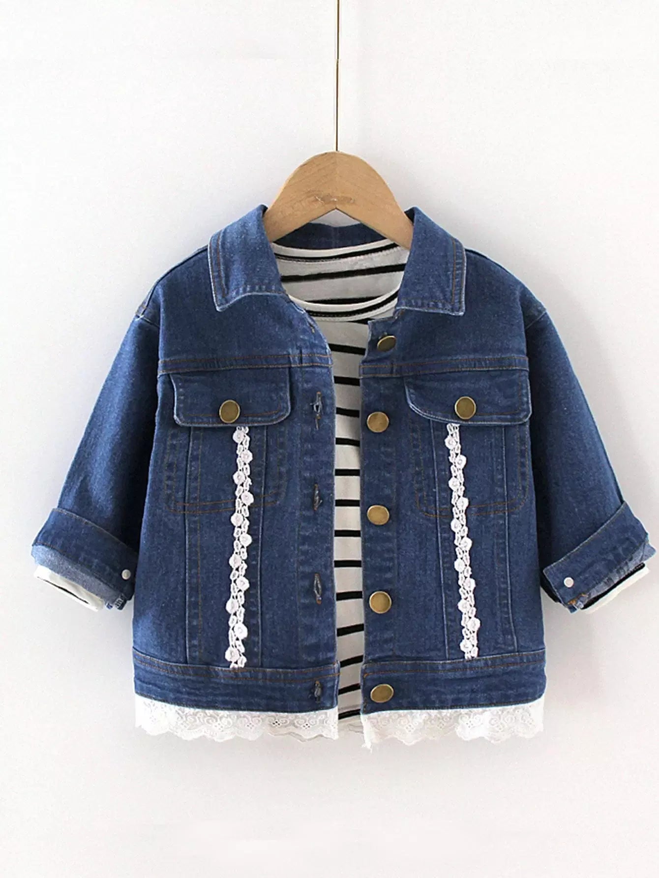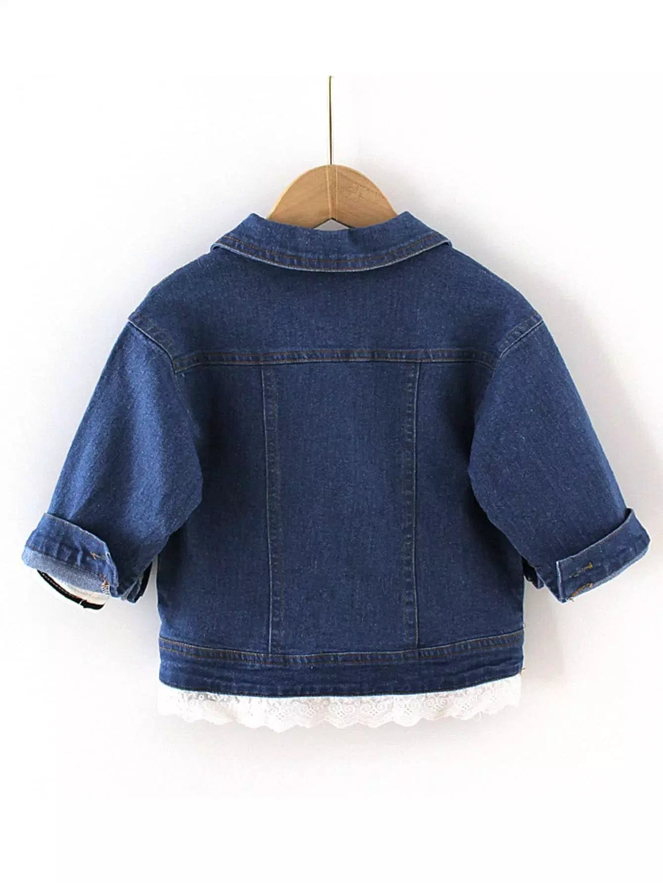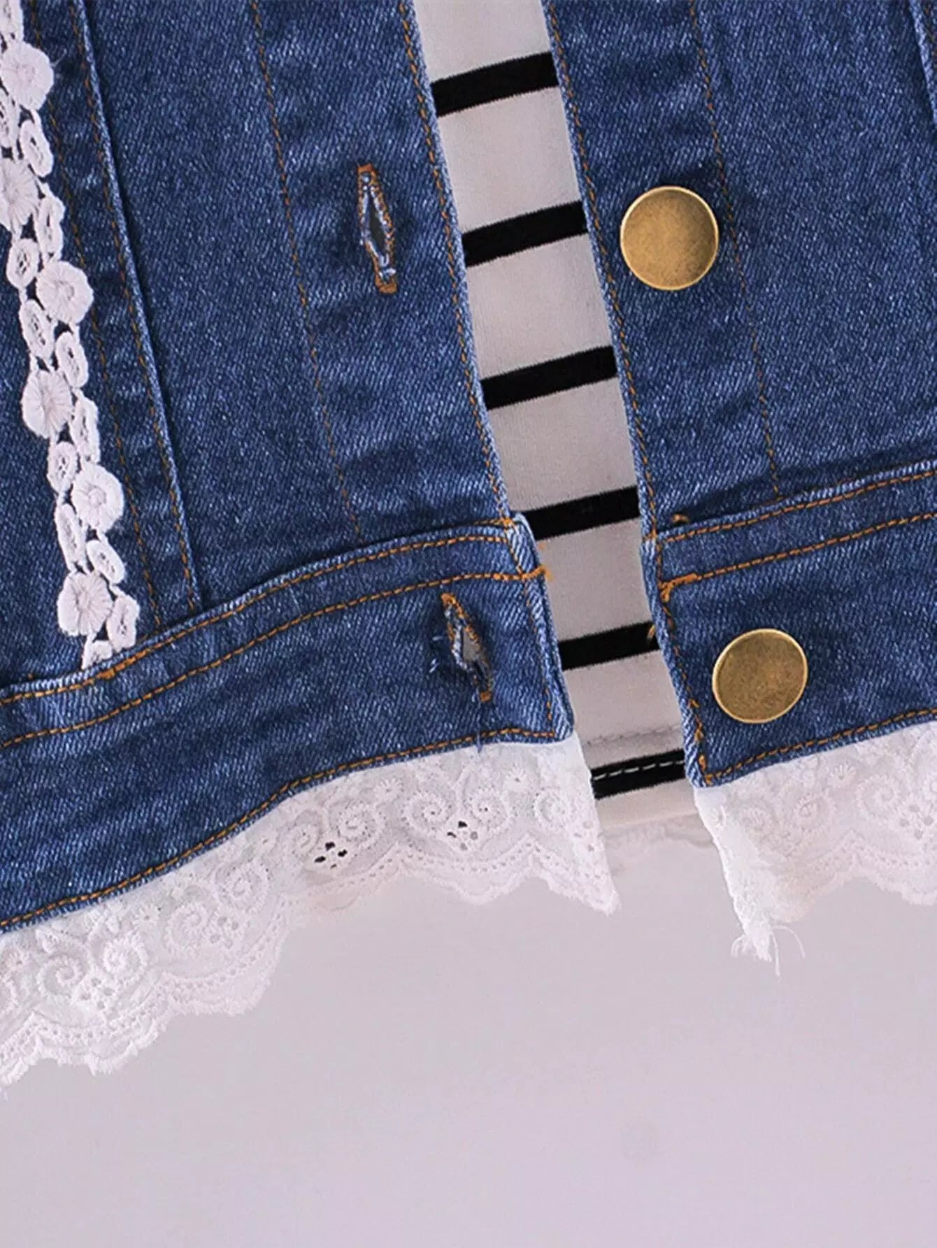 جاكيت دانتيل للبنات الصغيرات بدون قميص دنيم مطرز بالدانتيل
