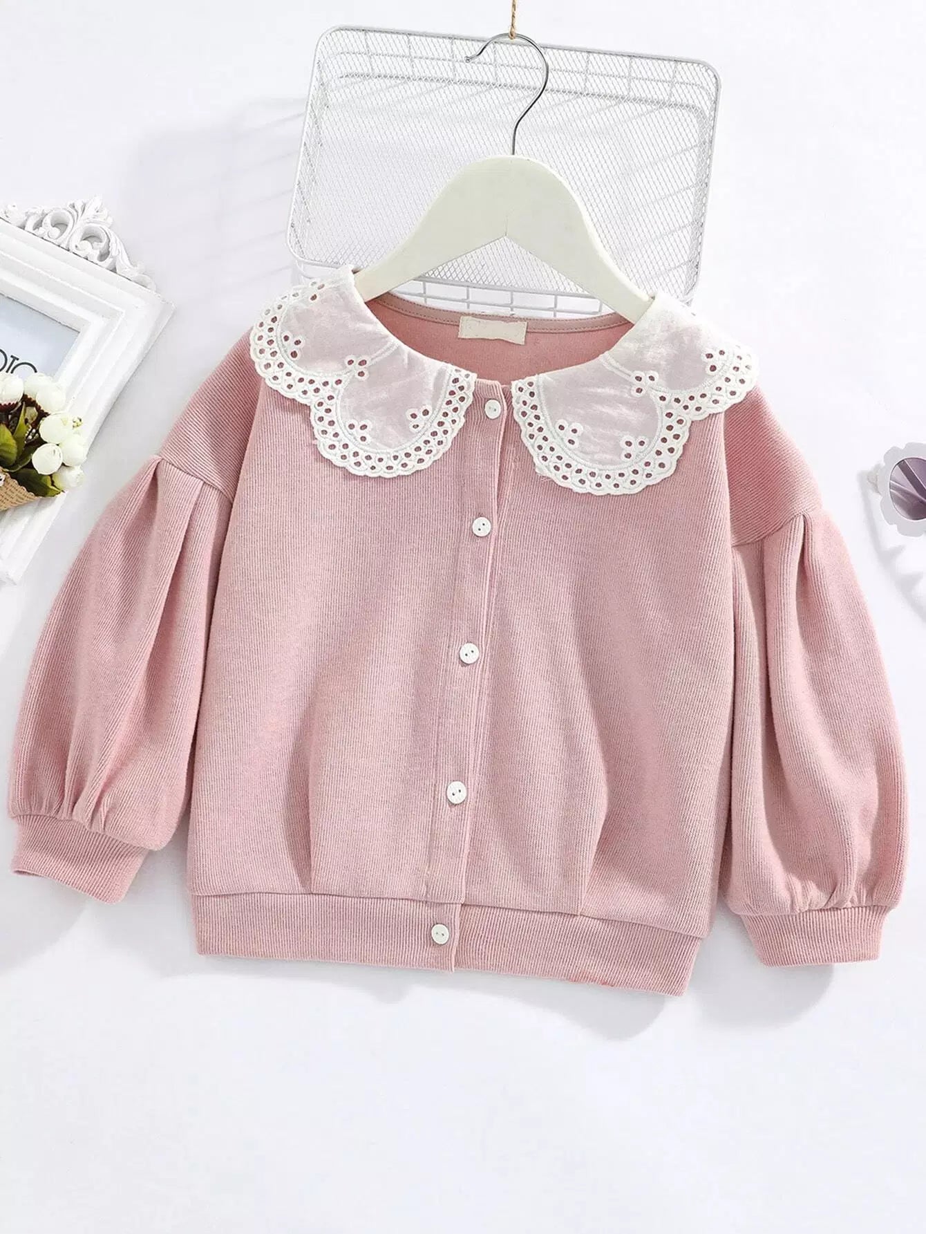 جاكيت بياقة بيتر بان بياقة منسدلة على الكتفين للبنات الصغار
