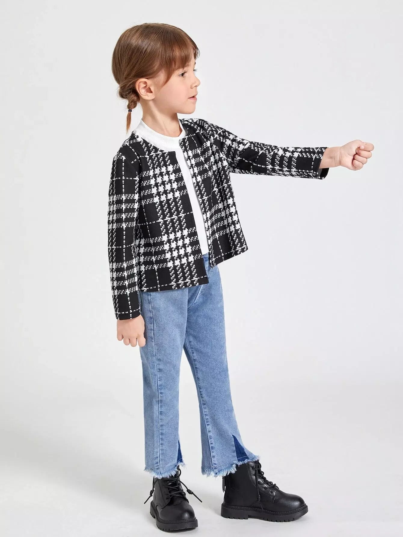 سترة مفتوحة من الأمام منقوشة للبنات الصغار