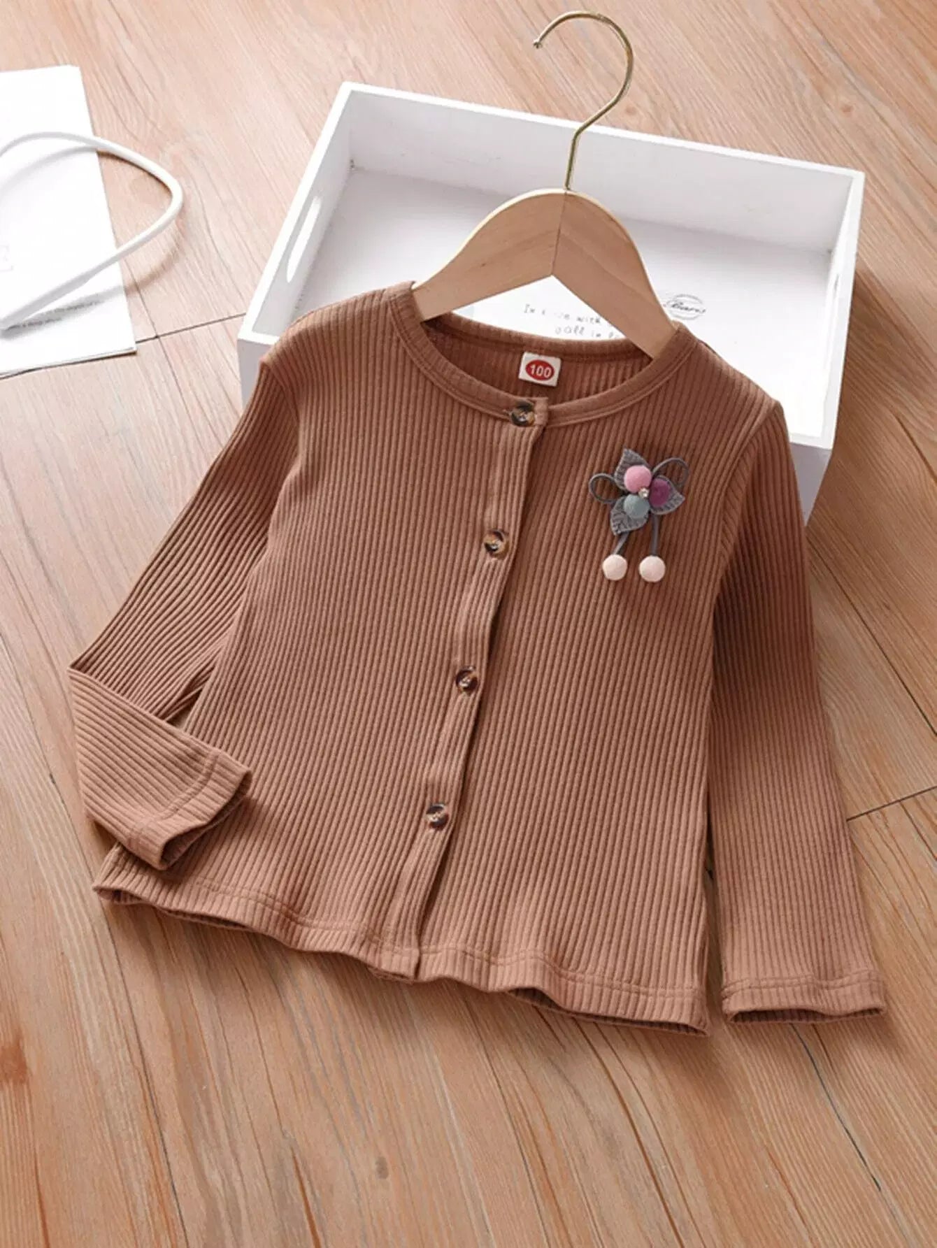 معطف بنات صغار محبوك بأزرار أمامية بأزرار أمامية من البوم بوم بوم للبنات