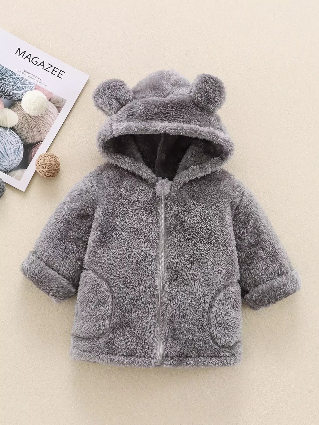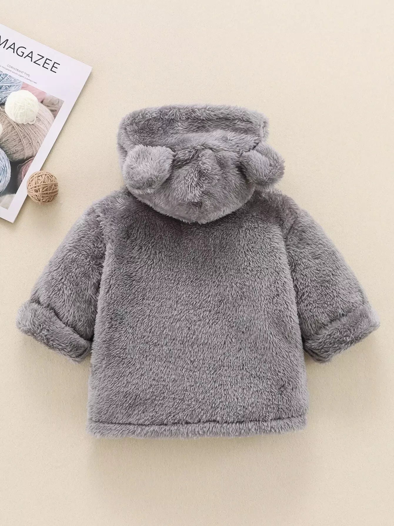 معطف فانيلا بغطاء رأس ثلاثي الأبعاد بغطاء أذنين سادة للبنات الصغار