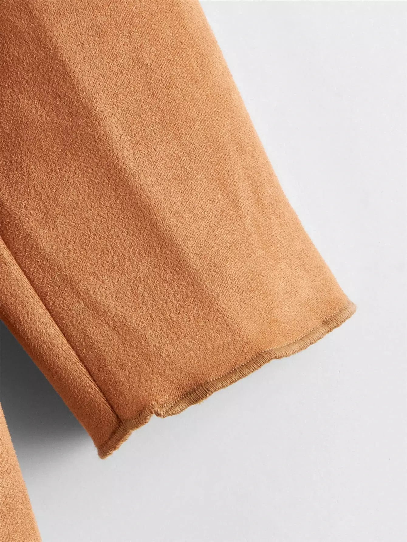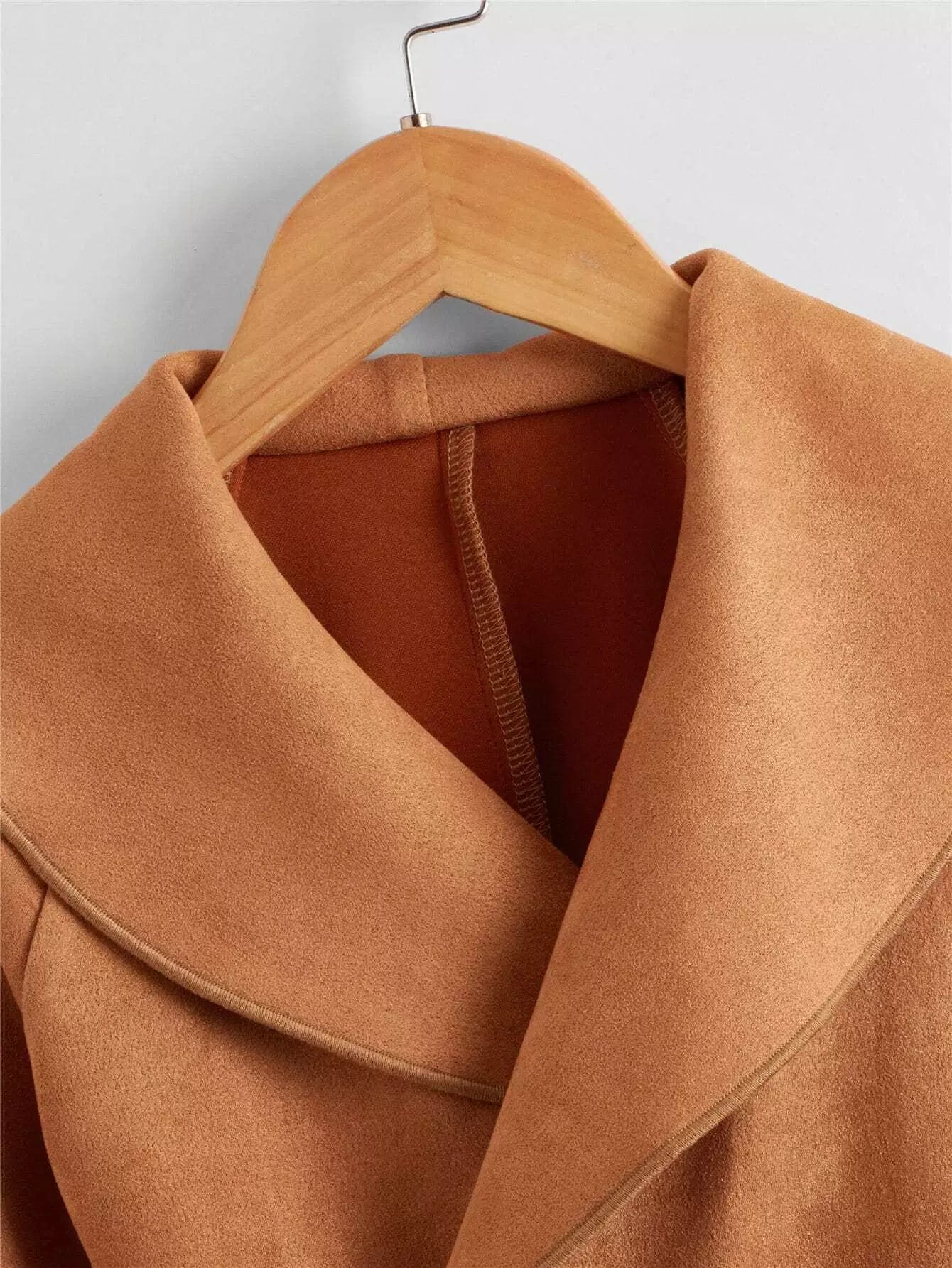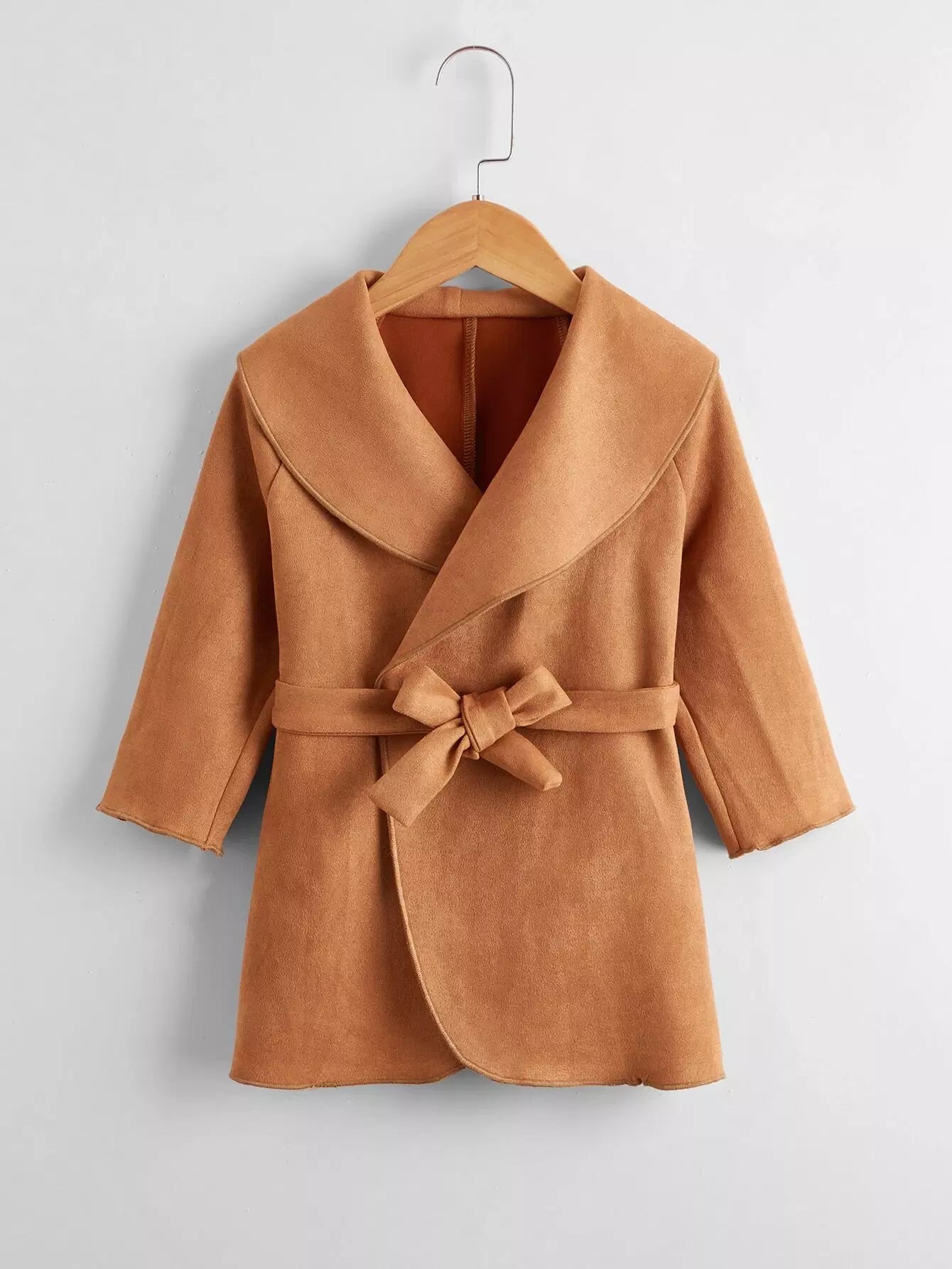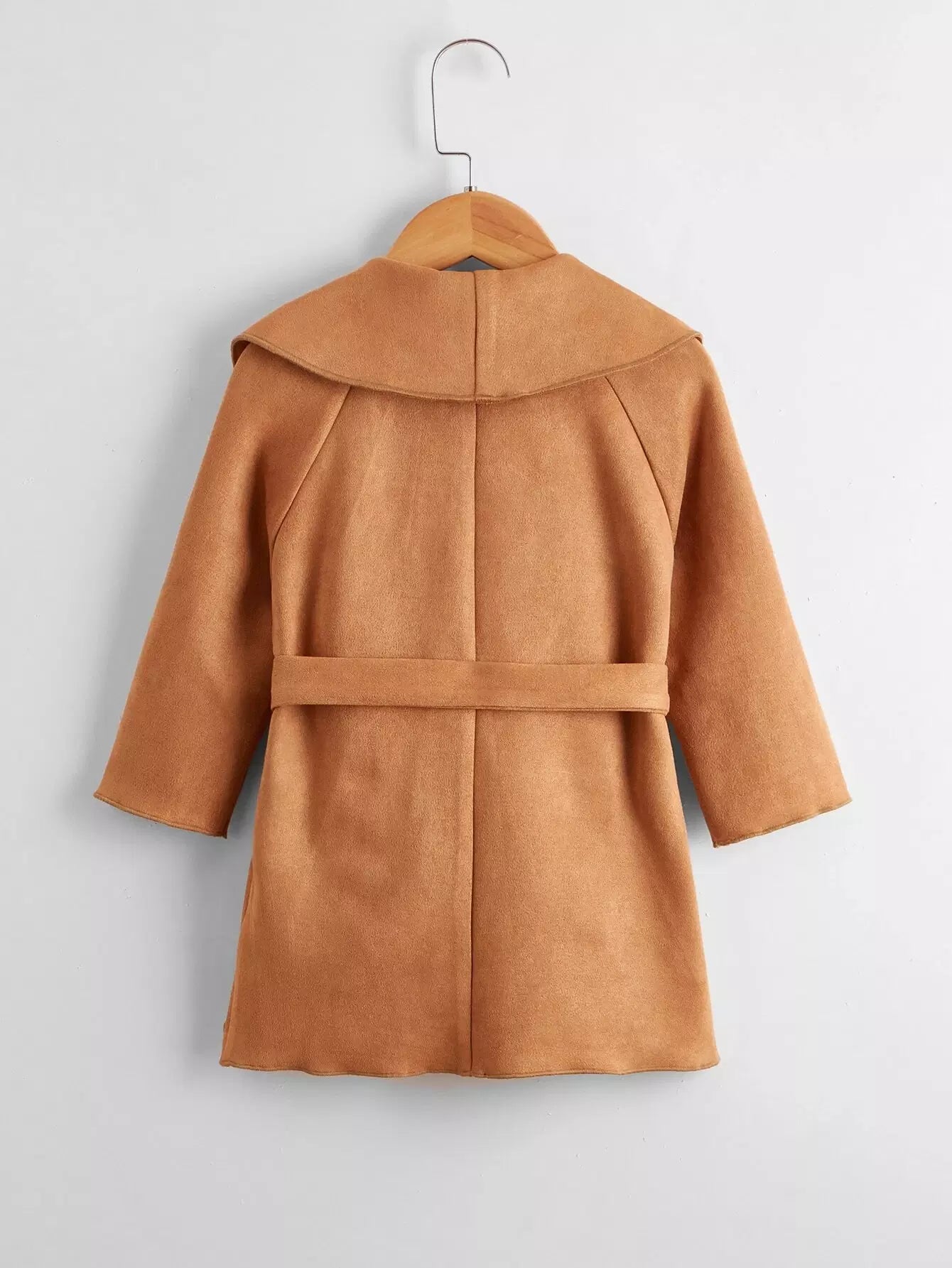 معطف من جلد الغزال الصلب للفتيات الصغيرات بدون حزام