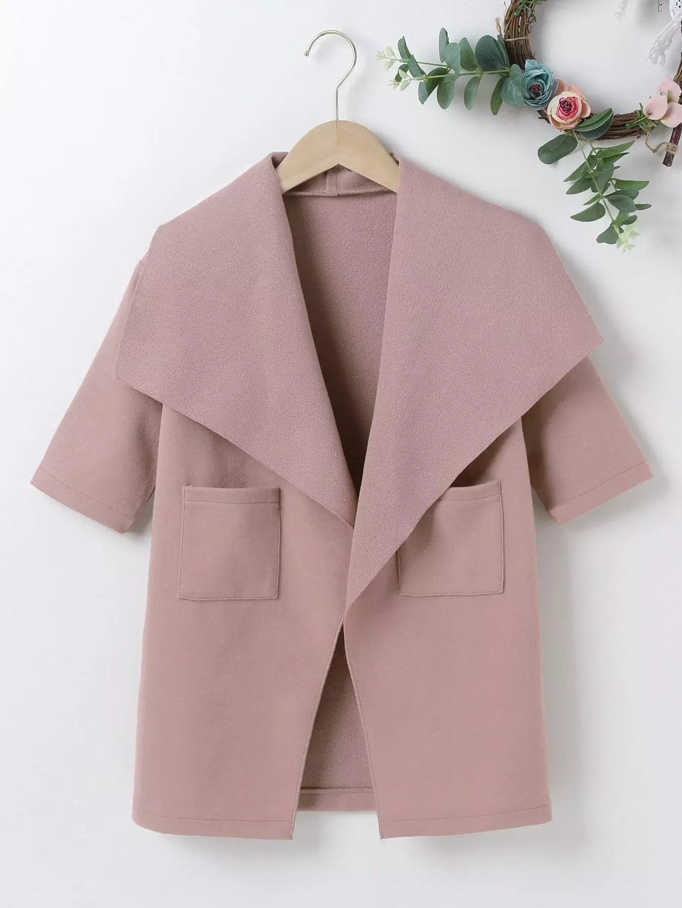 معطف بياقة شلال بجيوب مزدوجة للبنات الصغار