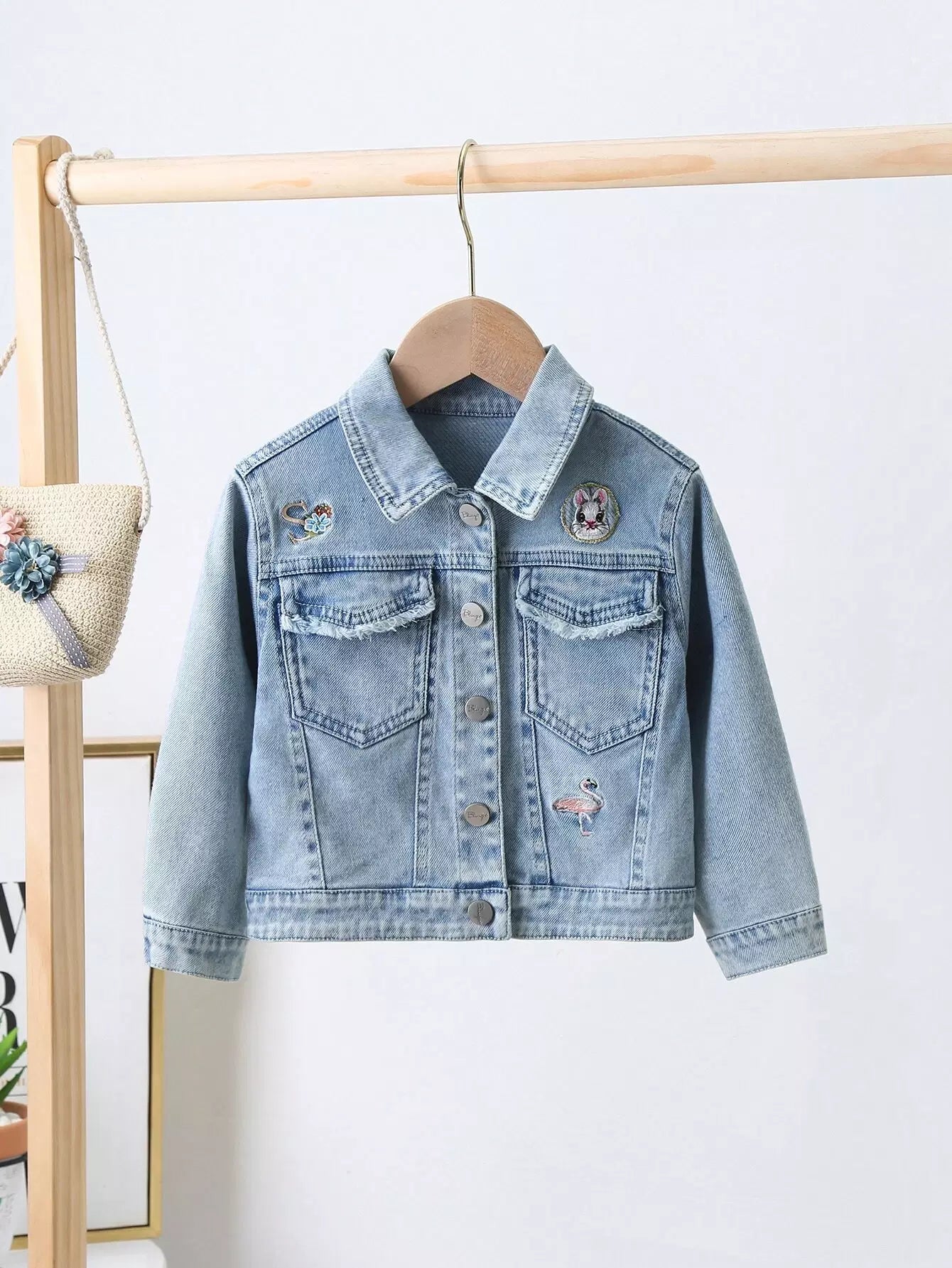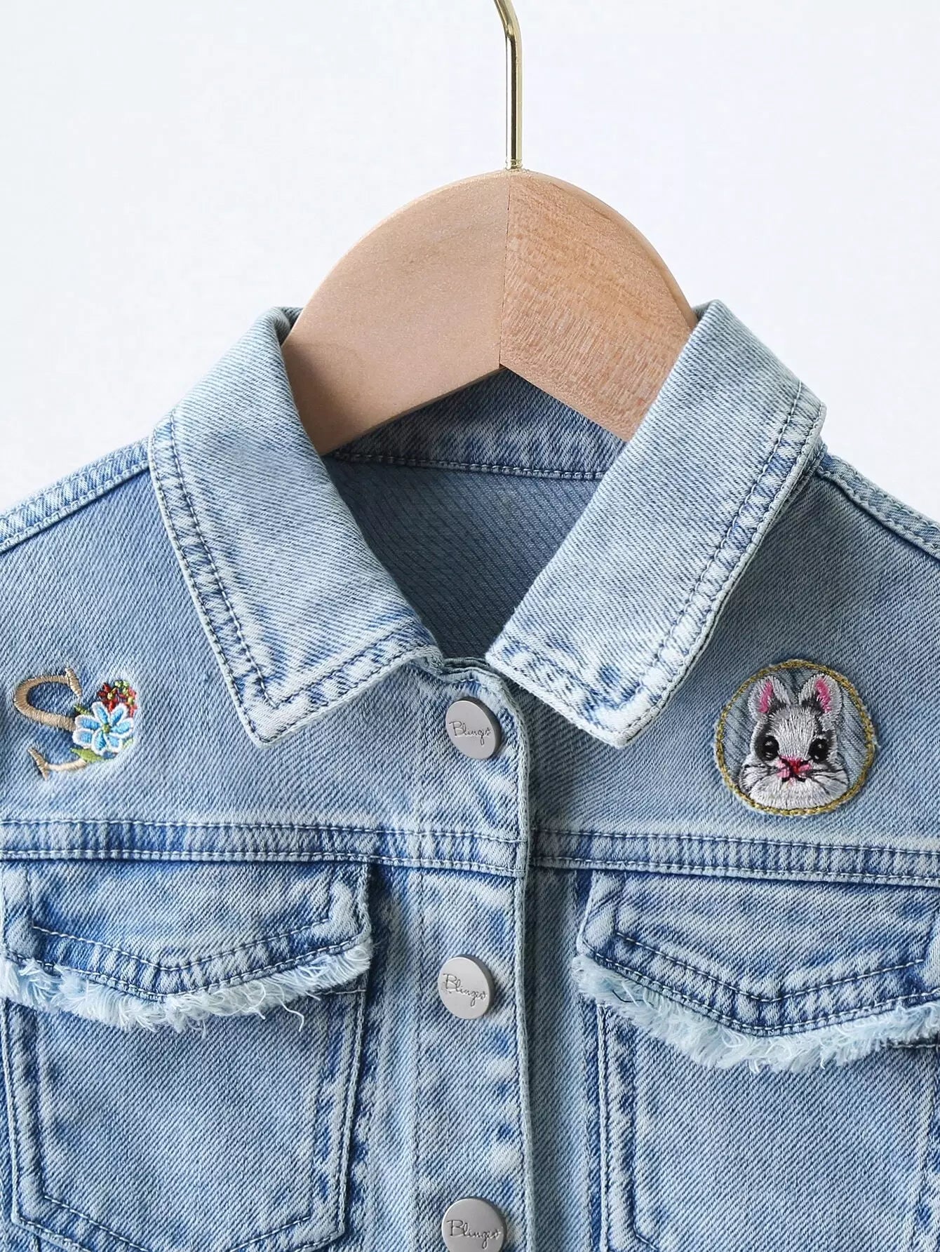جاكيت دنيم مطرز بحروف وأرنب للبنات الصغار