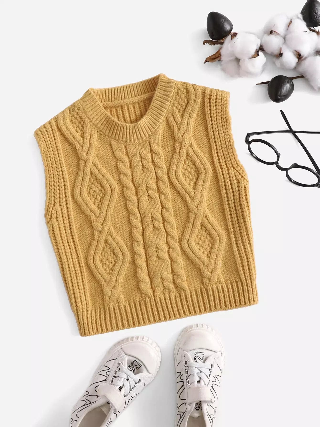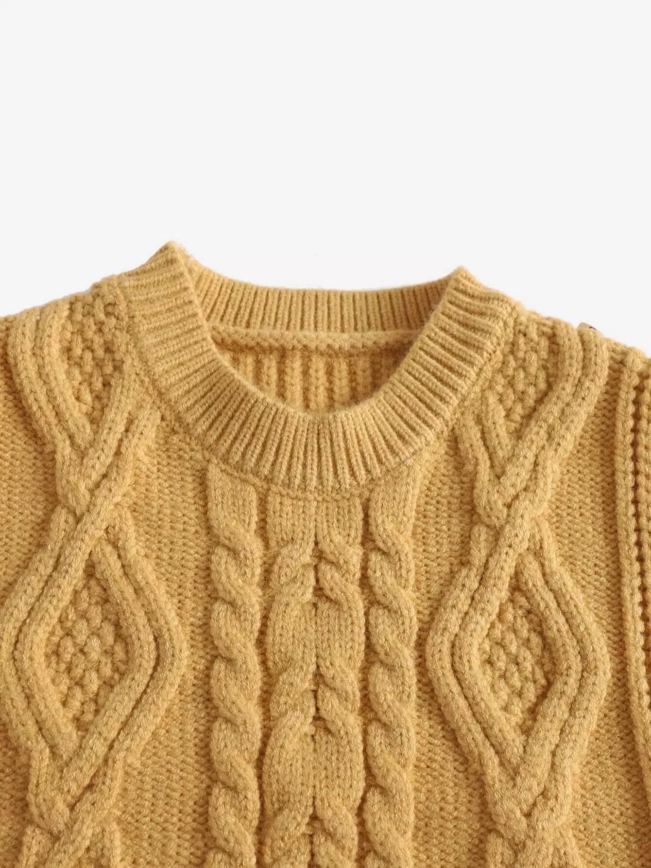 سترة صوفية منسوجة بكابل محبوكة للبنات الصغار