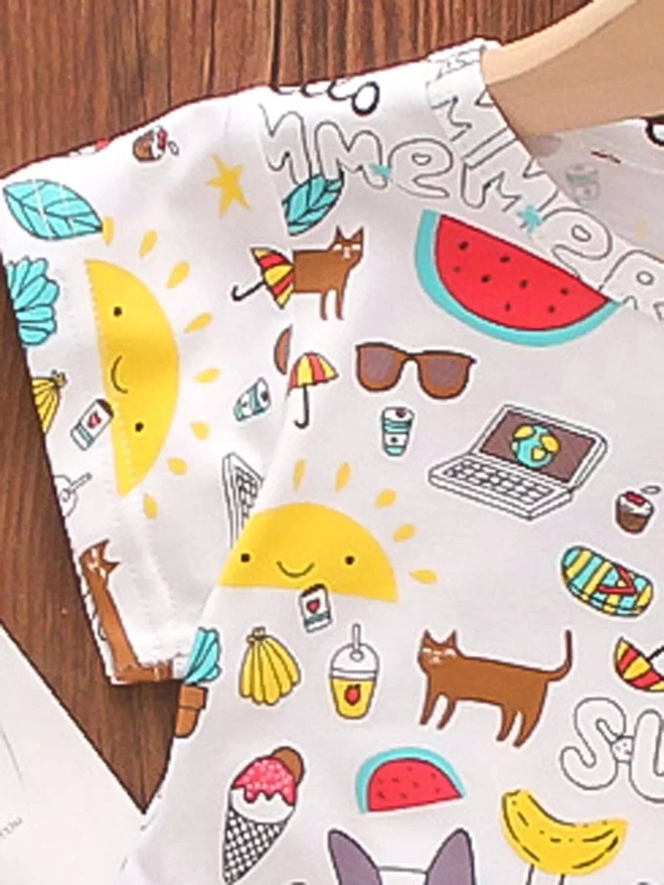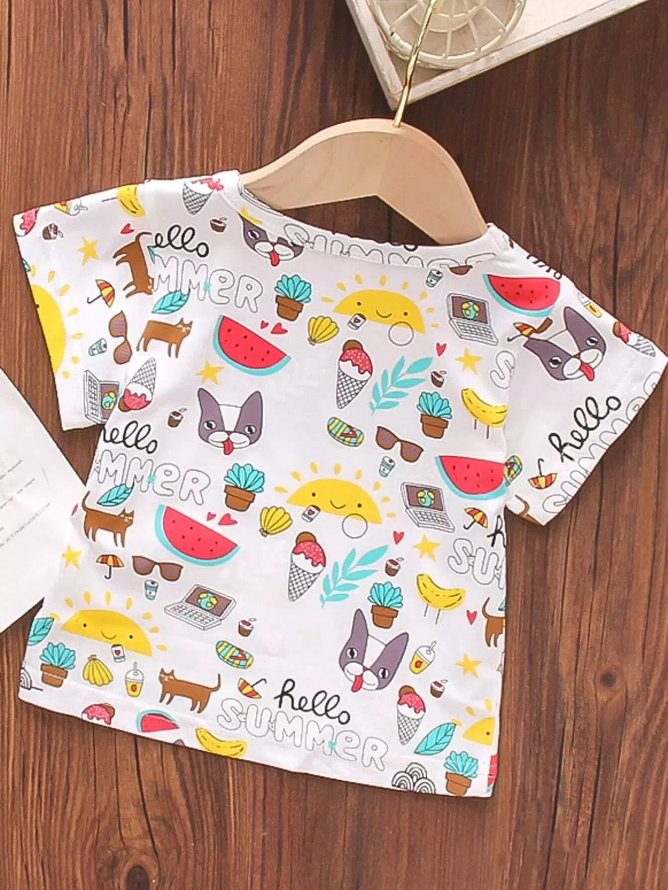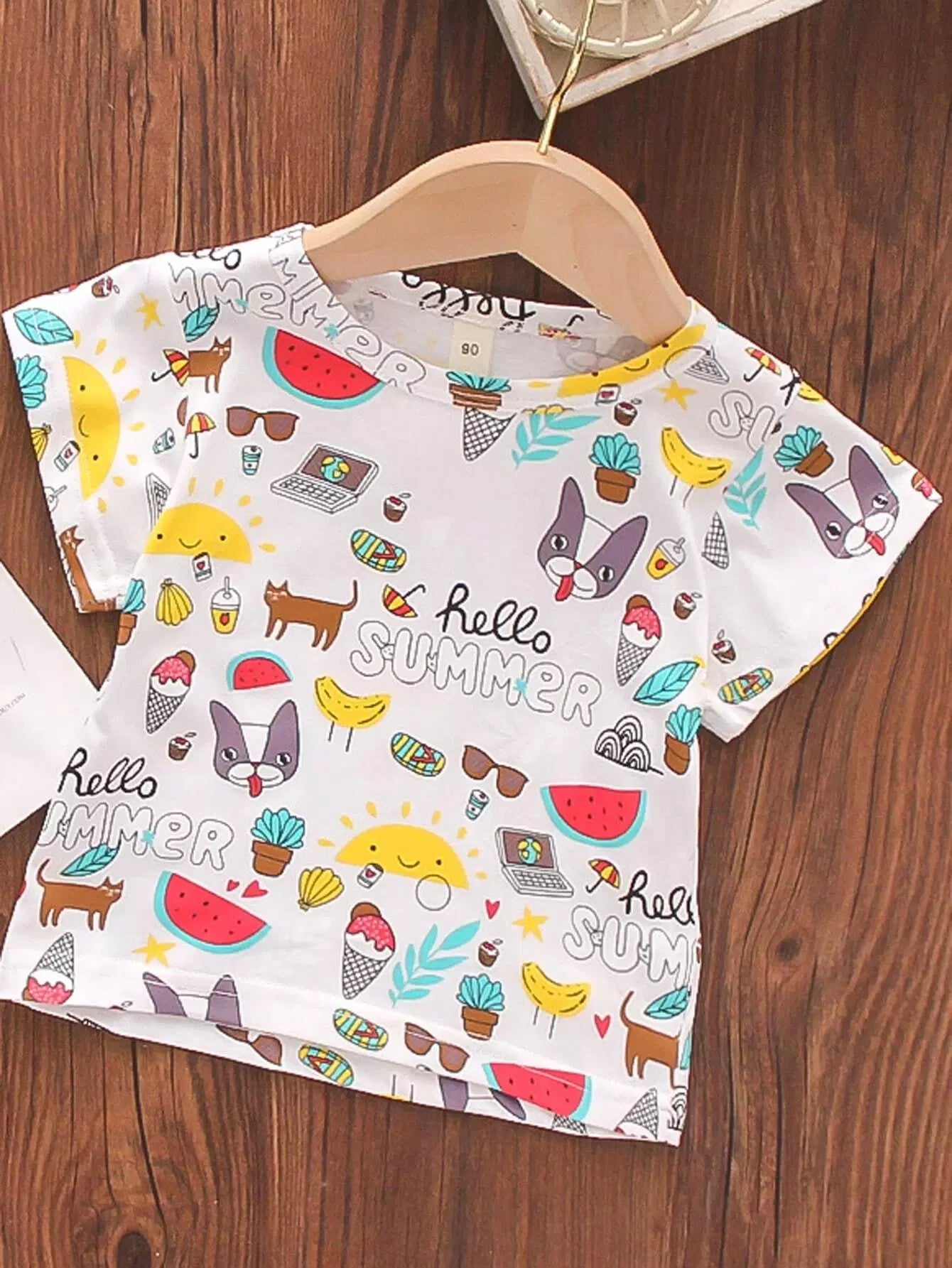 تي شيرت برسومات كرتونية عالية منخفضة للبنات الصغار