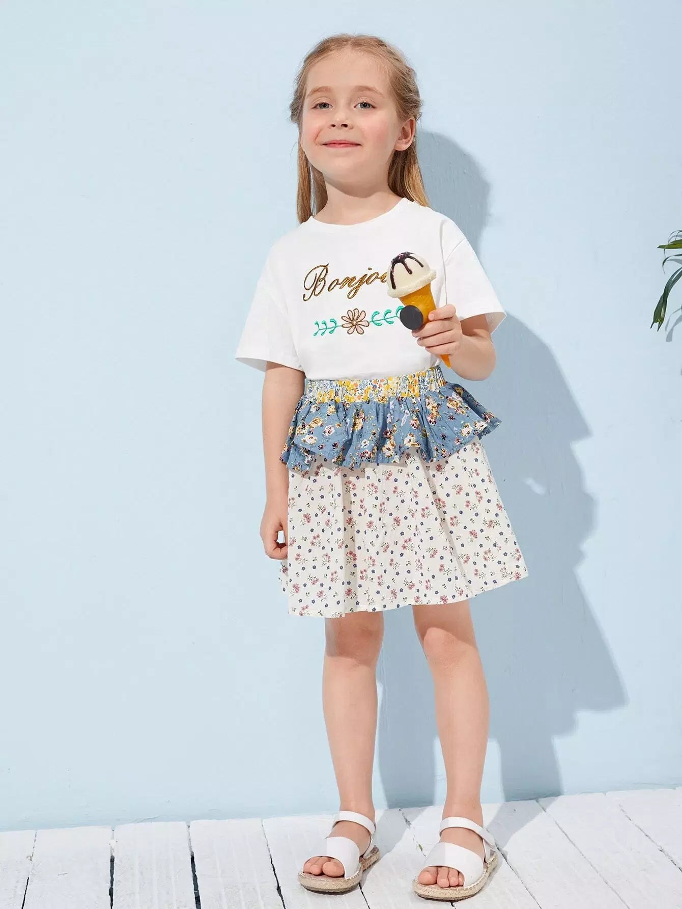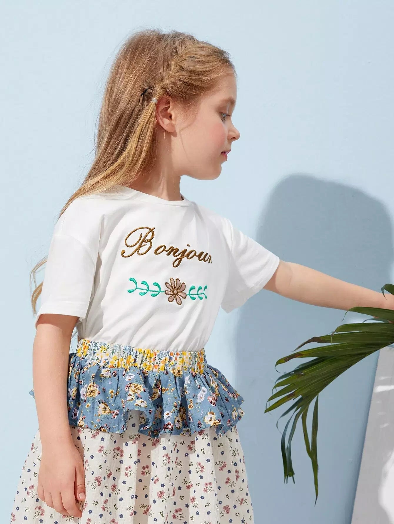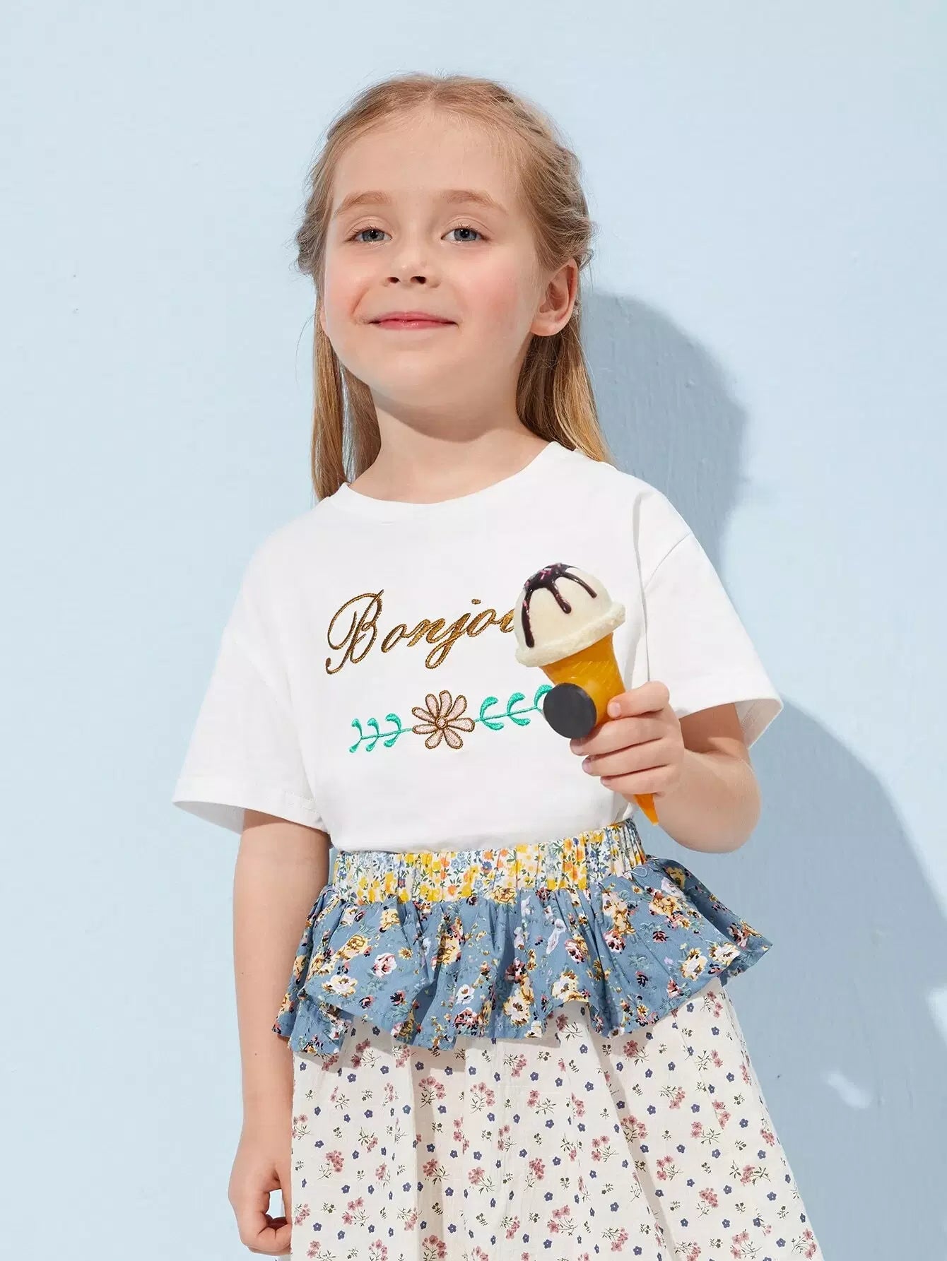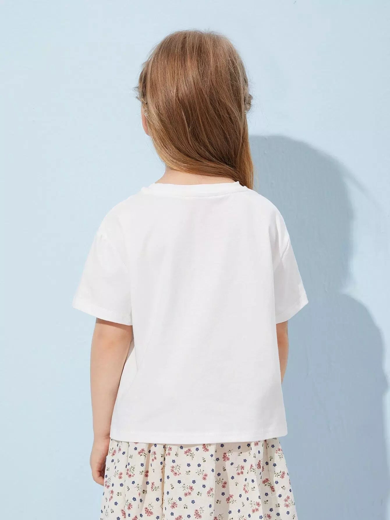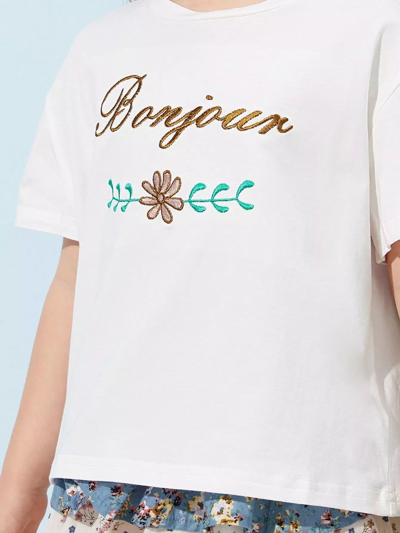 تي شيرت مطرز بالزهور والحروف للبنات الصغار