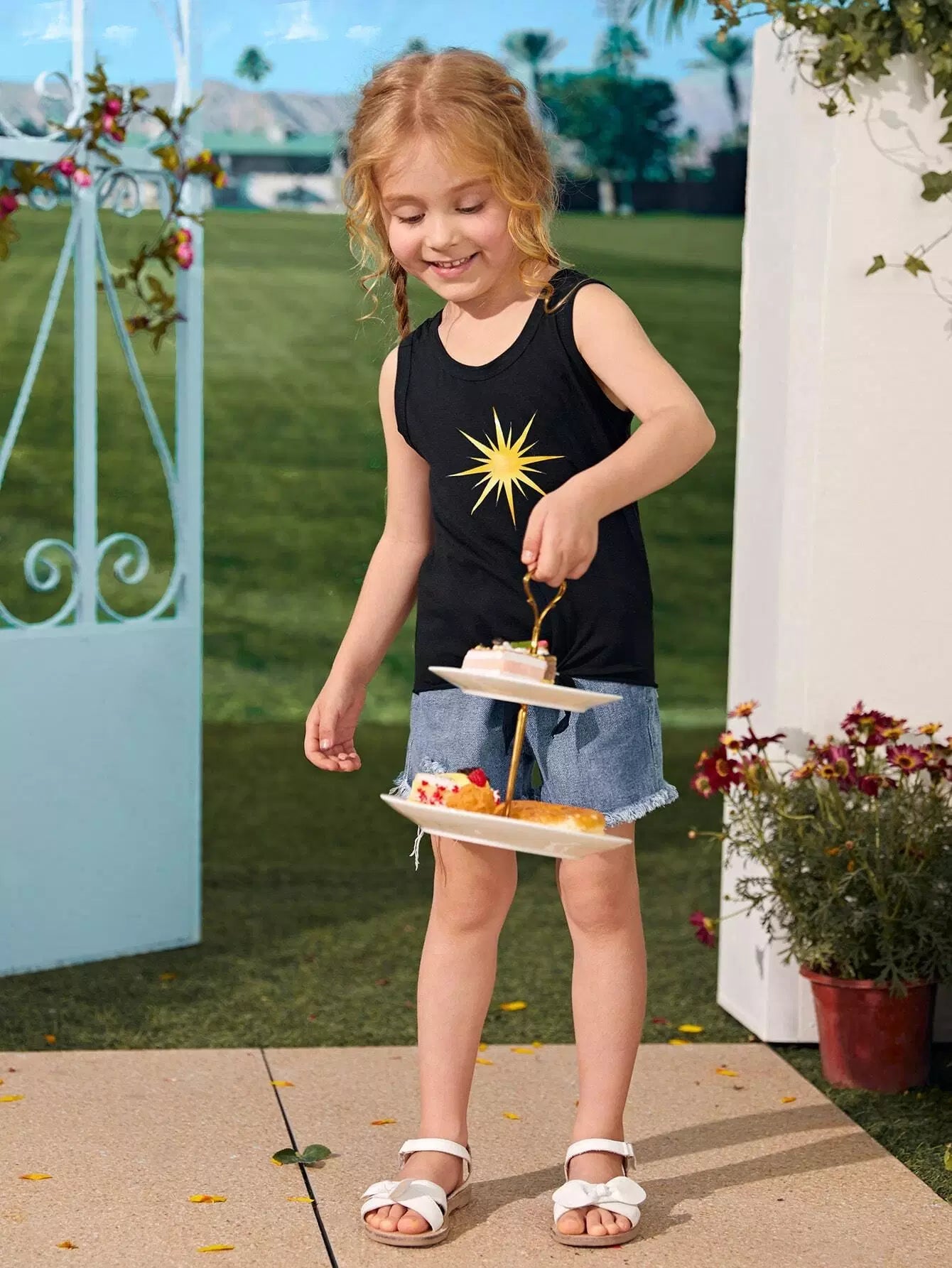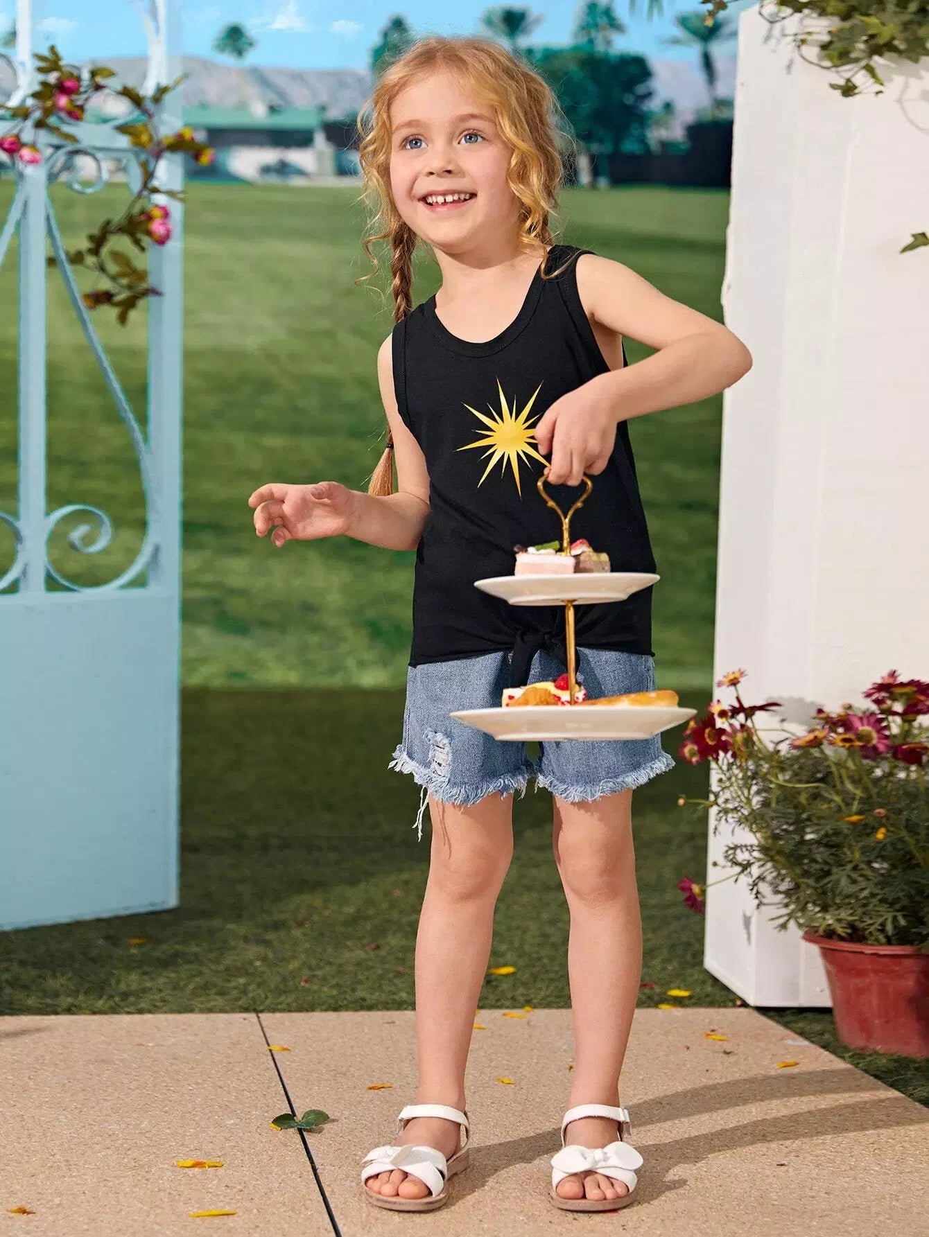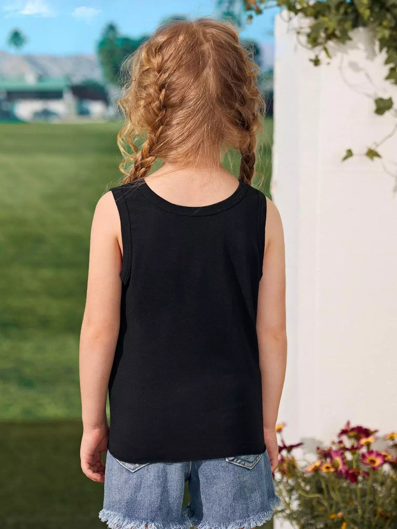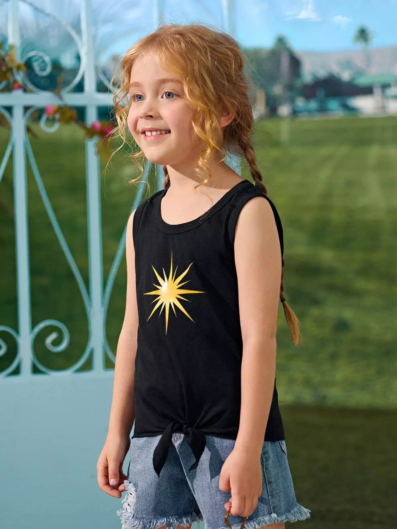 بلوزة بدون أكمام بطبعة جرافيك مطبوع عليها عقدة للبنات الصغار