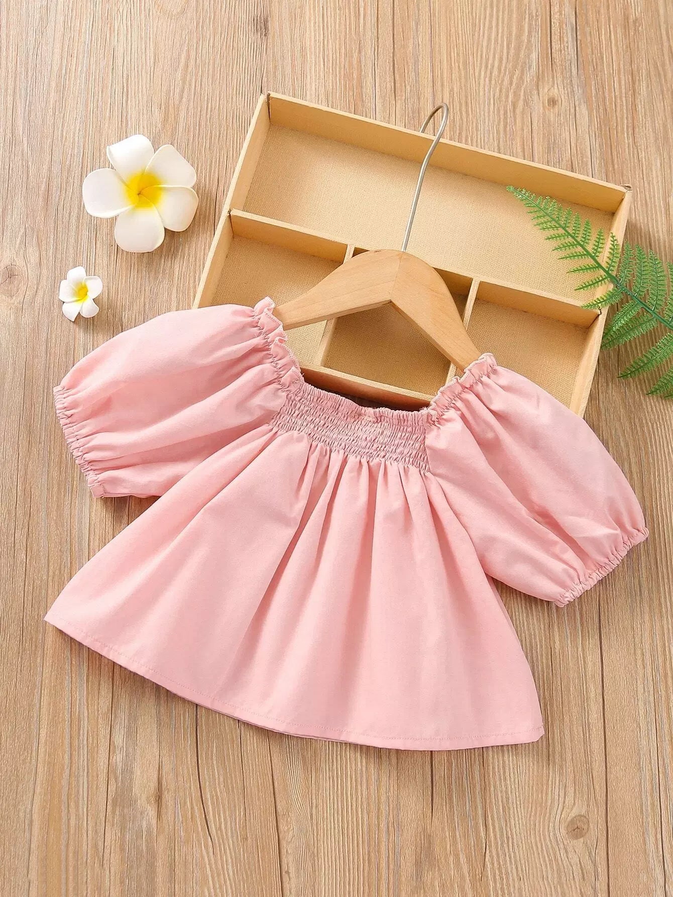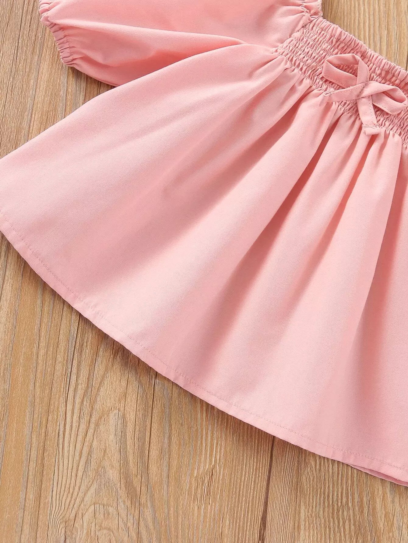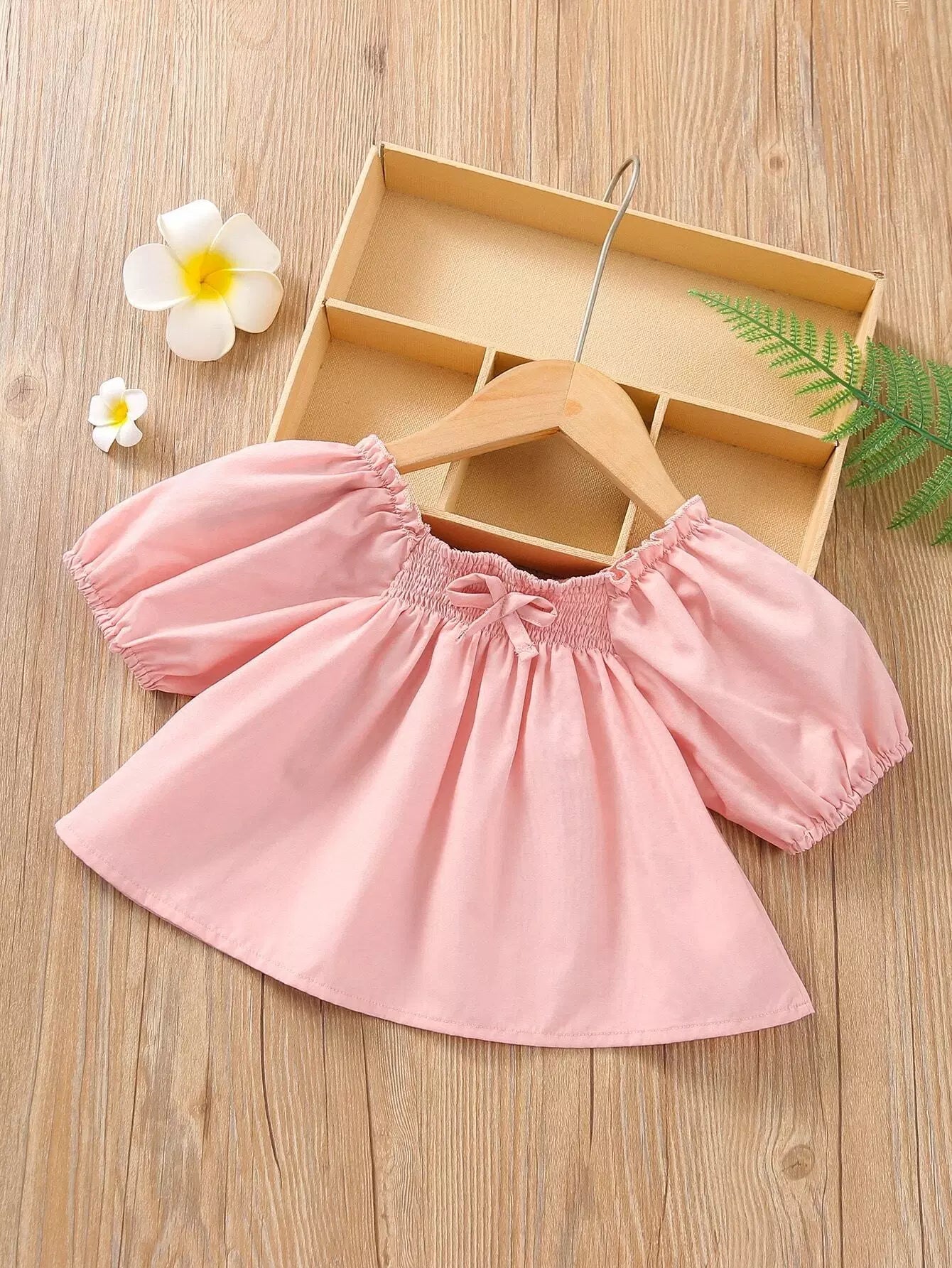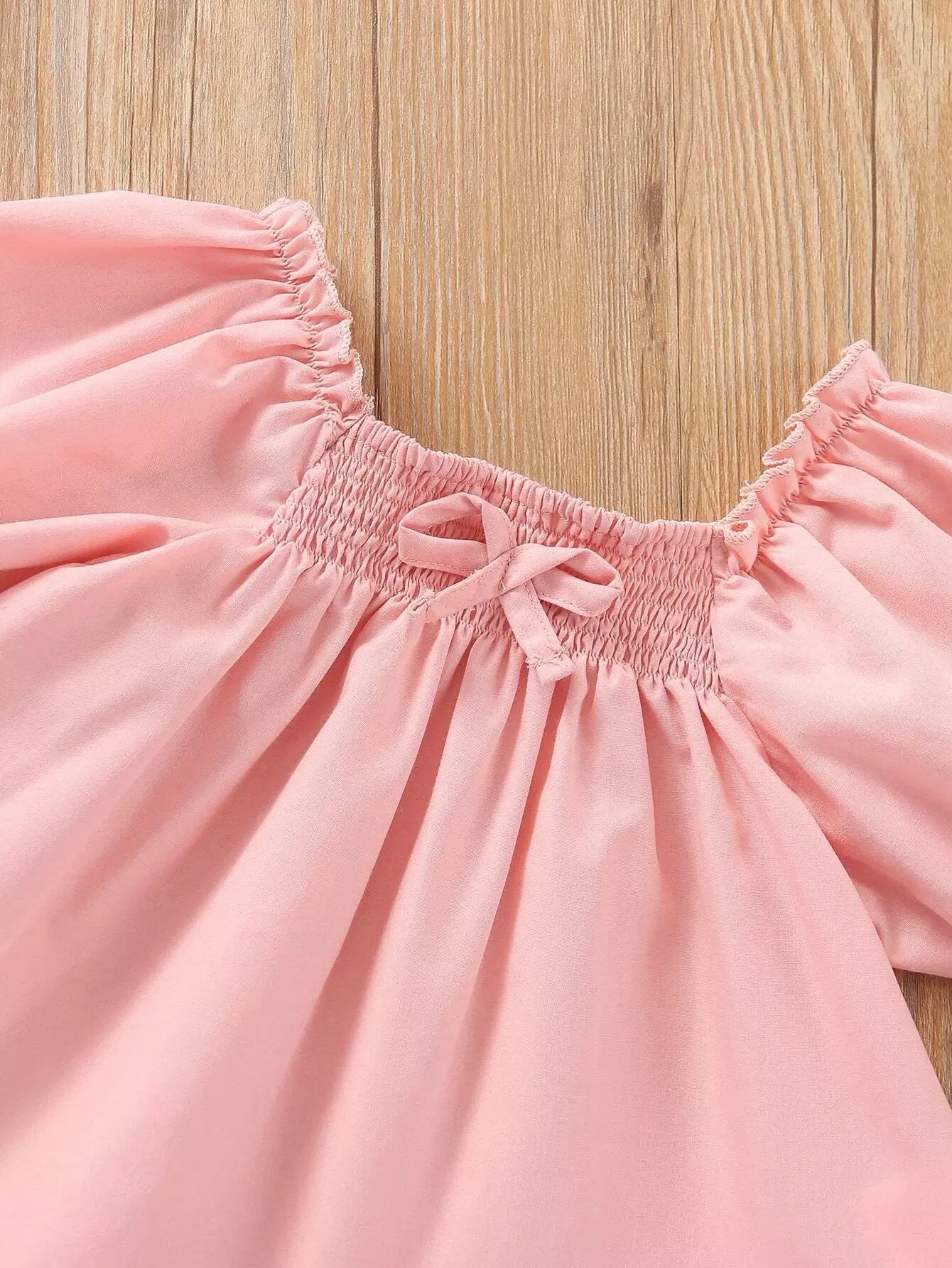 بلوزة فتيات صغيرات بأكمام منفوشة بعقدة منفوشة