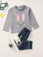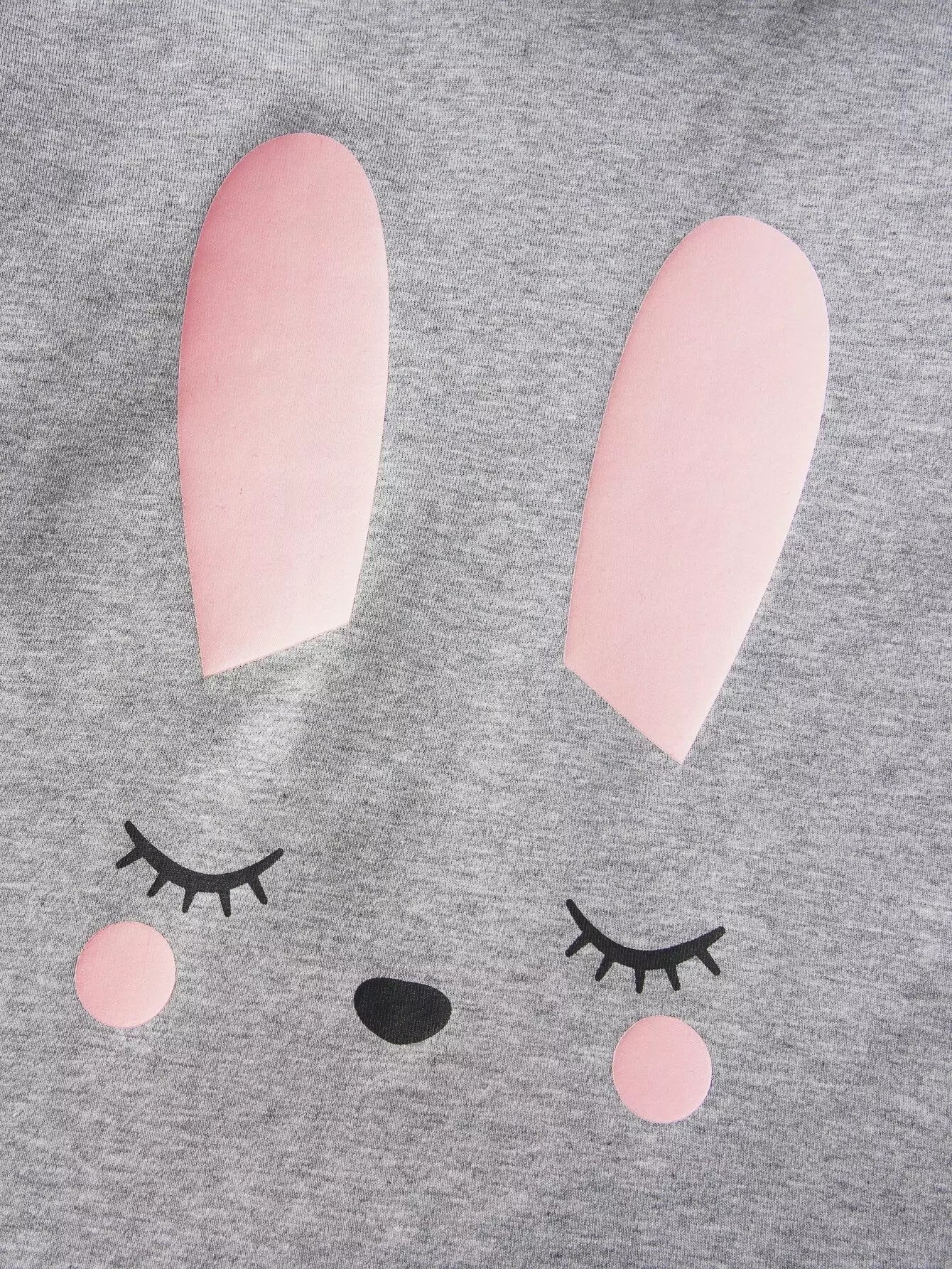 تي شيرت بطبعة أرنب للبنات الصغيرات برقبة وهمية