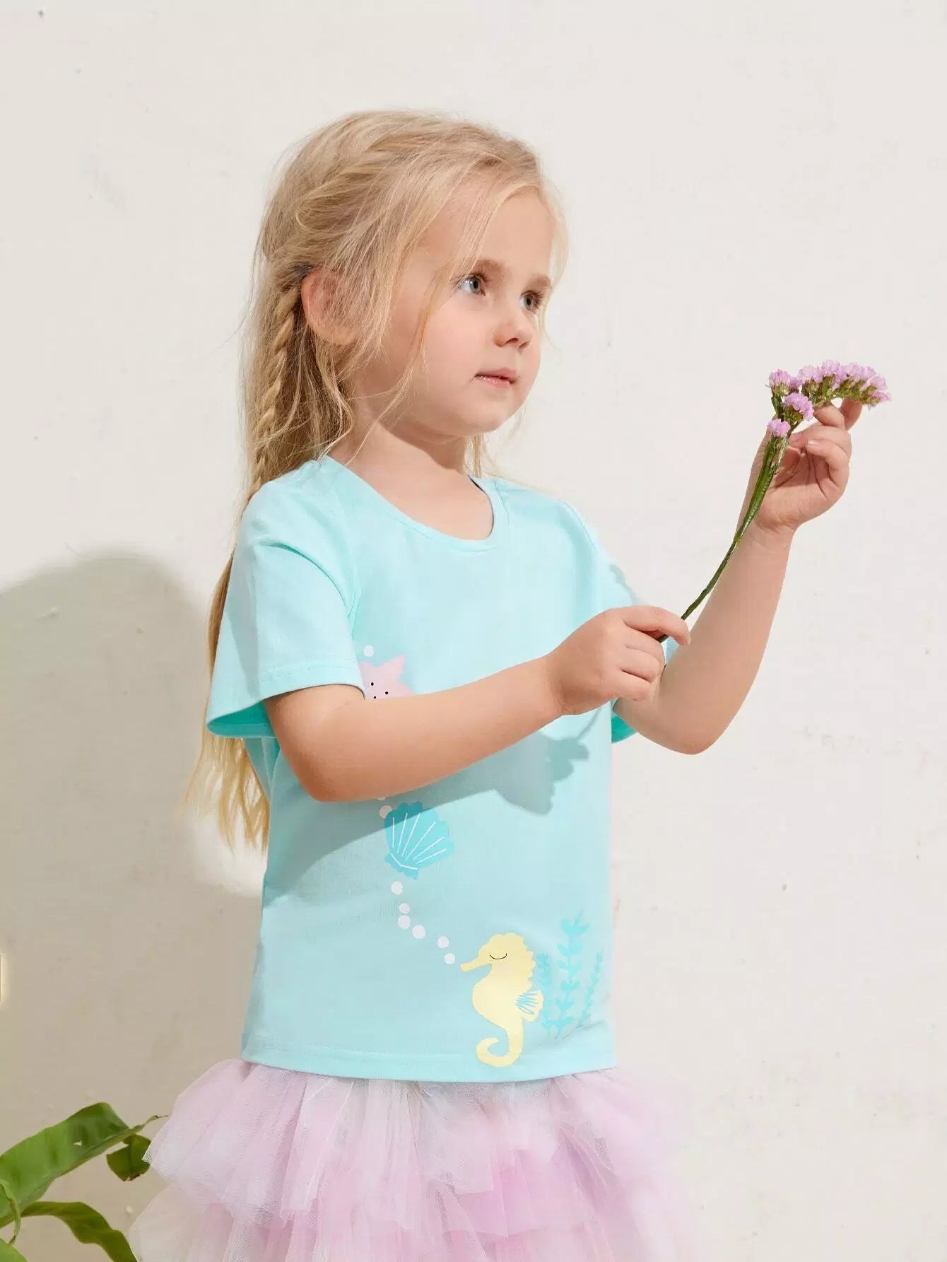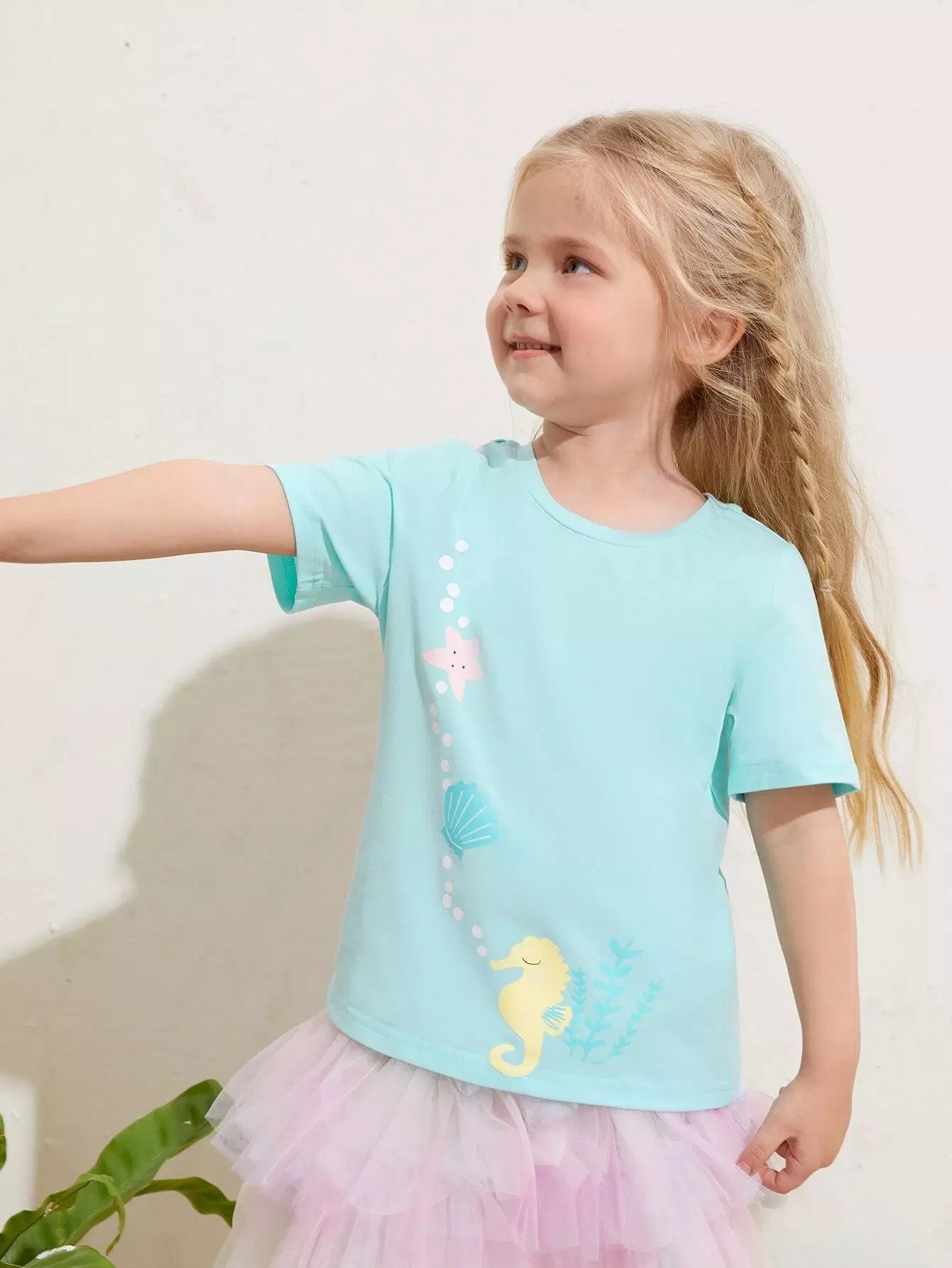 تي شيرت بطبعة فرس البحر للبنات الصغار