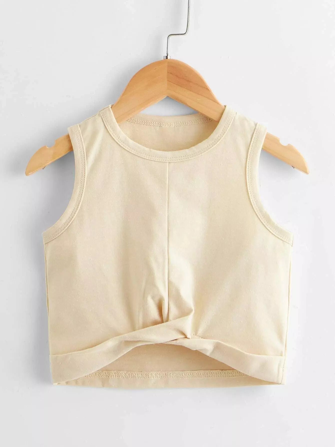 تانك بدون أكمام سادة أمامية ملتوية للبنات الصغار