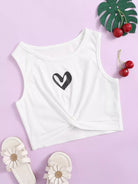 تانك بحافة ملتوية بطبعة قلب للبنات الصغار