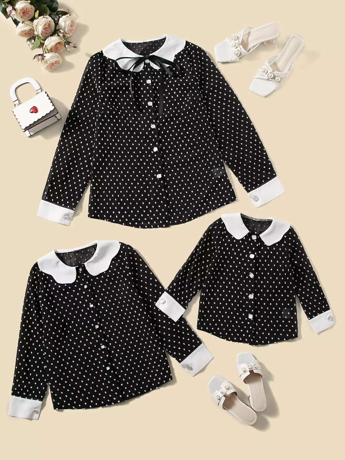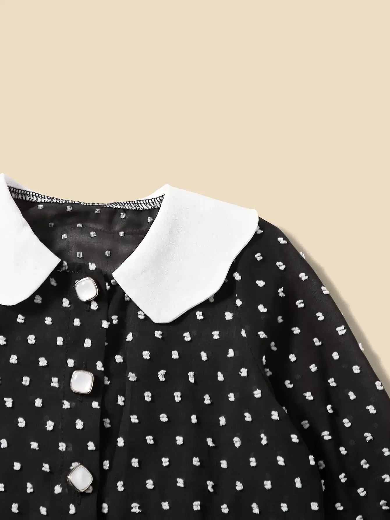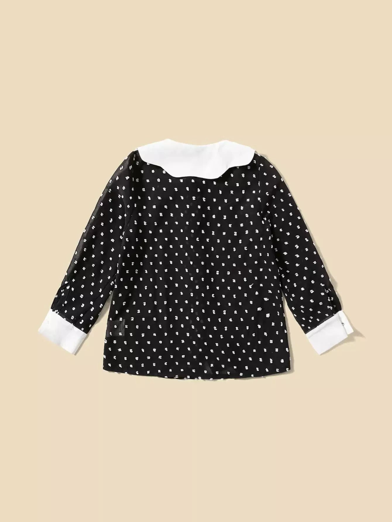 بلوزة فتيات صغيرات 1 قطعة سويسرية منقّطة بنقشة بلون مغاير