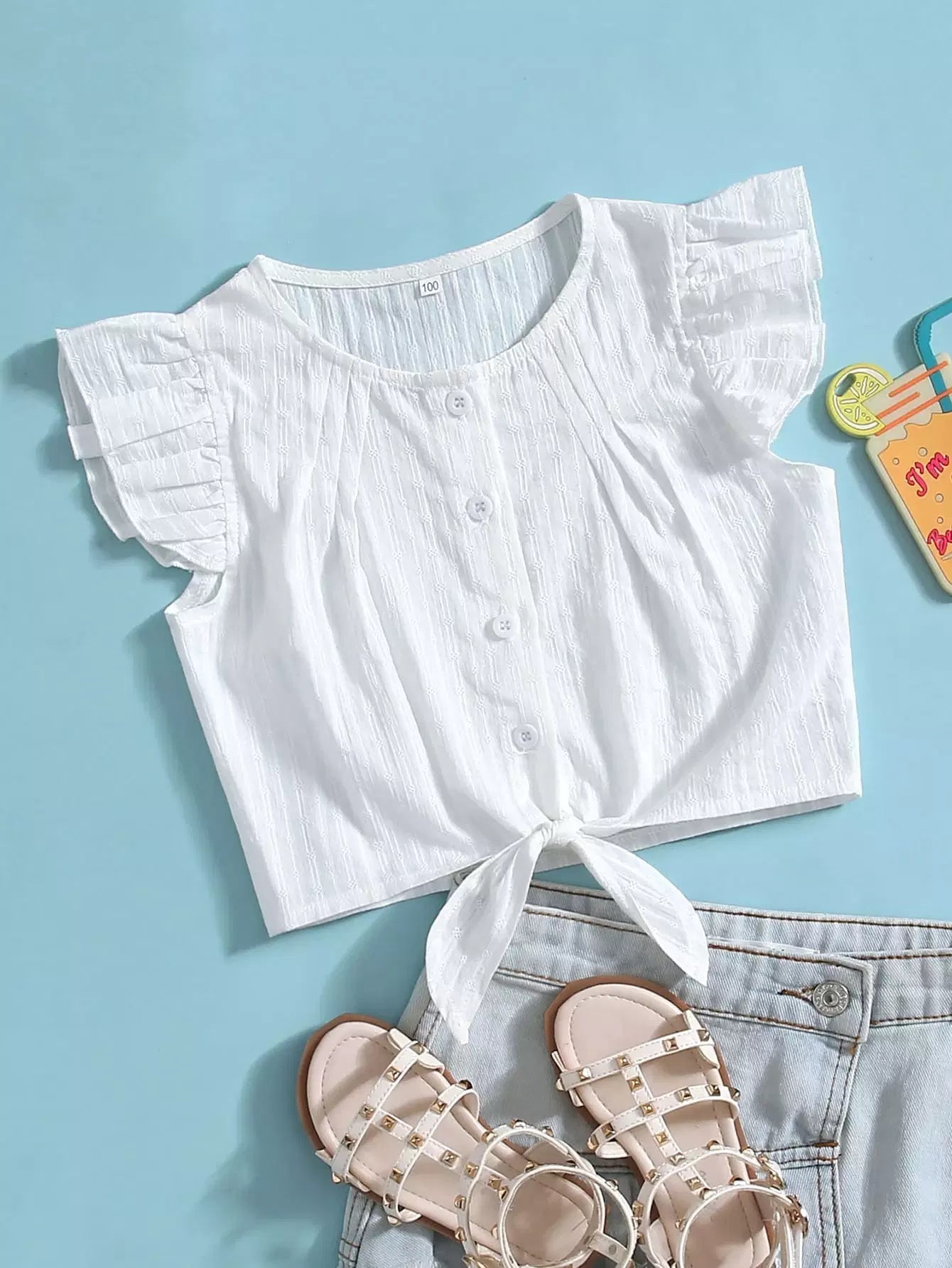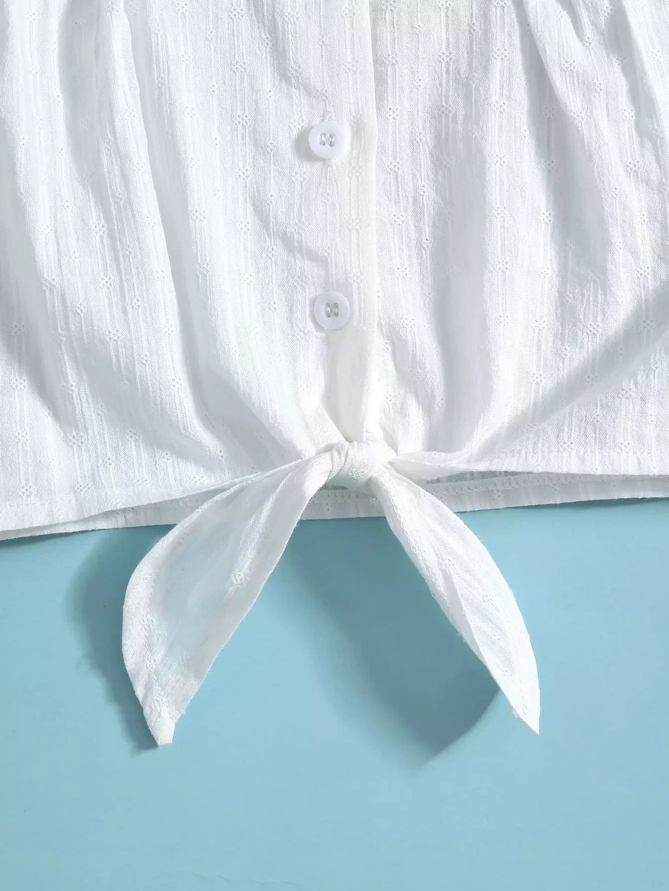 بلوزة بعقدة أمامية بأزرار أمامية للبنات الصغار